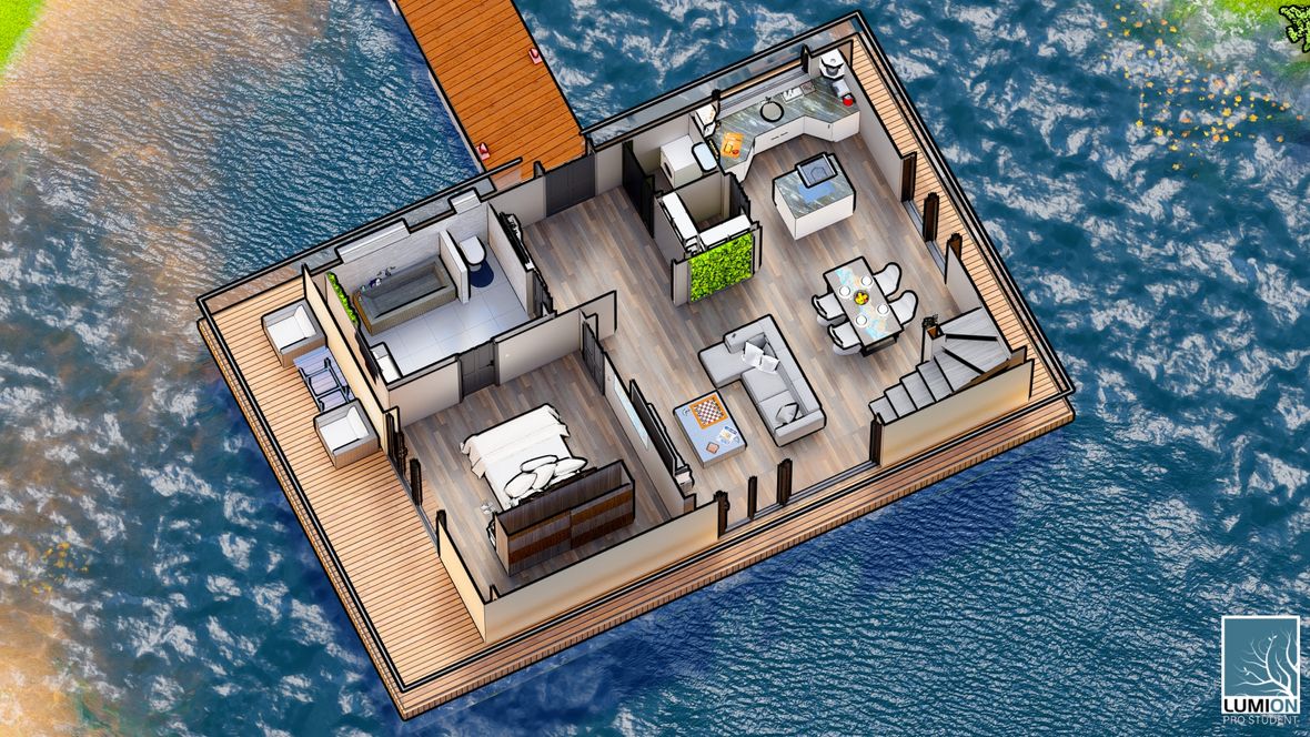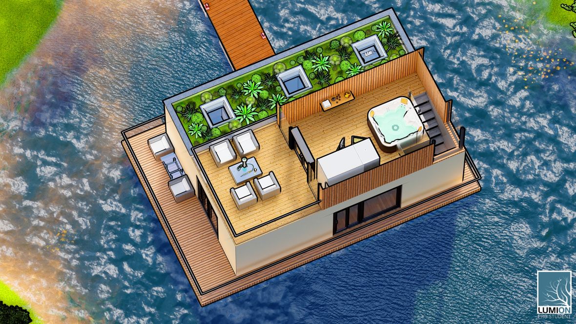 Dvojpodlažný houseboat , ktorý je určený pre dvojčlenné páry na zrelaxovanie a oddych od večného hluku a nepokoja v meste. Projekt je situovaný na umelo vytvorenom jazierku v zalesnenej časti krajiny. Hlavnou myšlienkou projektu HB. Joky, bolo vytvorenie houseboatu pre všetky vekové kategórie. Vďaka strešným oknám Velux , je objekt dostatočne presvetlený. Na 1.NP je vytvorený podhľad na vedenie rekuperačného systému. Houseboat je navrhovaný z drevenej konštrukcie a druhé nadzemné podlažie je taktiež obložené drevom. Na 1.NP sa nachádza predsieň, kúpeľňa s toaletou, spálňa a obývačka s kuchyňou. Na 2.NP oddychovňa s terasou.