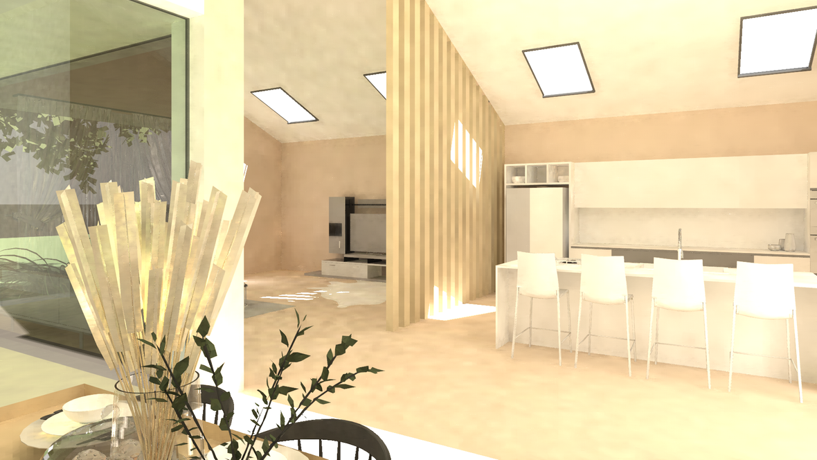 Bungalov ktorý má spájať vonkajší svet s tým vnútorným pomocou okien. Hlavný cieľ je dostať prírodné svetlo do domu tak aby počas celého dňa tam svietilo neustále.