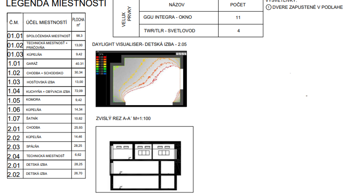 Nízkoenergetický rodinný dom NATURAL HOUSE je navrhnutý pre 4 – 5 člennú rodinu. V dome sa na 1.NP nachádza garáž, šatník, kúpeľňa, hosťovská izba, obývacia izba s kuchyňou a komorou. Na 2.NP sa nachádza hlavná spálňa, dve detské izby, kúpeľňa a technická miestnosť. Denné svetlo je do domu privádzané za pomoci diaľkovo ovládaného, bezúdržbového okna s elektrickým napájaním od značky VELUX. Pod rodinným domom sa nachádza "tajná vínno – herná pivnica", kúpeľňa a technická miestnosť s práčovňou. Vstup do týchto miestností je zapustený do podlahy v kuchyni a vysúva sa smerom nahor. Keďže do priestorov pod domom sa slnečné lúče nedostanú, na presvetlenie miestností sú použité svetlovody od značky VELUX. V snahe začleniť rodinný dom do prírodného prostredia, fasádu domu tvorí kombinácia dreva, kameňa a omietky v prírodných farbách.