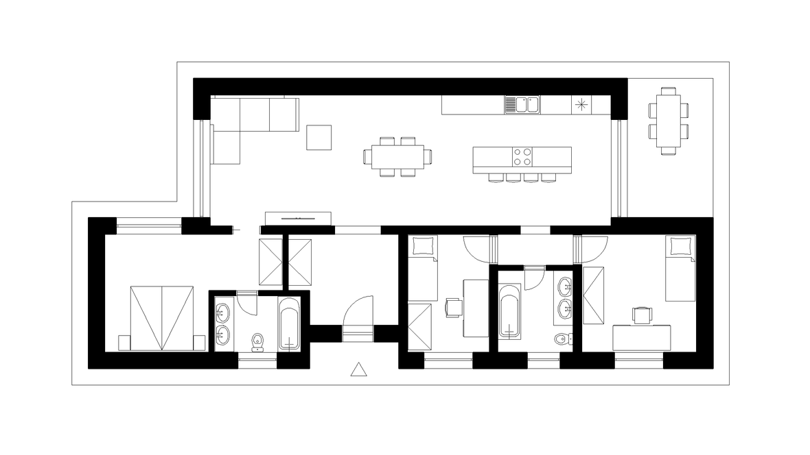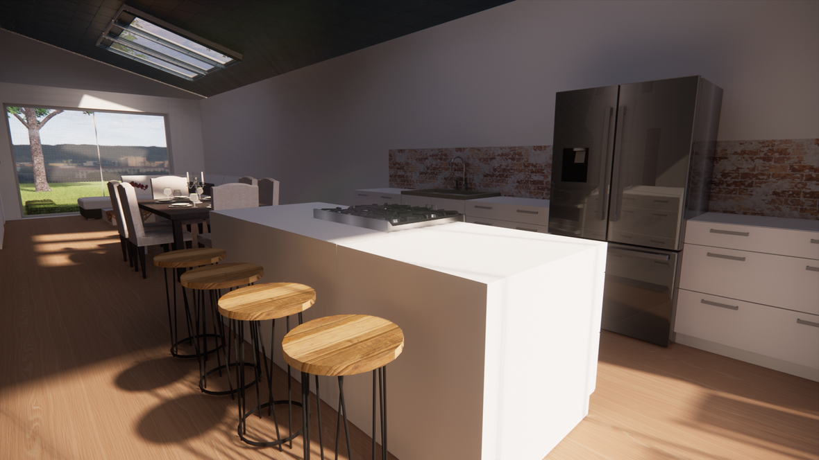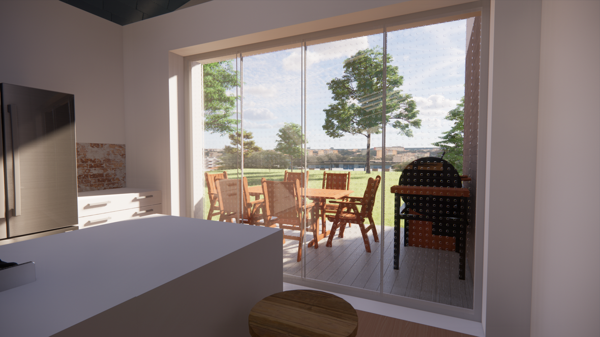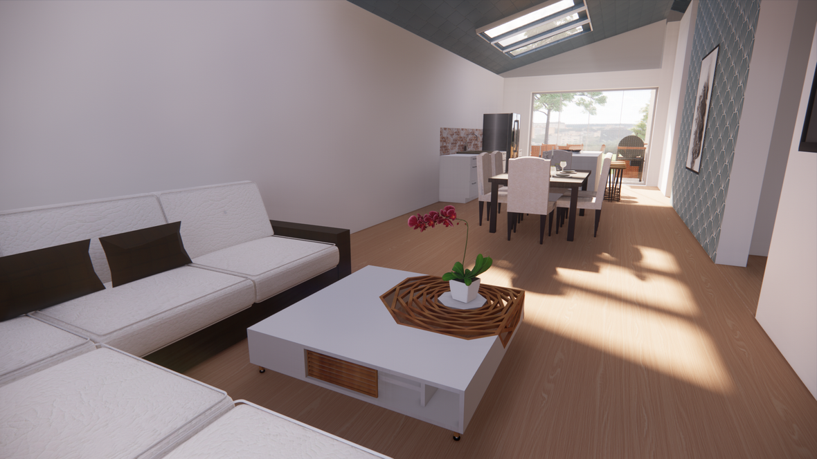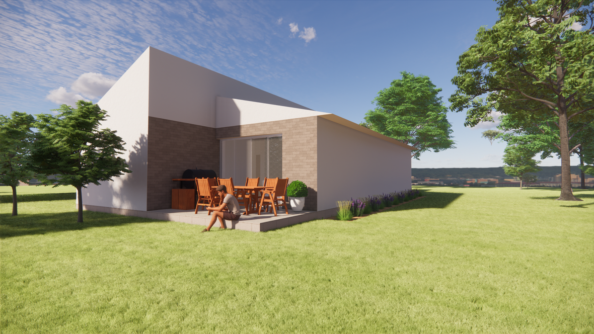 Dom je riešený v modernom štýle, nachádza sa tam jedna veľká miestnosť kde je kuchyňa, jedáleň a obývačka spojená dokopy. Dve detské izby, ktoré majú na chodbe spoločnú kúpeľňu a spálňa so samostatnou kúpeľňou. Vybavenie rodinného domu je prevažne z dreva. Na človeka tento materiál vplýva veľmi dobre a dotvára atmosféru "tepla" domova. Cieľom tohto projektu bolo dobré presvetlenie objektu denným svetlom a to sa nám podarilo dosiahnuť pomocou strešných okien VELUX.