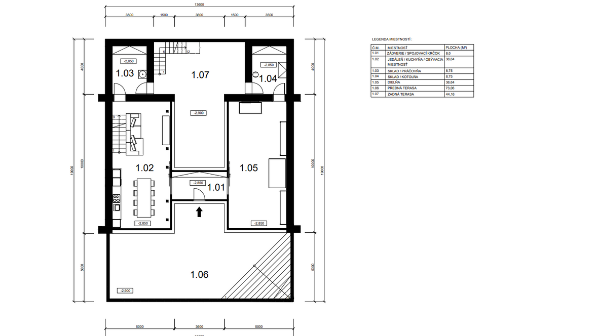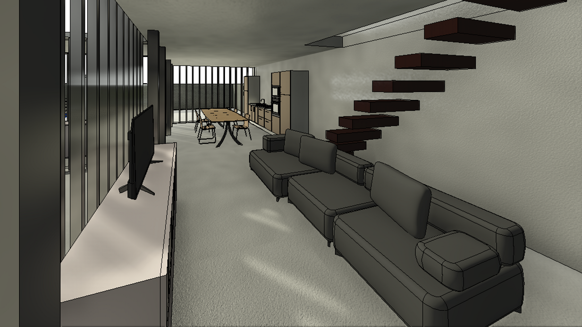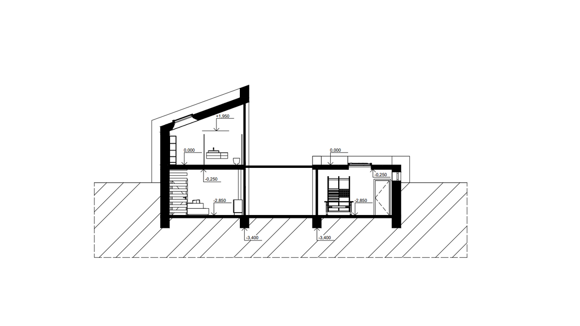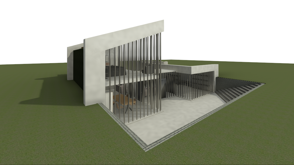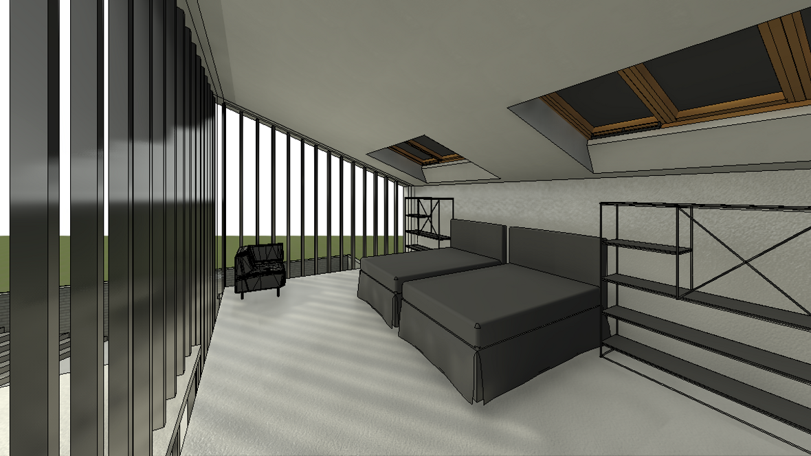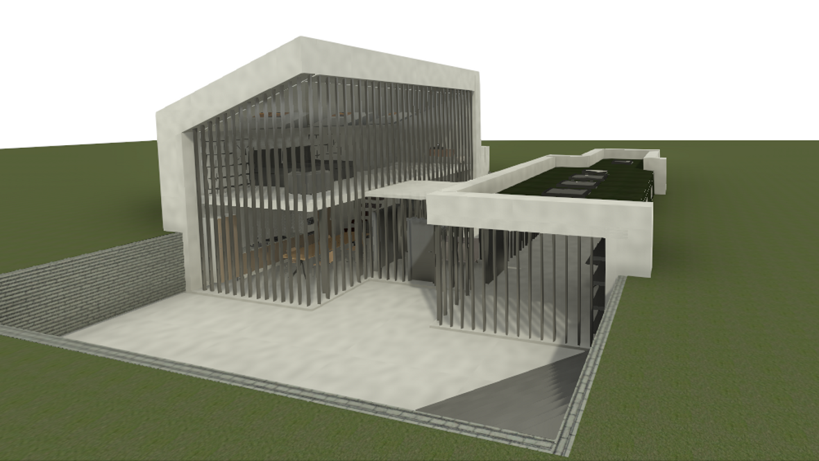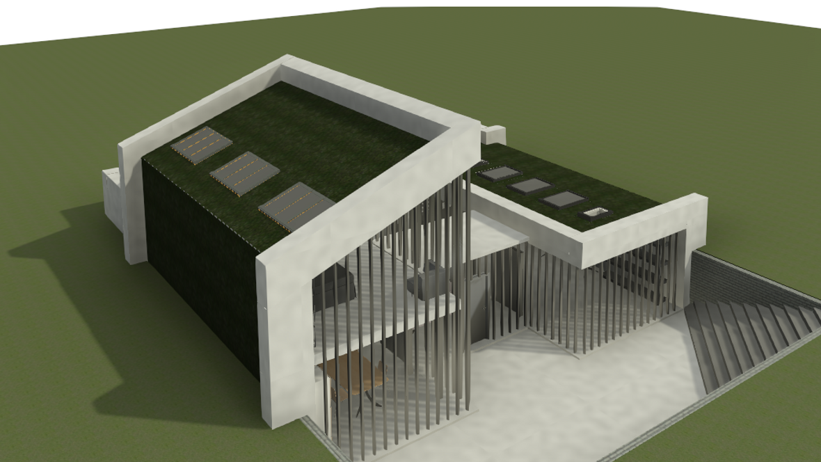 Ideou domu je vytvorenie vhodného priestoru pre remeselníka pracujúceho s drevom. Návrh pozostáva s dvoch navzájom prepojených objektov dispozične tvorený pre 2 osoby. Dvojpodlažná časť slúži ako obytná sekcia a prízemná časť ako pracovná sekcia. Obytná sekcia: Na prvom podlaží sú situované všetky priestory nutné pre bežný chod domácnosti ako jedáleň, kuchyňa, obývacia miestnosť a sklad a na druhom podlaží sa nachádza kúpeľňa a spálňa. Pracovná sekcia : Ústredný priestor pracovnej sekcie tvorí dielňa a technické zázemie. Celý objekt je čiastočne zapustený do terénu, čím nenarúša vizuálnu stránku okolia. Zelená strecha je z východnej a západnej strany napojená na fasádu a plynule sa spája s terénom. Vnútorné priestory sú presvetlené zasklenými plochami, ktoré zabezpečujú kontakt s okolím. Tienenie je navrhnuté z nastaviteľných drevných vertikálnych lamiel. Minimalistická stavba umožňuje spojenie súkromnej a pracovnej sféry, pričom sa jednotlivé funkcie nenarúšajú.