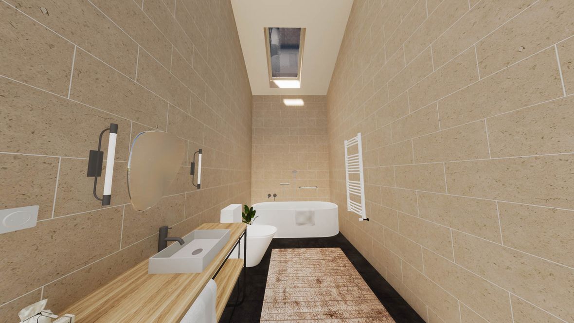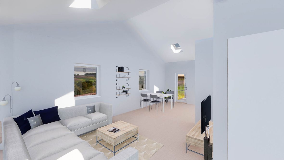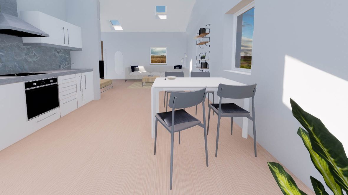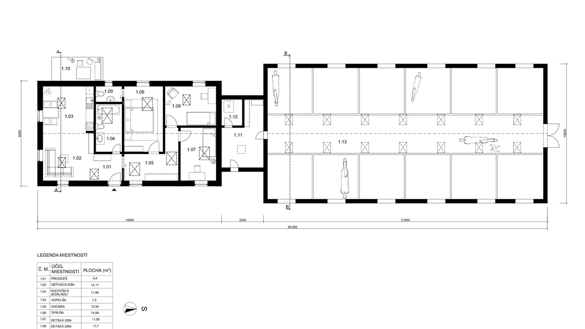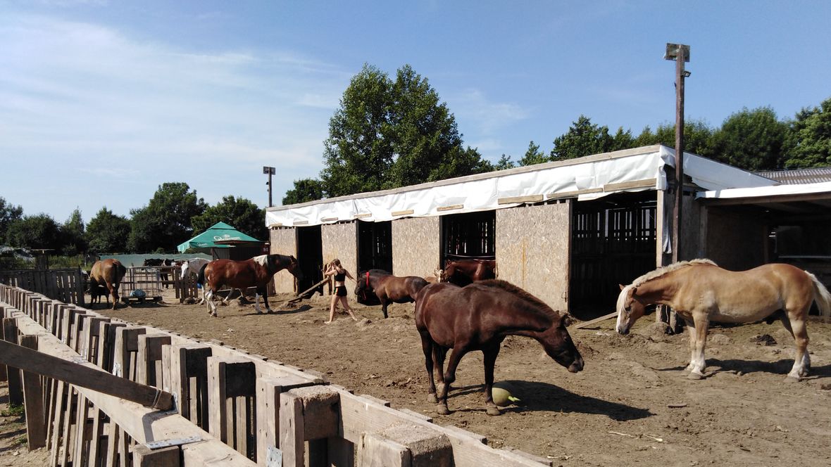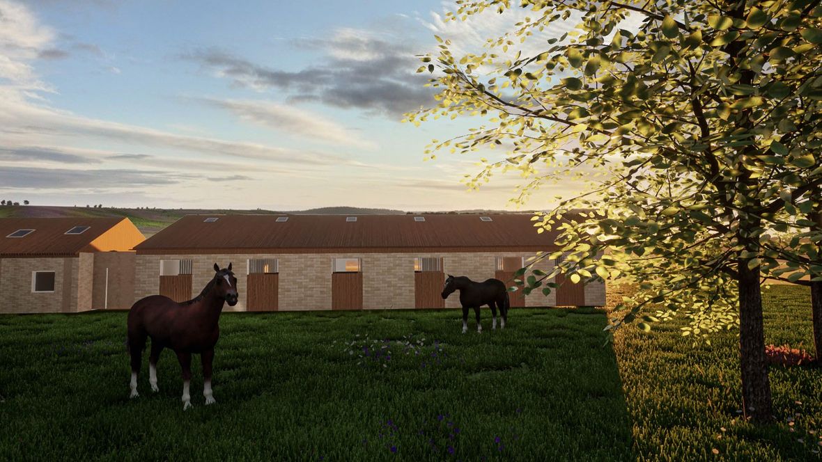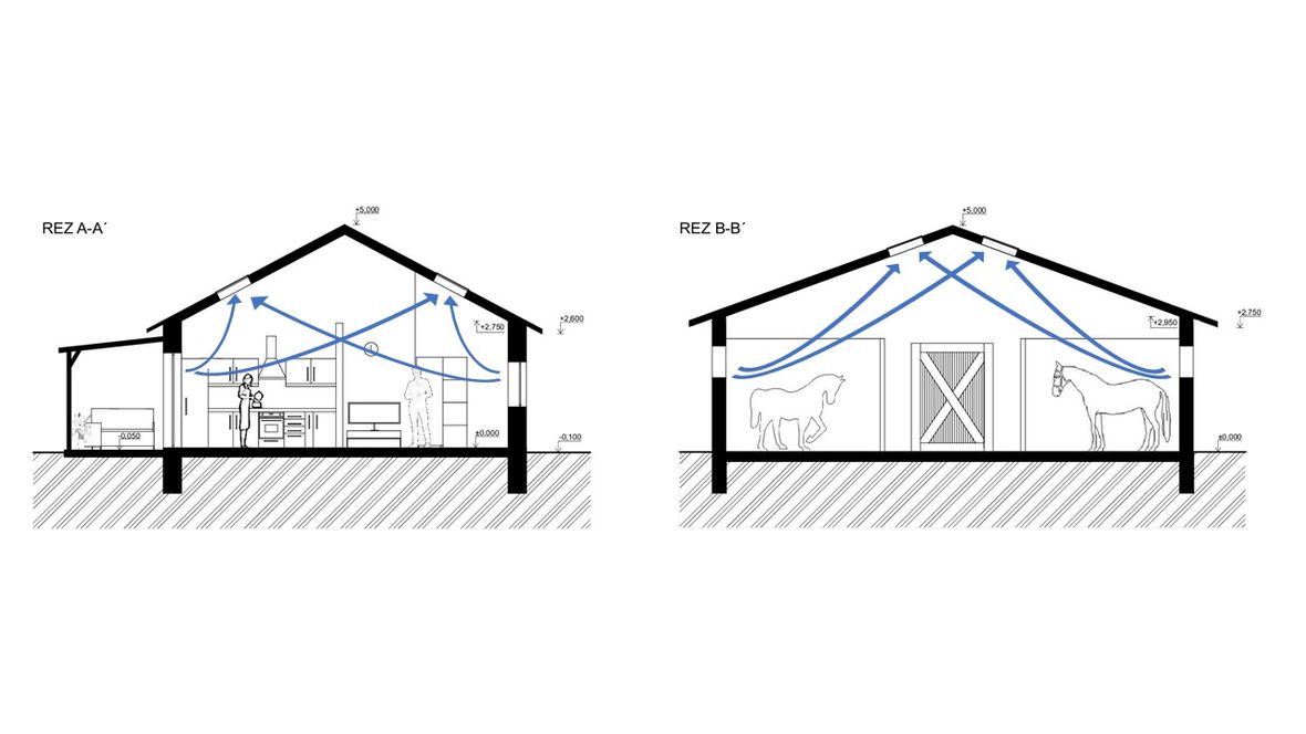 Projekt je adaptáciou priestoru občianskeho združenia, ktoré sa venuje starostlivosti o nechcené kone a psy a poskytovaniu rekreačného jazdenia. Dve písmená H symbolizujú slová Horses and Harmony ako napojenie domu na pokojnú prírodu a kone. Objekt je prestavaný na jednopodlažný rodinný dom pre zakladateľku, prepojený so stajňou pre kone a so skladom pre jazdecké vybavenie. Vďaka vyššej konštrukčnej výške, totožnej s výškou stajne a rôznemu sortimentu strešných okien Velux je zabezpečené dostatočné prevetranie a presvetlenie objektu. Všetky okná je možné podľa potrieb užívateľov ovládať aj diaľkovým ovládaním. Časť pôdorysu rodinného domu plní funkciu dennej časti s voľnou dispozíciou, kde sa rodina stretáva a druhá - nočná časť, je vybavená súkromne oddelenými dvoma detskými izbami a spálňou rodičov. Filtrom prechodu medzi rodinným domom a stajňou je spojovací krčok s technickou miestnosťou a skladom pre potreby k jazdeniu, krmivo, sedlá atď. Tento sklad je prekrytý zelenou strechou, svetlo do skladu preniká svetlíkom s plochým sklom. Aby mali aj ustajnené kone dostatok svetla a vzduchu, sú navrhnuté pre každý samostatný box široké otvory vo fasádnej stene spolu so strešnými oknami. Navrhnutým riešením by vznikla možnosť rodiny bývať priamo na mieste v ktorom pracujú, vychovávať deti v prírodnom pokojnom prostredí a žiť spolu so zvieratami, ktoré sú im odmalička blízke. Vďaka dobrej polohe a prístupnosti by tak mali aj návštevníci možnosť navštevovať moderné a komfortne upravené miesto, ktoré spolu s jeho obyvateľmi vytvára zónu pre oddych a trávenie voľného času.