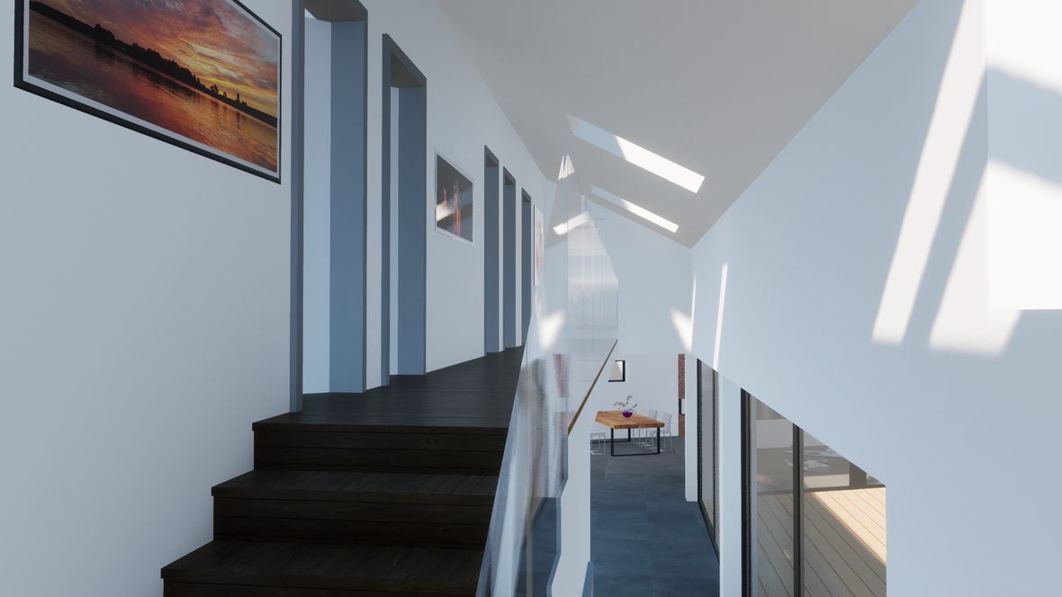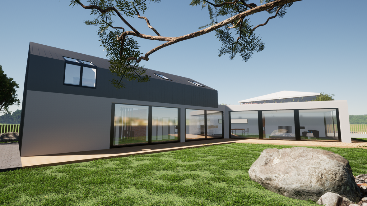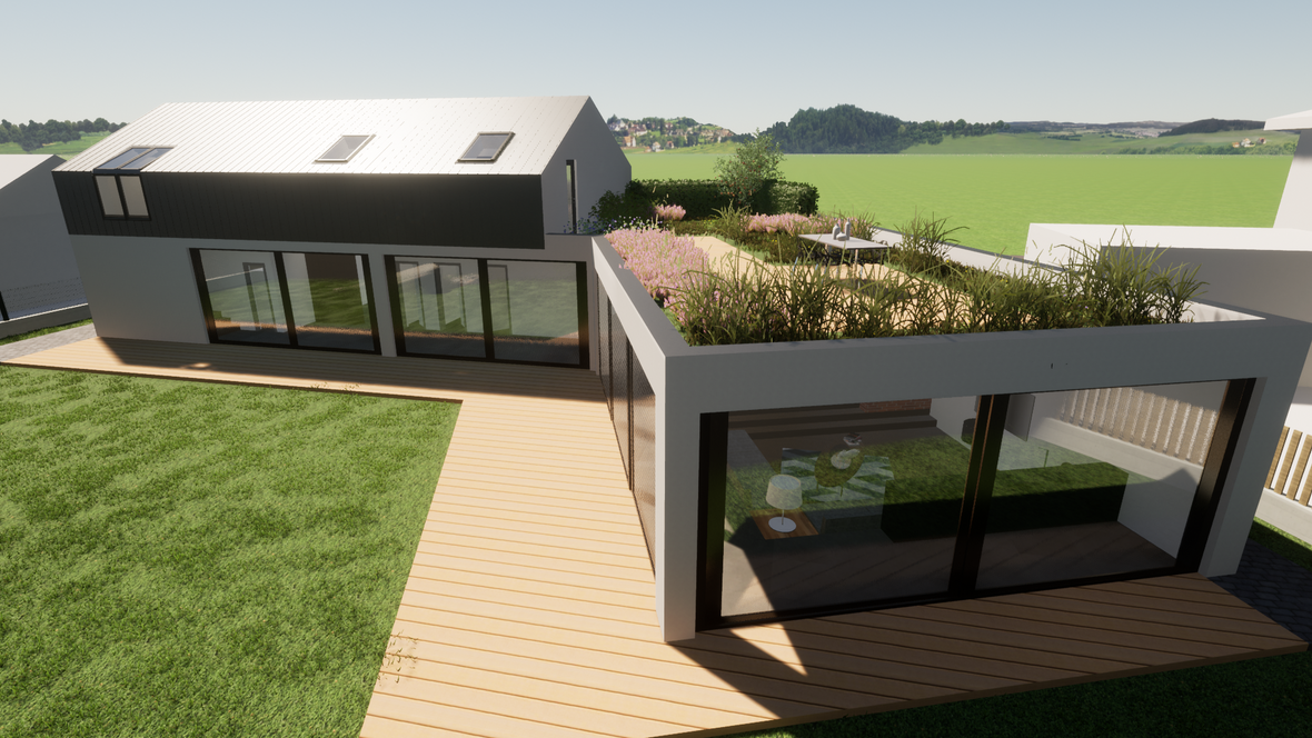 Oasis je dvojpodlažný nízkoenergetický dom navrhnutý pre štvor až päť-člennú rodinu do prímestských častí miest. Hlavnou ideou návrhu bolo, aby dom spolu s priestorom okolo neho vytváral dojem vlastnej zelenej oázy uprostred čoraz väčšej betónovej džungle našich miest. Dom je postavený z drevených panelov CLT a predná fasáda domu je tvorená z drevených lamiel z recyklovaného dreva. Garáž je zámerne „schovaná“, pretože som chcel vzbudiť dojem, že dom víta ľudí a nie autá. Dom je rozdelený na dve časti: hlavná - denná časť je tvorená veľkou obývačkou, ktorá je zapustená nižšie ako okolité podlahy, čím vytvára pocit rodinného hniezda. S obývačkou susedí kuchyňa s jedálenskou časťou, kde sa odohráva celý rodinný život. V druhej časti sú situované miestnosti, ako predsieň, garáž, chodba, tri izby, pracovňa (poprípade daľšia izba), dve kúpeľne, dve WC a pochôdzna zelená strecha, ktorá zaručuje príjemnú mikroklímu v dennej časti a zväčšuje obytný priestor smerom k prírode. Izby a schodisko na hornom podlaží sú presvetlené lomenými sústavami okien Velux, ktoré zabezpečujú dostatok svetla a zároveň prirodzený efekt vetrania. Celý dom je presvetlený strešnými oknami značky Velux.