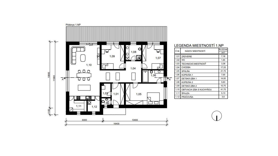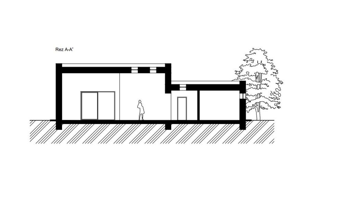 Dom je situovaný do vidieckeho prostredia. Dispozične rozdelený na dennú a nočnú časť. Dennú časť tvoria obývacia izba s kuchyňou a jedáleň. V nočnej časti sa nachádzajú dve detské izby, rodičovská spálňa a hygiena. Objekt je jednopodlažný prestrešený plochou vegetačnou strechou a doplnený strešnými svetlíkmi CVU0220Q rozmerov 900x1200 mm. Objemovo sa stavba skladá z dvoch kubusov rôznej výškovej úrovne. Riešenie fasády je kombinácia dreveného obkladu a bielej omietky.
