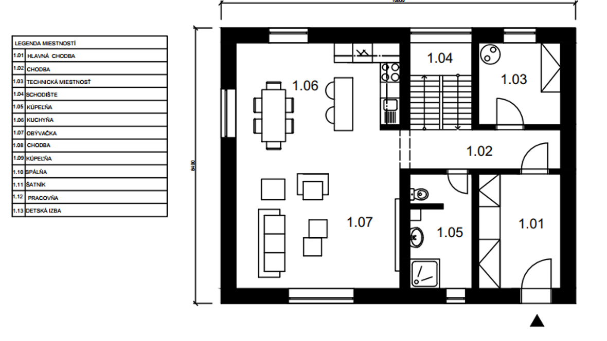FRESH House je rodinný dom,ktorý je navrhnutý pre 3 člennú rodinu.Je to dvojpodlažný rodinný dom so sedlovou strechou,druhé podlažie je riešené ako obytné podkrovie.Dom je rozdelený na nočnú a dennú časť.Prízemie predstavuje dennú časť s priestrannou kuchyňou spojenou s obývacou izbou.Na prízemí sa nachádza ešte vstupná chodba,technická miestnosť a kúpeľňa spojená s WC.Podkrovie predstavuje nočnú časť.Nachádza sa tam spáľňa s vlastným šatníkom,kúpeľňa s WC,pracovňa a detská izba.Podkrovné izby sú osvetlené strešnými oknami Velux.Výhodou strešných okien je väčšie presvetlenie izieb.Dokážu priniesť omnoho viac prirodzeného svetla ako okná fasádne.