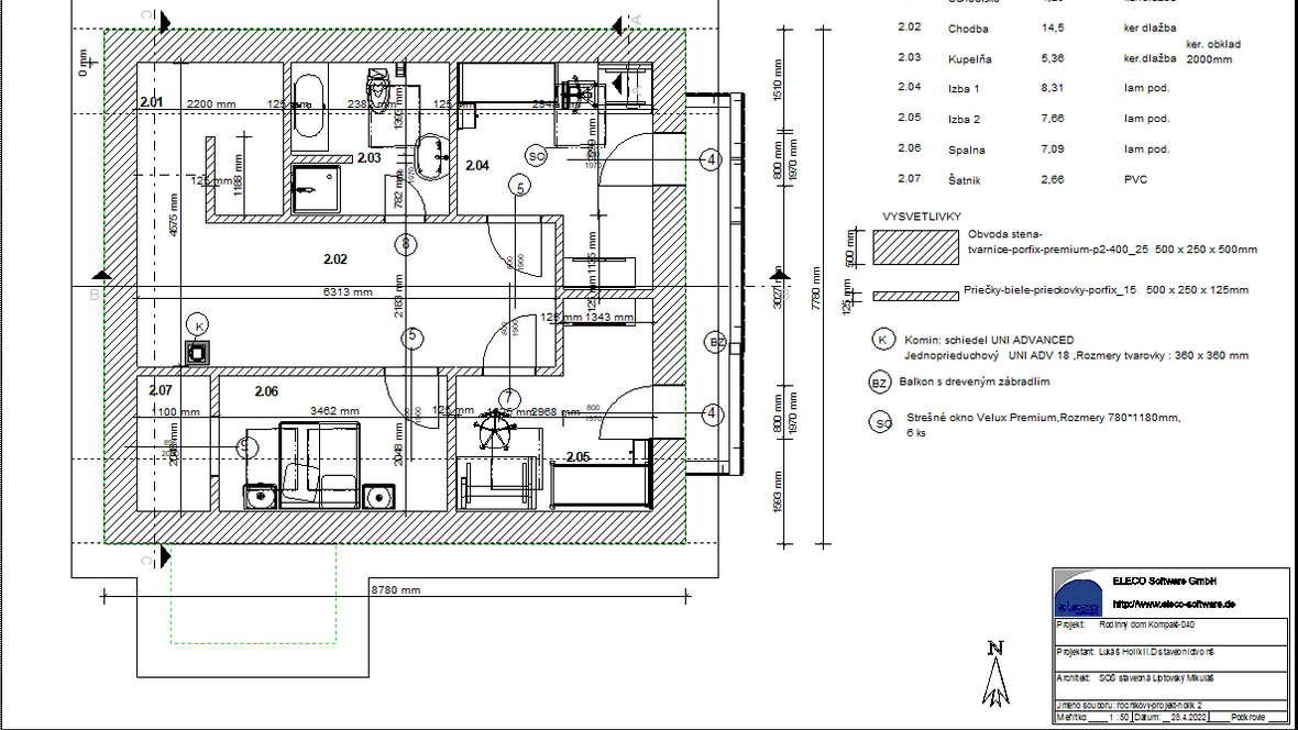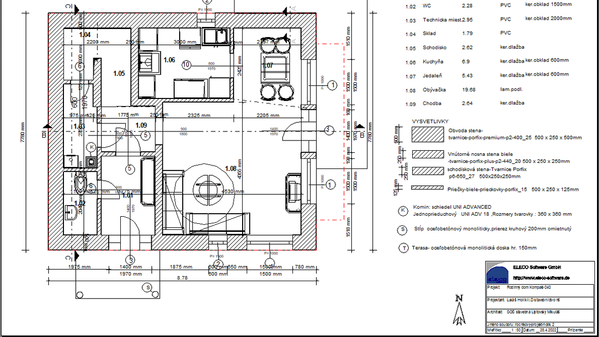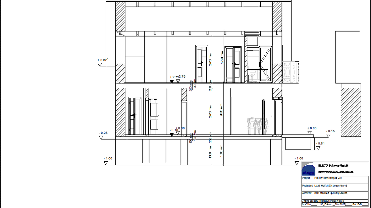 Objekt rodinného domu je situovaný v časti obce Liptovský Hrádok na pozemku investora. Terén pozemku je členitý, pôvodne orná pôda. Pozemok s parcelným číslom 1252 patrí do katastrálneho územia Dovalovo Prístup na pozemok je priamy z obecnej komunikácie. Vstup do domu je riešený z juhovýchod strany. Prehľad súhrnných údajov: Zastavaná plocha : 95,931m2 Obostavaný priestor : 498,63 m3 Úžitková plocha : 98,76m2 Konštrukčne je rodinný dom navrhnutý ako murovaný z obvodových tvarnice-porfix-premium-p2-400_25 500 x 250 x 500mm, Vnútorné nosné steny tvorí murivo z tvaroviek biele-tvarnice-porfix-plus-p2-440_20 500 x 250 x 250mm a p6-650_27 500x250x250 mm . Priečky sú navrhnute z priečkové biele-prieckovky-porfix_15 500 x 250 x 125mm. Na prízemí je navrhnutý 1 stĺp -Stĺp oceľobetónový monoliticky, prierez kruhový 200mm omietnutý podopierajúci strechu. V objekte je navrhnutý 1 komín : Komin: schiedel UNI ADVANCED Jedno prieduchový UNI ADV 18 ,Rozmery tvarovky : 360 x 360 mm. Objekt je zastrešený Zastrešený je sedlovou strechou so sklonom 38° stupňov. Konštrukcia strechy je tvorená hambálkovým krovom s upraveným podhľadom. Strecha je pokrytá.