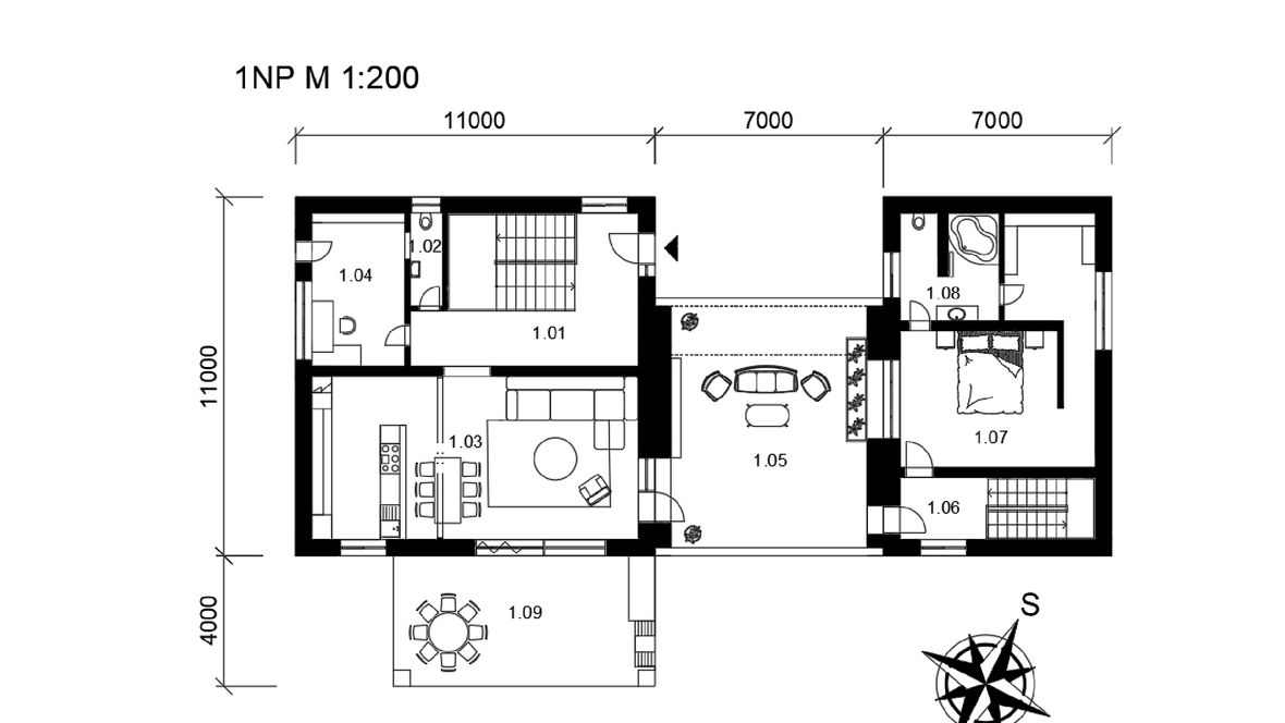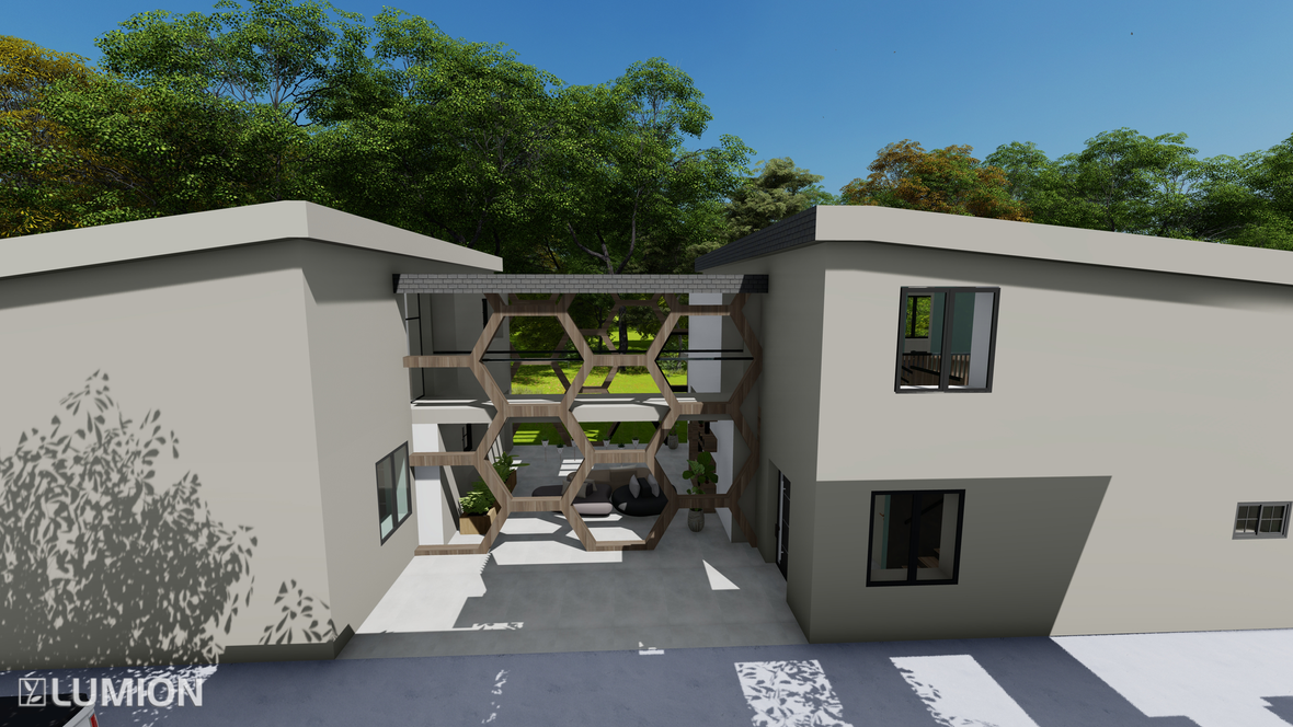 Hlavnou myšlienkou bolo vytvoriť rodinný dom pre rodinu s dieťaťom vo veku od približne 10 rokov, ktorý by bol prepojený s prírodou po formálnej aj funkčnej stránke. Návrhu po architektonickej stránke dominuje presklená stena s náznakom štruktúry včelieho plástu, ktorá presvetľuje vstupnú a prechodovú časť. Pre čo najlepšie presvetlenie miestností sú použité strešné okná a svetlíky Velux s diaľkovým ovládaním. Návrh počíta s podlahovým kúrením. Pri použití tepelných čerpadiel nebolo nutné použiť komín. Samotná dispozícia, zvýrazňujúca rozdelenie na dennú a nočnú časť s prechodovou časťou, kde je knižnica a posedenie, zabezpečuje súkromie obyvateľov domu. ,,Detská izba,, na poschodí je už zariadená skôr pre budúceho teenagera či teenagerku. Fitness priestor a domáce kino dopĺňa ponuku ambiciózneho bývania. Z rovnakého dôvodu, návrh exteriéru zahrňuje včelie úle, miestnosť na výrobu medu, slnečné kolektory ako aj záhradu kvetov.