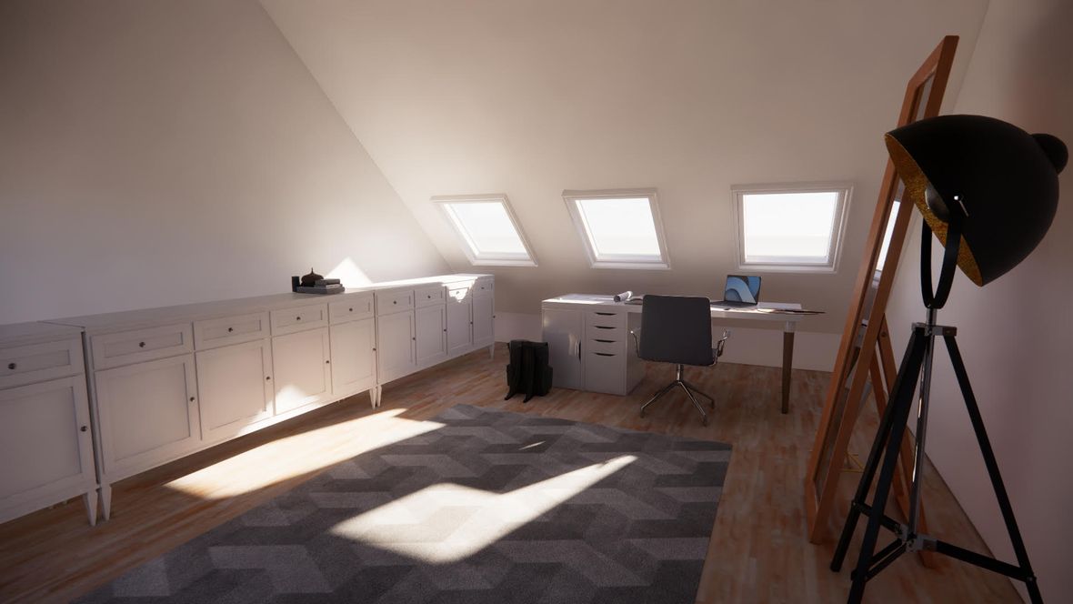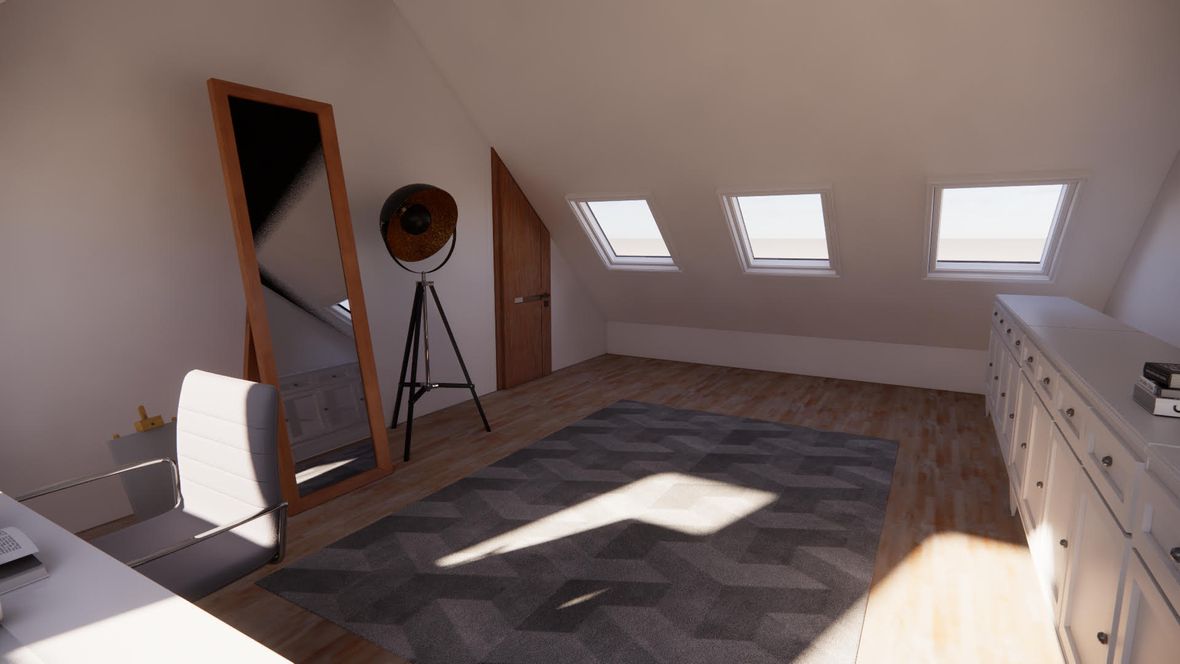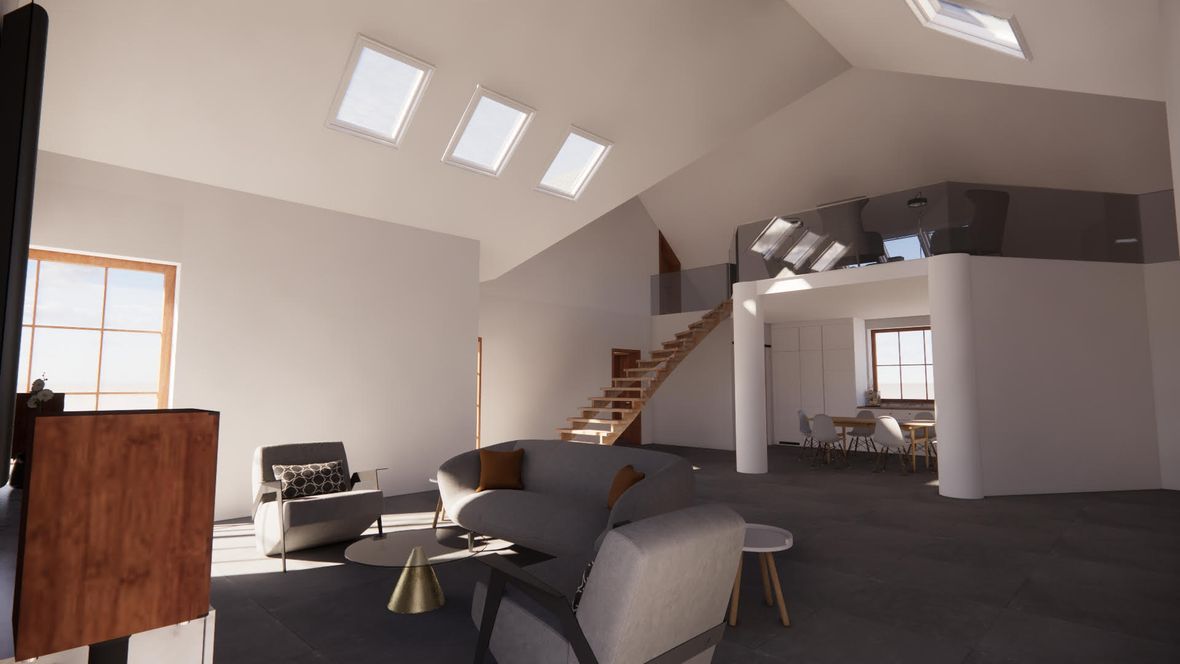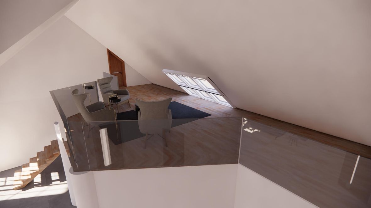 Pri tvorbe tohto veľkorozmerného rodinného domu sme sa zameriavali hlavne na otvorené a presvetlené priestory. Dom sme viedli v modernom štýle , ktorý by bol pohodlný pre celú rodinu a poskytol by priestor pre akékoľvek hobby. Je vhodný najmä pre umelecké duše ktoré trávia celé hodiny v ateliéry. Prízemie plní obytnú funkciu a naopak poschodie je zamerané na prácu či relax. Otvorená galéria poskytuje pohľad na veľkorysí priestor a zároveň umožňuje oddych v súkromí. Celé poschodie tvorí podkrovný priestor v ktorom sú požité dva druhy okien a to diaľkovo ovládateľné okno VELUX GGL INTEGRA ktoré je zakomponované aj v obývacom priestore a strešný balkón VELUX GDL. Rozhodli sme sa pre diaľkové ovládanie najmä kvôli jednoduchšiemu ovládaniu v priestoroch s vysokou konštrukčnou výškou. Dom je z prírodných a udržateľných materiálov. Vysoký prienik svetla opticky zväčšuje priestor a dáva pocit voľnosti.