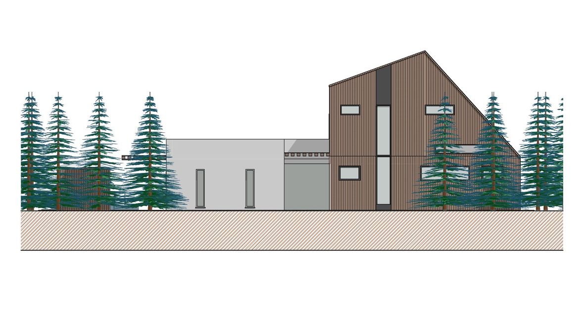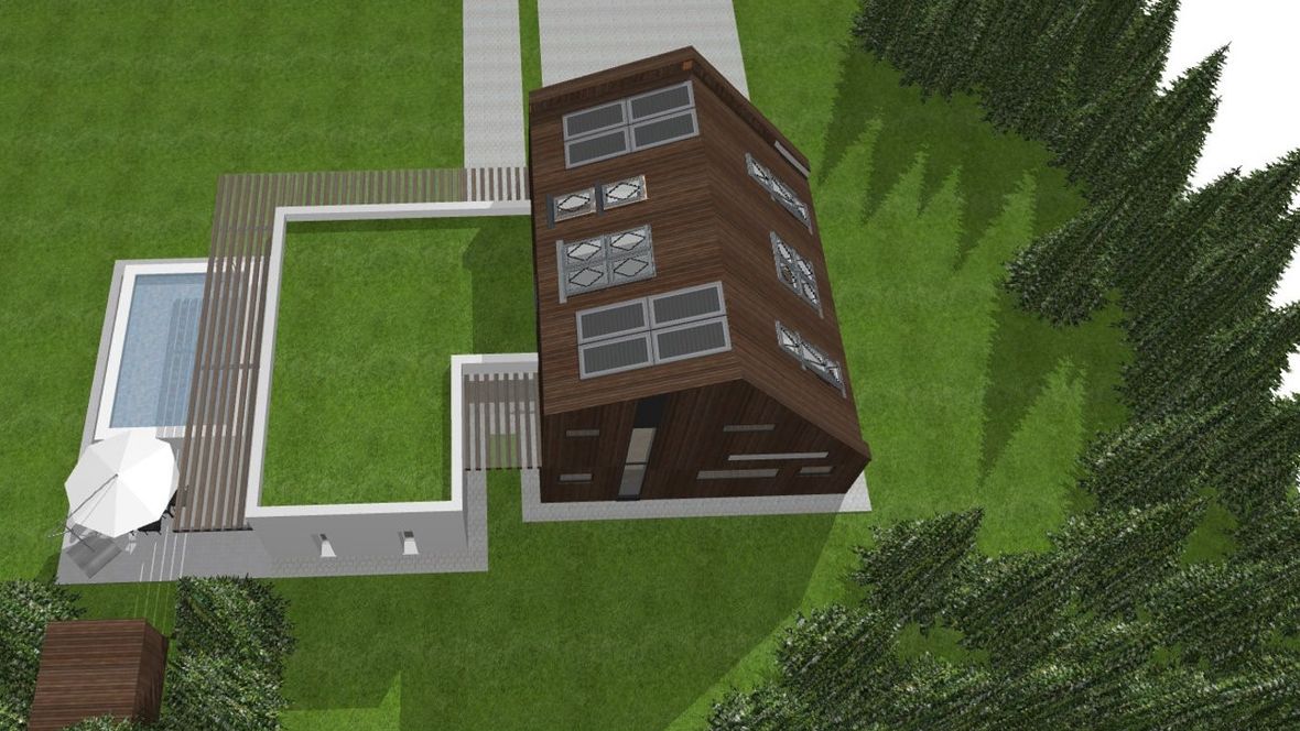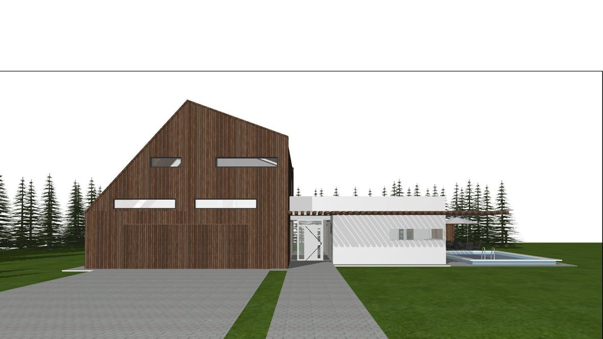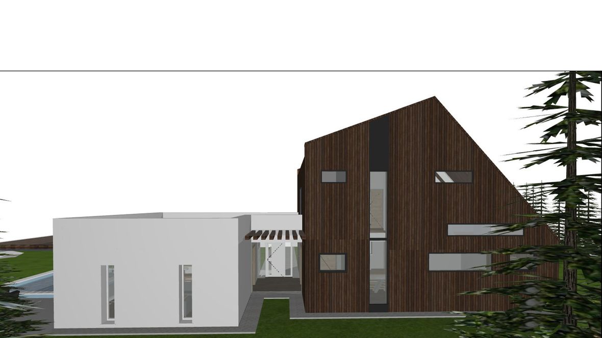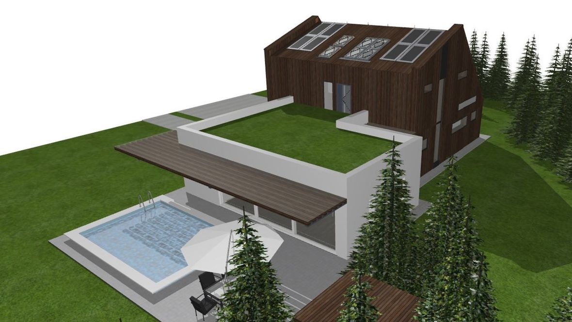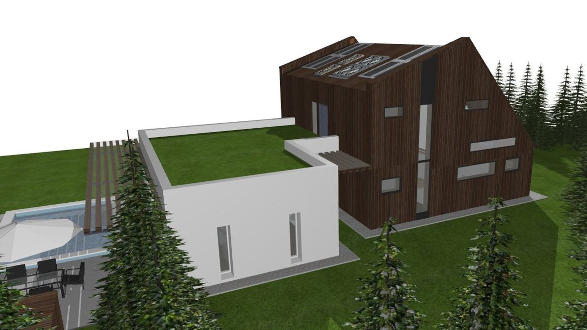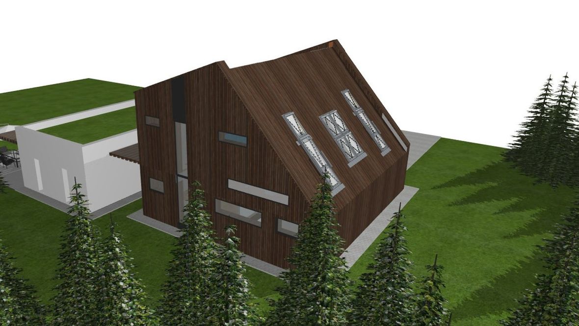 Rodinný dom Na okraji lesa je situovaný na príjemnom mieste pri lese. Z tohto prostredia cítiť pokoj a vždy čerstvý vzduch. Milovníci prírody ocenia priamy kontakt s prírodou a nádych modernej architektúry domu. Dom je navrhnutý ako nízkoenergetický dom s fotovoltaickými a slnečnými panelmi. Rodinný dom svojou vizualizáciou zapadá do prírody horského prostredia a zároveň tam vyniká. Čarom tohto domčeka je rozdelenie domu na dve časti. Súkromná časť (drevená časť s netypickou strechou), v ktorej sa nachádza garáž a nočná súkromná časť na poschodí a spoločenská časť (biela časť s plochou strechou), ktorej sú situované priestory pre návštevy a pobyt počas dňa. Kým súkromná nočná časť je dispozične situovaná na východ; severovýchod, tak spoločenská časť domu je dispozične situovaná na juh; juhozápad. Tieto dva objekty spája presklená chodba vo vstupe do objektu. Mysleným spojom týchto časti je drevená markíza, ktorá vizuálne vytvára celok domu. Spojenie plochej intenzívnej strechy a šikmej strechy dodáva rodinnému domu netradičný vzhľad. Ďalším netypickým prvkom sú podlhovasté okná v izbách na 2.NP. Spodný pás je bez parapetného muriva, čiže od podlahy a tieto okná sú z mliečneho skla a druhý pás okien je až od 2m. Prirodzené svetlo prejde z každého uhla a pritom sa zachová súkromie.
