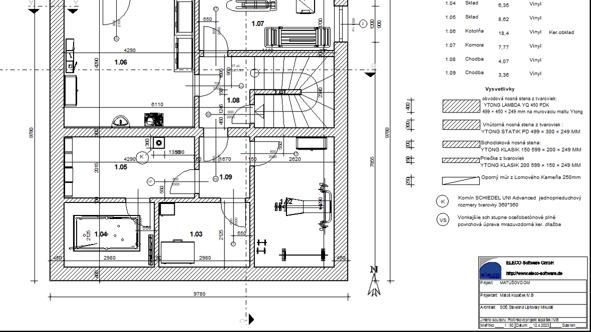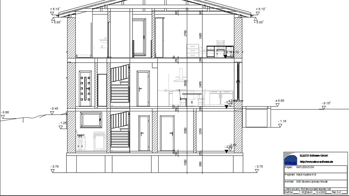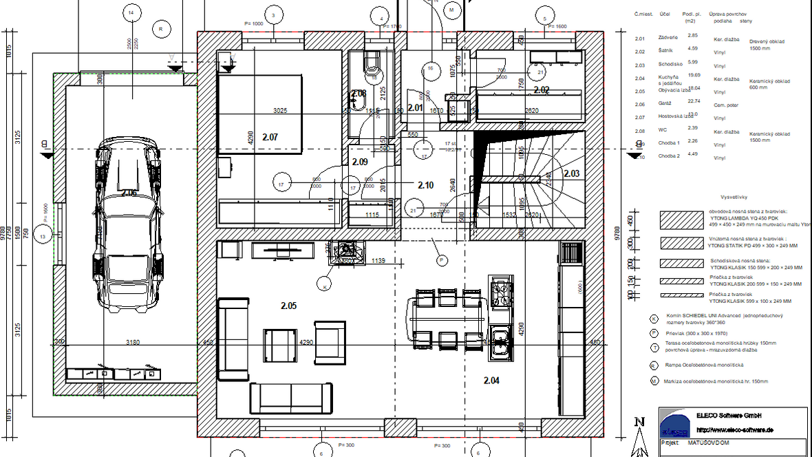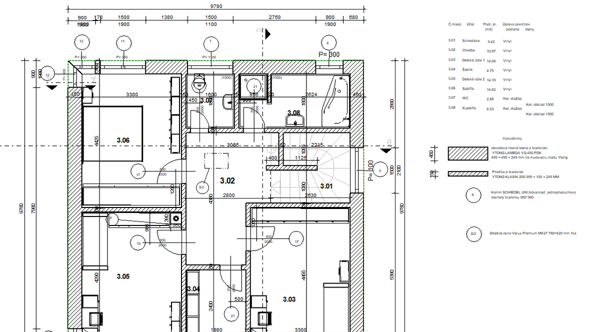 Základné informácie o rodinnom dome MATÚŠ DOM Rodinný dom s pôdorysnými rozmermi 9,78mx9,78m je trojpodlažný v svahovitom teréne. Je navrhnutý z pórobetónového stavebného systému Ytong tak, aby vyhovoval súčasným tepelnotechnickým požiadavkám nízkoenergetickej budovy na bývanie. Má stanovú strechu so sklonom 15°. Strešný plášť je zateplený troma vrstvami tepelnej izolácie Isover , zakončený je betónovou strešnou krytinou Bramac Platinum z vysokokvalitného betónu. Podkrovie je presvetlené a prevetrané strešným oknom Velux Premium MK27 780×620 mm v počte 1ks.