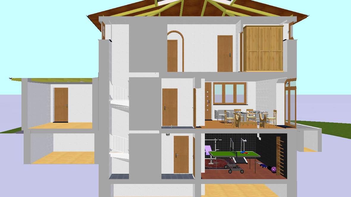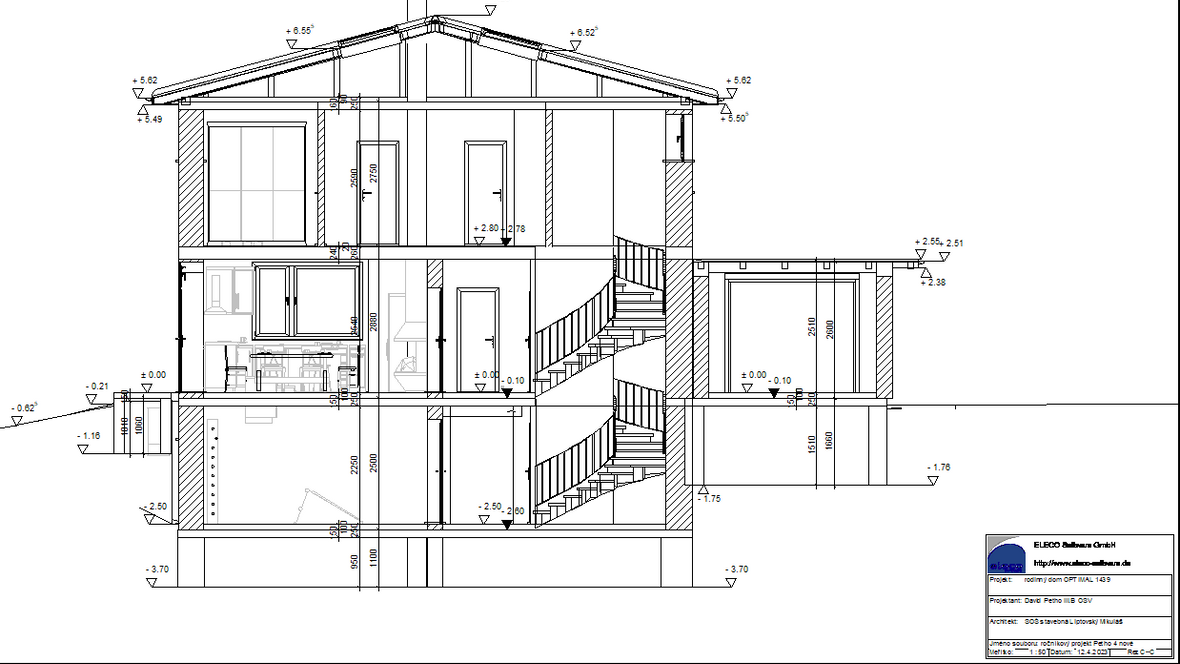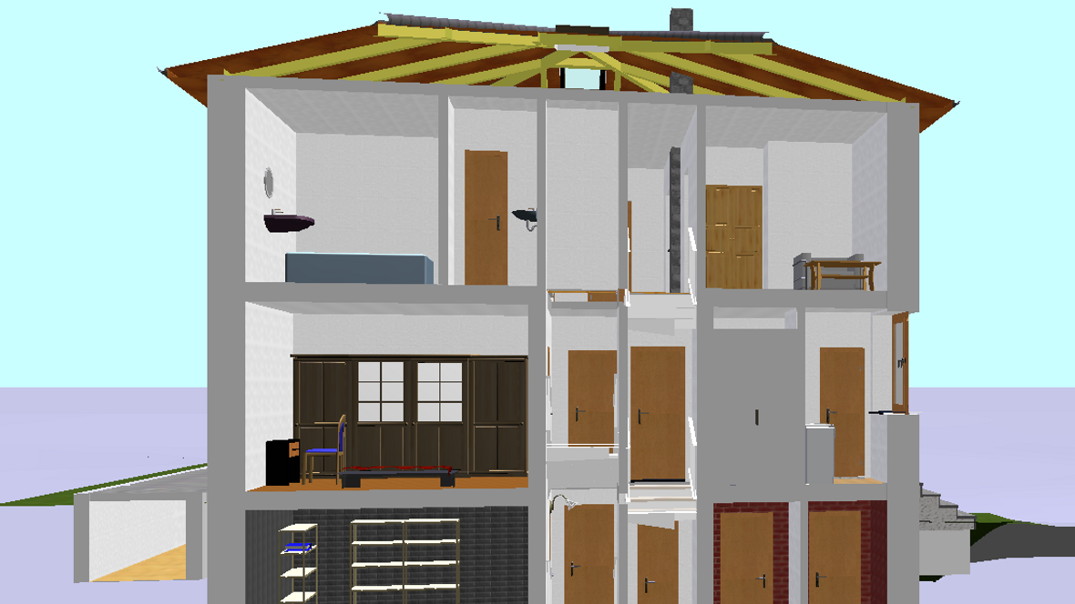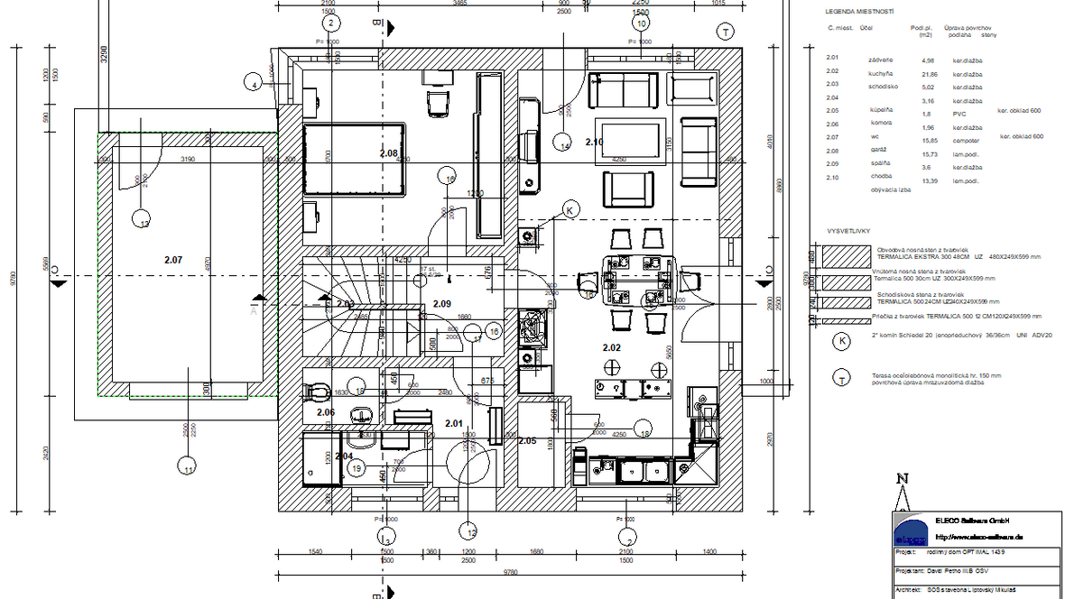 Rodinný dom s pôdorysnými rozmermi 9,78mx9,78m je trojpodlažný jednogeneračný. Je navrhnutý z pórobetónového stavebného systému Termalica tak, aby vyhovoval súčasným tepelnotechnickým požiadavkám nízkoenergetickej budovy na bývanie. Má stanovú strechu so sklonom 15° a s markízou tak, aby chránila vstup do objektu. Garážová strecha je plochá s minimálnym so sklonom 0,5°. Strešný plášť je zateplený 3 vrstvami tepelnej izolácie Rockwool . Podkrovie je presvetlené a prevetrané strešnými oknami VELUX Premium s rozmermi MK06 780/1180 v počte 2ks.