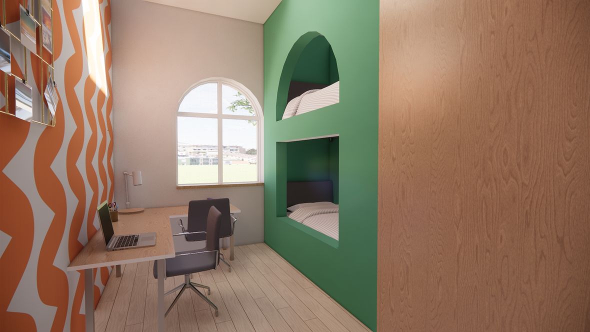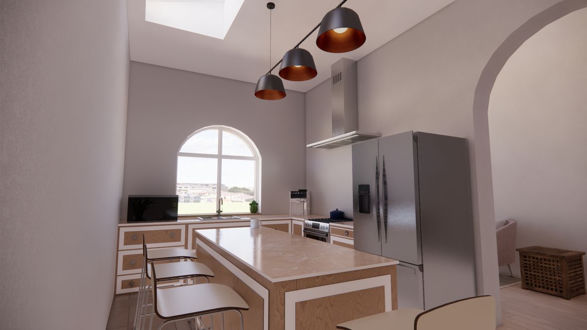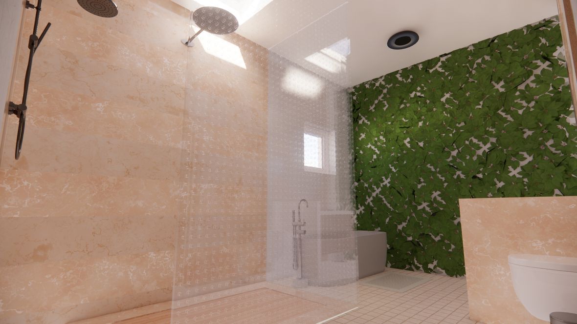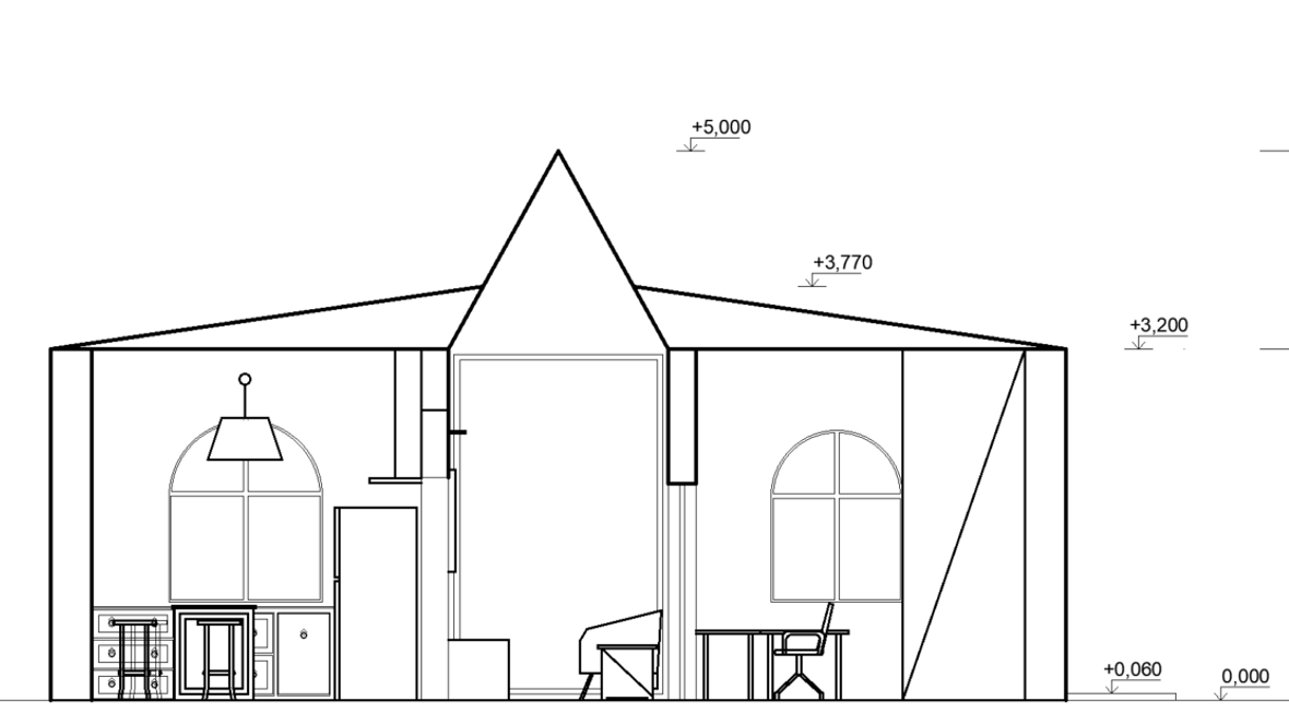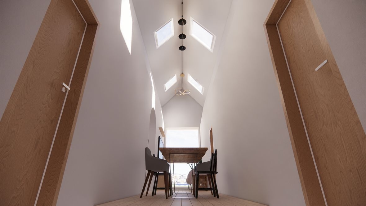 Tento dom vďaka využitiu strešných okien VELUX je perfektne presvetlený, aj s jeho netradičným tvarom strechy. Jednopodlažný, priestorovo úsporný s tromi obytnými miestnosťami- spálňa rodičov, spálňa detí a kompaktná jedáleň spojená s obývacou izbou, priestrannou kuchyňou a kúpeľňou, do ktorej je inkorporovaná aj zelená stena a strešné okno nad sprchovým kútom, čo prináša pocit luxusu, kľudu a spojenie s prírodou. Je vhodný pre novomanželské páry a rodiny s dvomi deťmi s pristavanou terasou a veľkým priestorom na trávenie času vonku v prírode.