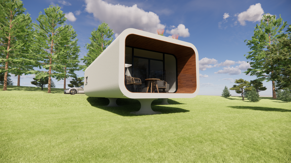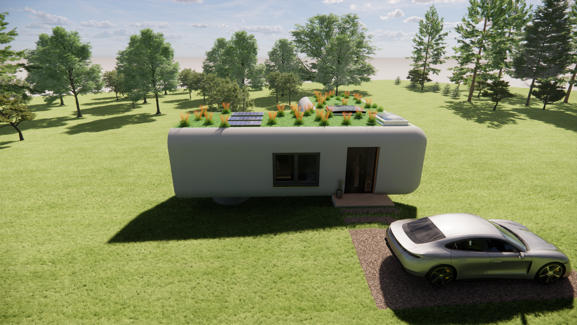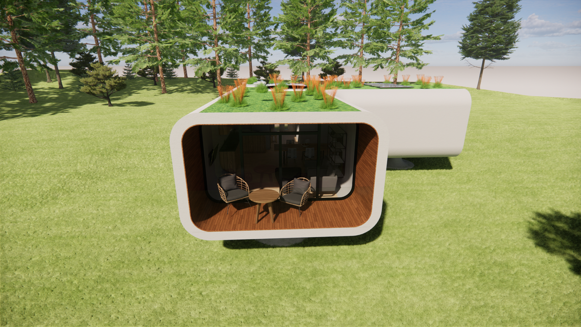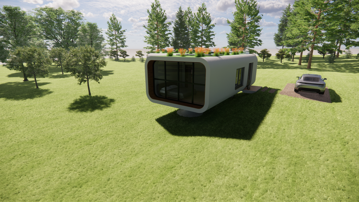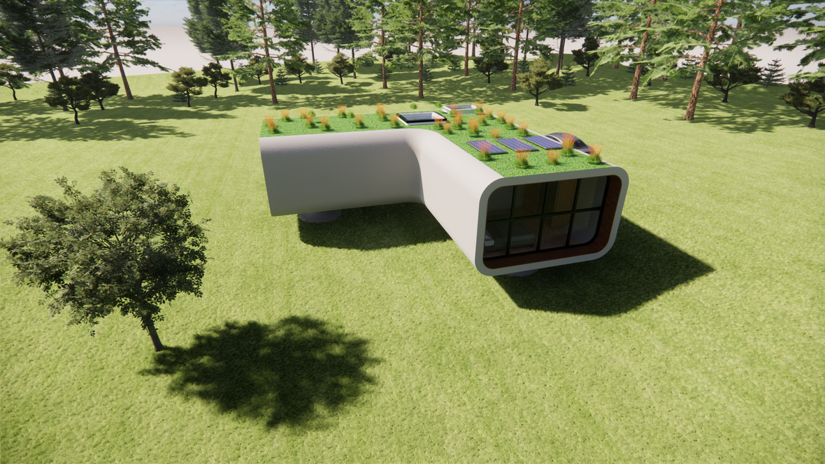 Môj návrh spočíva vo vytvorení modelového rodinného domu, v tomto prípade s pôdorysným tvarom písmena L. Jeho umiestnenie je vhodné v strmšom teréne, v úzkom kontakte s prírodou. Jeho dominantou a výhodou je jednoduchý spôsob založenia na pilíeroch v tvare hyperbolidu, v ktorom sa nachádzajú inžinierske siete. Z hľadiska vnútornej dispozície sa jedná o trojizbový byt pre maximálne štvorčlennú rodinu, pridaním modulu je možné kapacitu zvýšiť. Dom je z hľadiska energetického sebestačný vďaka fotovoltaických panelom, prirodzené presvetlenie vnútorných priestorov zebezpečujú svetlíky VELUX.