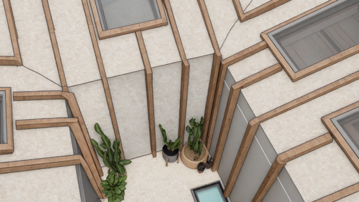 Dom SAHARA je situovaný v meste Hurbanovo, v jednom z najteplejších miest na Slovensku v radovej zástavbe. Mojím hlavným cieľom bolo aby bol objekt presvetlený a pôsobil slnečno, keďže mojou inšpiráciou bol interiérový štýl Sahara. Snažila som sa zachytiť život domu v púštnych podmienkach ako aj v takomto podnebí. Následne som sa snažila zachytiť materiály a štýl domu ako vnútri tak aj vonku. Dispozícia domu je rozdelená na plne funkčnú dennú časť (1.NP) a nočnú časť (2.NP). Cez nočnú časť, konkrétne cez chodbu, ktorá spája spálňu a detskú izbu je vchod do átria. V átriu sú umiestnené dva svetlíky Velux, ktoré presvetľujú obývaciu izbu na 1. NP. a rastliny, ktoré prežijú aj v našom podnebí. Smerom do átria vedie šikmá strecha a na nej sú strešné okná Velux, presvetľujúce všetky izby na 2.NP. Od strechy až po átrium vedú drevené laty. SAHARA je vhodný pre 4-člennú rodinu, ale aj väčšiu návštevu.