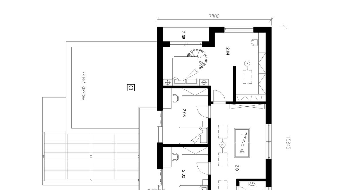 Rodinný dom VIOLA je samostatne stojací, moderný, dvojpodlažný, nepodpivničený rodinný dom unikátneho tvaru. Návrh tohto domu je situovaný na súkromnej ulici, na okraji obce Soblahov pri Trenčíne. Prvé podlažie tvorí spoločenská časť domu. Po vstupe cez hlavný vchod pokračuje spojovacia chodba, z ktorej je napravo prístupný otvorený priestor obývacej izby prepojený s jedálňou a kuchyňou. Naľavo od spojovacej chodby sa nachádzajú priestory–šatník, technická miestnosť, kúpeľňa so sprchovým kútom a wc. Do tohto priestoru vedie aj bočný vchod a dopĺňa pracovňa orientovaná do záhrady a tiež schodisko. Druhé podlažie tvorí nočná časť domu, ktorá obsahuje spálňu, 2 detské izby, väčšiu kúpeľňu s vaňou a sprchovým kútom, samostatné wc. Všetky miestnosti sú prístupné z galérie, časť ktorej slúži aj ako herňa. Hlavná spálňa má samostatný šatník a prístup na vlastný malý balkón. Nad šatníkom, chodbou a schodiskom sa nachádzajú svetlíky spoločnosti Velux. Toto podlažie je tiež obohatené o spoločný balkón, na ktorý je prístup z detských izieb i chodby. Okolie domu tvorí priestranná záhrada s bazénom, letnou terasou prístupnou z obývacej izby, ale aj priestorom určenému pre deti.