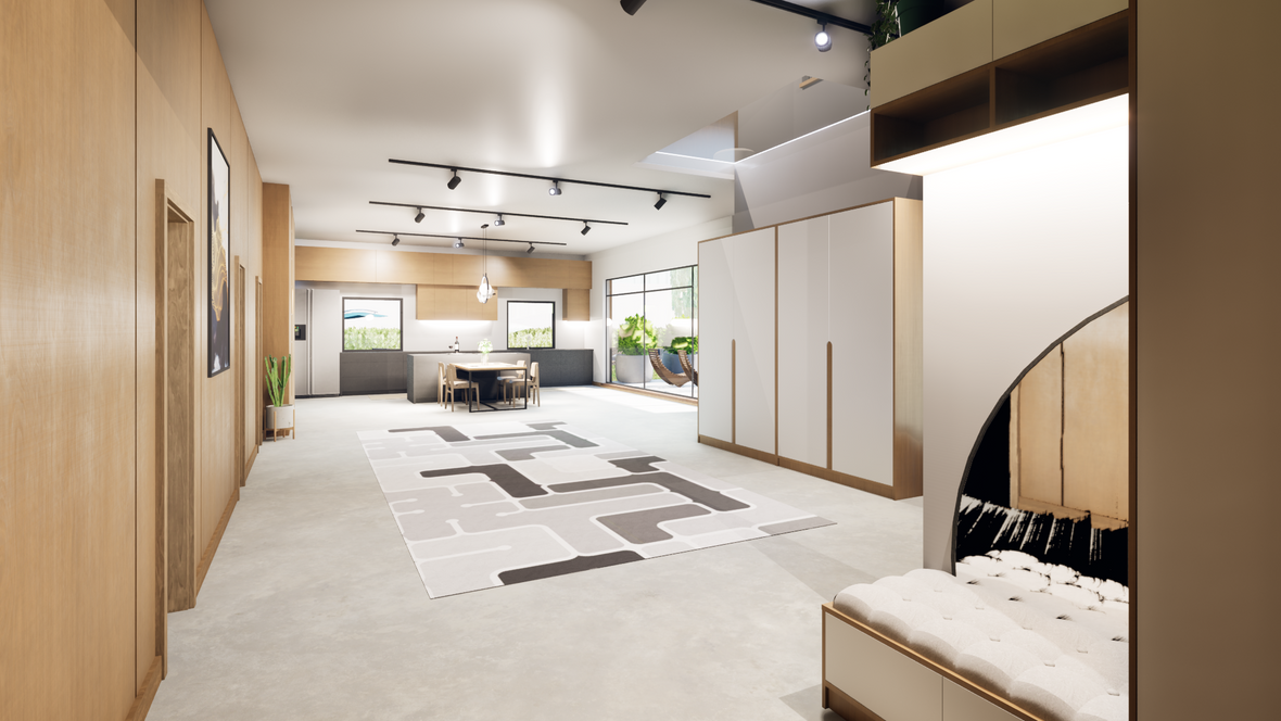 Tento dvojpodlažný dom ''Tranquil'' kombinuje eleganciu s pohodlím a ponúka dokonalé miesto na relax. Otvorená kuchyňa a obývacia izba tvoria centrum domu, kde sa rodina a priatelia môžu schádzať a tráviť spoločné chvíle. Obrovským plusom tohto domu je aj to, že interiér je prepojený s exteriérom a tak dodáva pocit prepojenia s prírodou, najmä vďaka veľkým oknám smerovanými do záhrady.