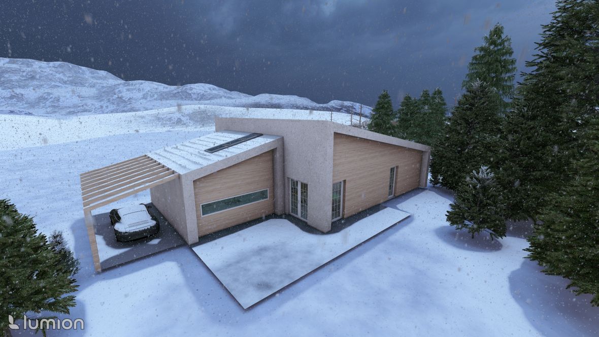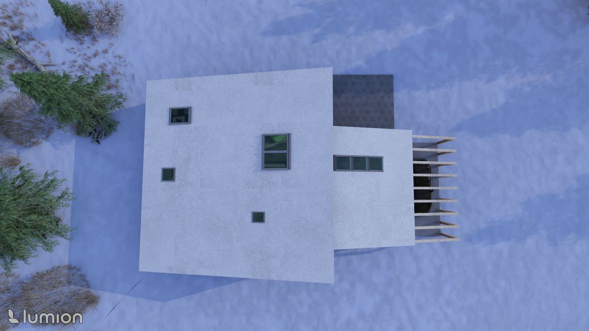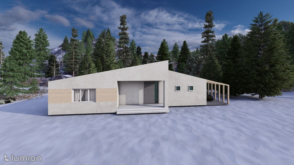 Koncept domu pracuje s prvkami moderného bývania v škandinávskych krajinách, ktorý sa však môže použiť aj na našom území vďaka jeho nadčasovému dizajnu. Hmota domu je tvorená zrezaným hranolom trapézovitého tvaru. Pôdorysný tvar je jednoduchý, bez výrazného členenia. Strecha je pultová, v nižšej časti prechádza do drevenej pergoly, ktorá slúži ako prístrešok pre auto. Do objektu sa prichádza cez prestrešené závetrie. 3-izbový dom ponúka veľké otvorené priestory priznaným šikmým stropom vo väčšine miestností. Zahŕňa otvorenú dennú časť so vstupom, hygienickým zázemím, šatníkom, špajzou a technickou miestnosťou. Ľavú časť domu tvorí nočná - oddychová zóna pre členov rodiny s veľkou kúpeľňou. Dom tak obyvateľom poskytuje pohodlné využívanie objektu bez rušivých miest. Fasádu domu tvorí betónová omietka s prvkami z borovicového dreva na prednej a zadnej strane objektu. Strešné okná VELUX dodávajú 1-podlažnému objektu dostatok denného svetla, výhľad na oblohu a v noci aj na hviezdy.