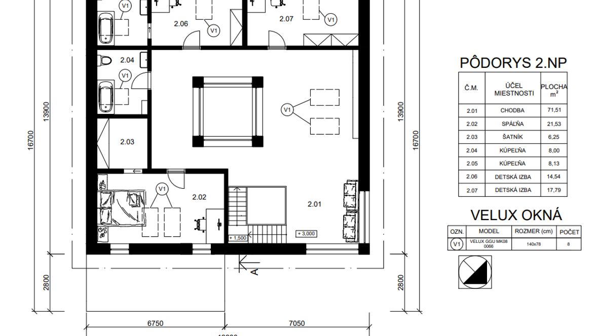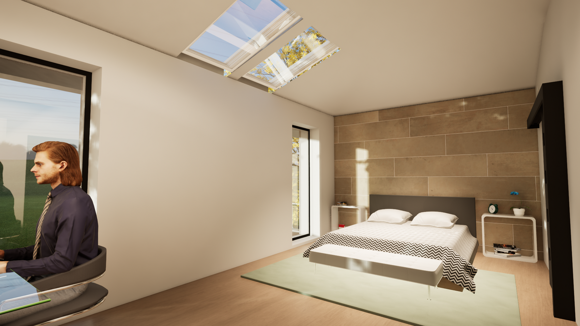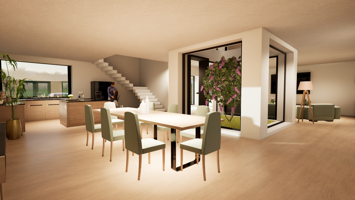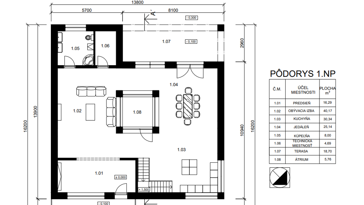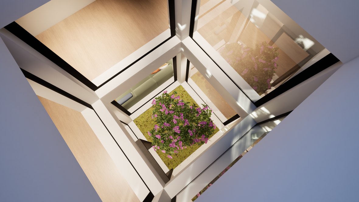 Rodinný dom Atriona sa vyznačuje svojím minimalizmom a modernou architektúrou. Dom je rozdelený na dennú časť na 1.NP a na nočnú časť, ktorá sa nachádza na 2.NP. Dominantným prvkom tejto stavby je átrium, ktoré je situované v strede domu. Z jednej strany átria sa nachádzajú presklené dvere, ktorými sa dá vojsť dovnútra. Átrium je presvetlené a vetrané jedným veľkým na mieru vyrobeným svetlíkom. Spája nie len vizuálne prepojenie, ale aj dostatok denného svetla, čo vytvára pocit otvorenosti a vzdušnosti. Ďalší prístup svetla do domu sú strešné okná VELUX, ktoré sa nachádzajú v každej miestnosti na 2.NP. Sú na diaľkové ovládanie, takže používanie je bezproblémové.