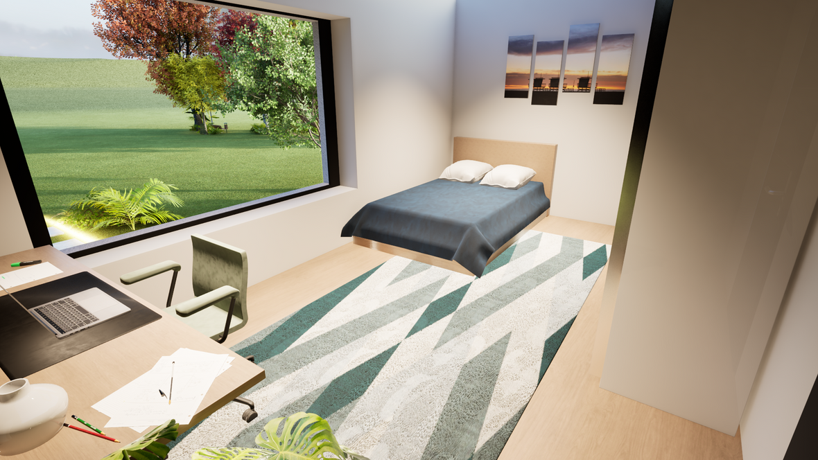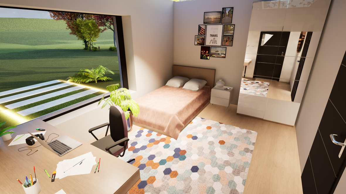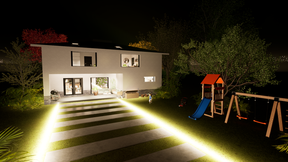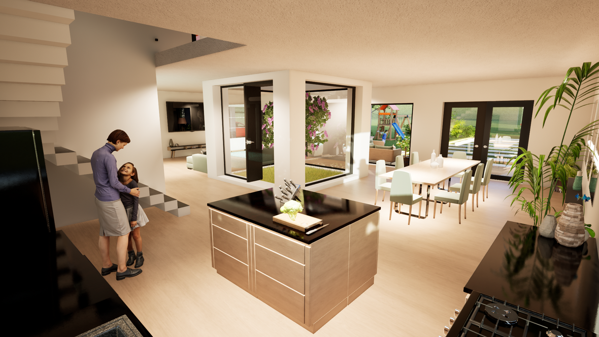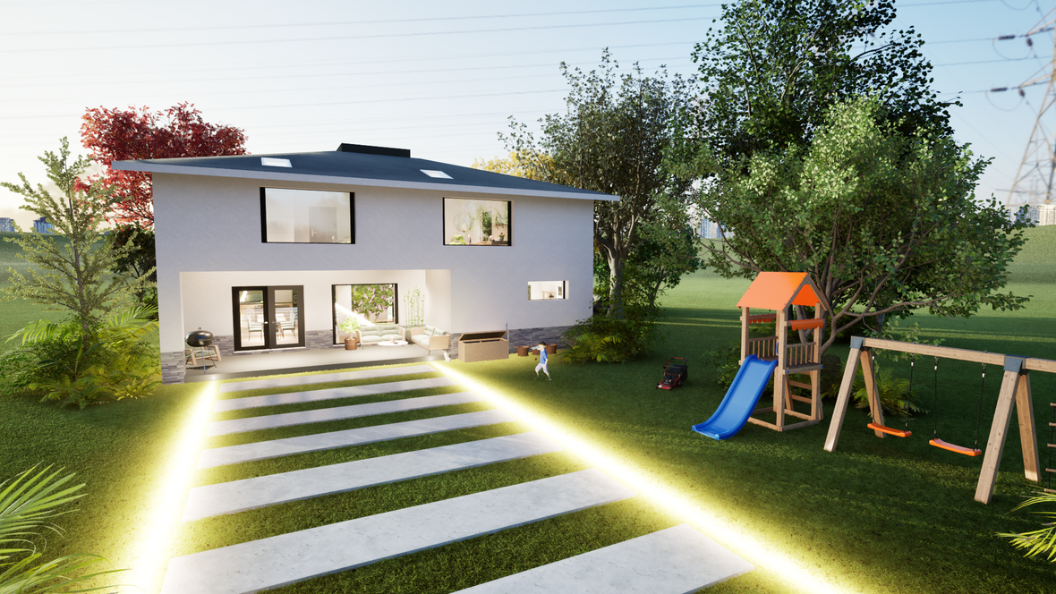 Rodinný dom Atriona sa vyznačuje svojím minimalizmom a modernou architektúrou. Dom je rozdelený na dennú časť na 1.NP a na nočnú časť, ktorá sa nachádza na 2.NP. Dominantným prvkom tejto stavby je átrium, ktoré je situované v strede domu. Z jednej strany átria sa nachádzajú presklené dvere, ktorými sa dá vojsť dovnútra. Átrium je presvetlené a vetrané jedným veľkým na mieru vyrobeným svetlíkom. Spája nie len vizuálne prepojenie, ale aj dostatok denného svetla, čo vytvára pocit otvorenosti a vzdušnosti. Ďalší prístup svetla do domu sú strešné okná VELUX, ktoré sa nachádzajú v každej miestnosti na 2.NP. Sú na diaľkové ovládanie, takže používanie je bezproblémové.