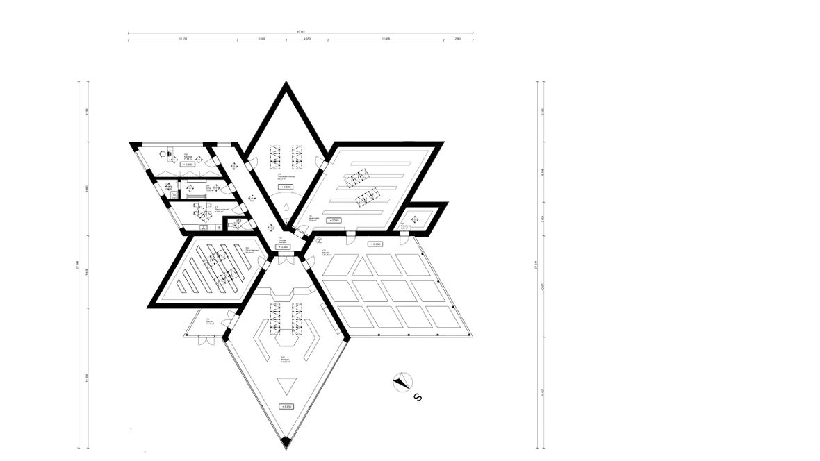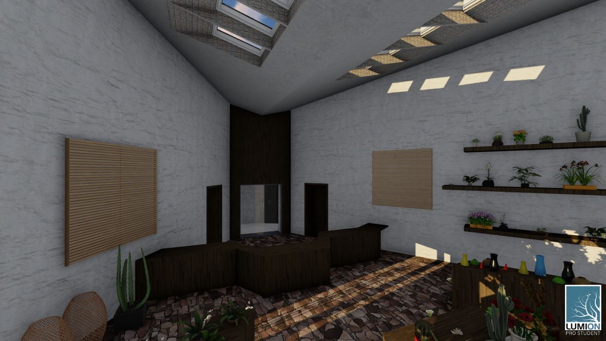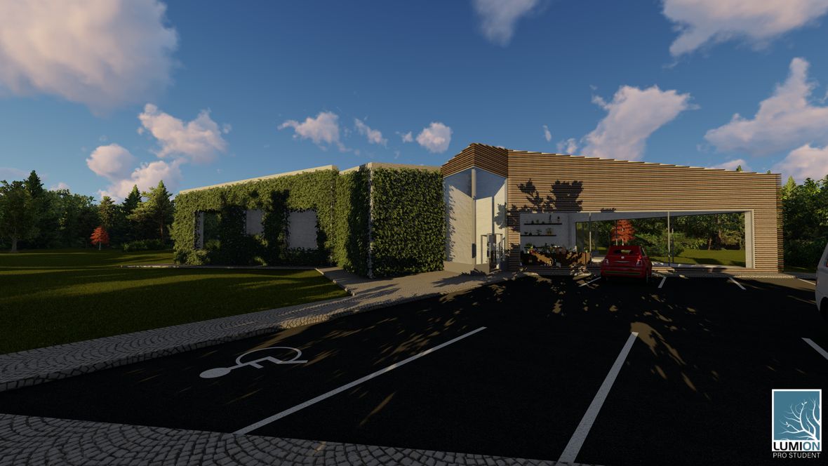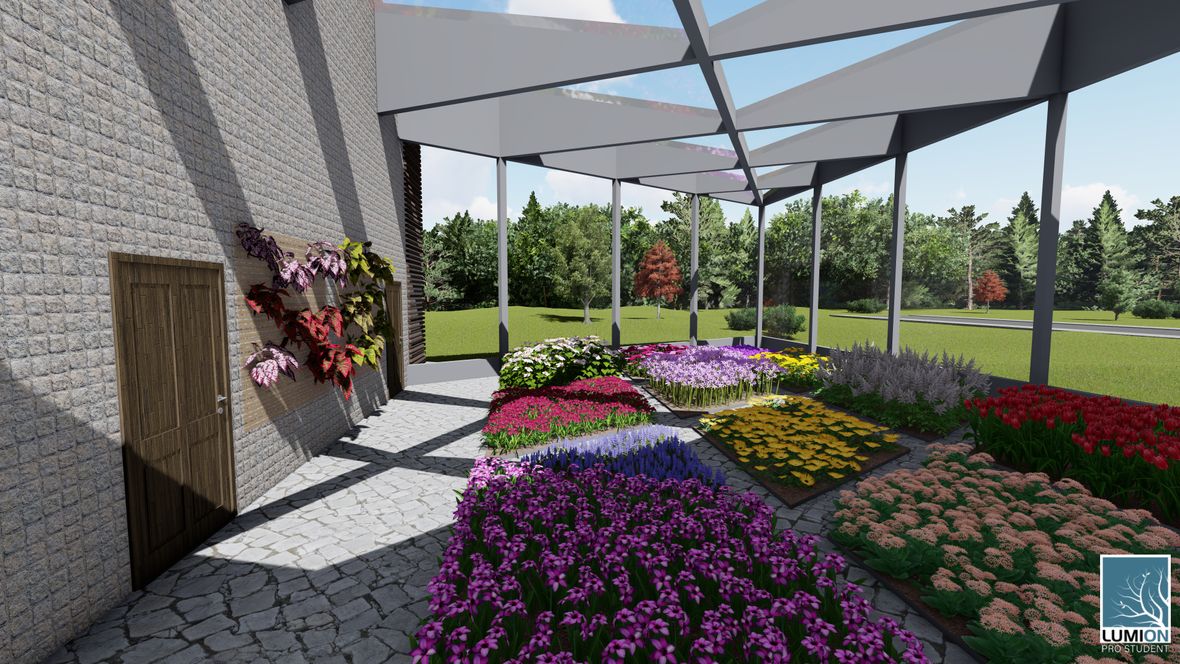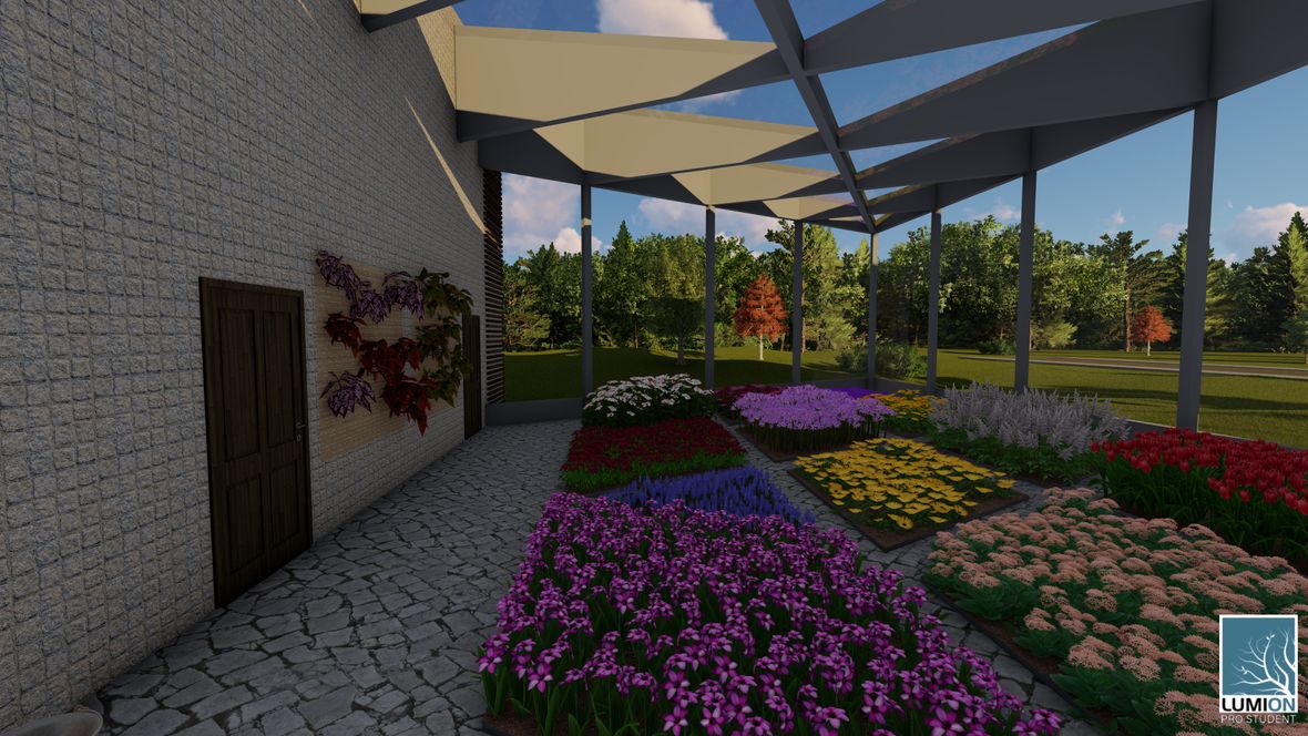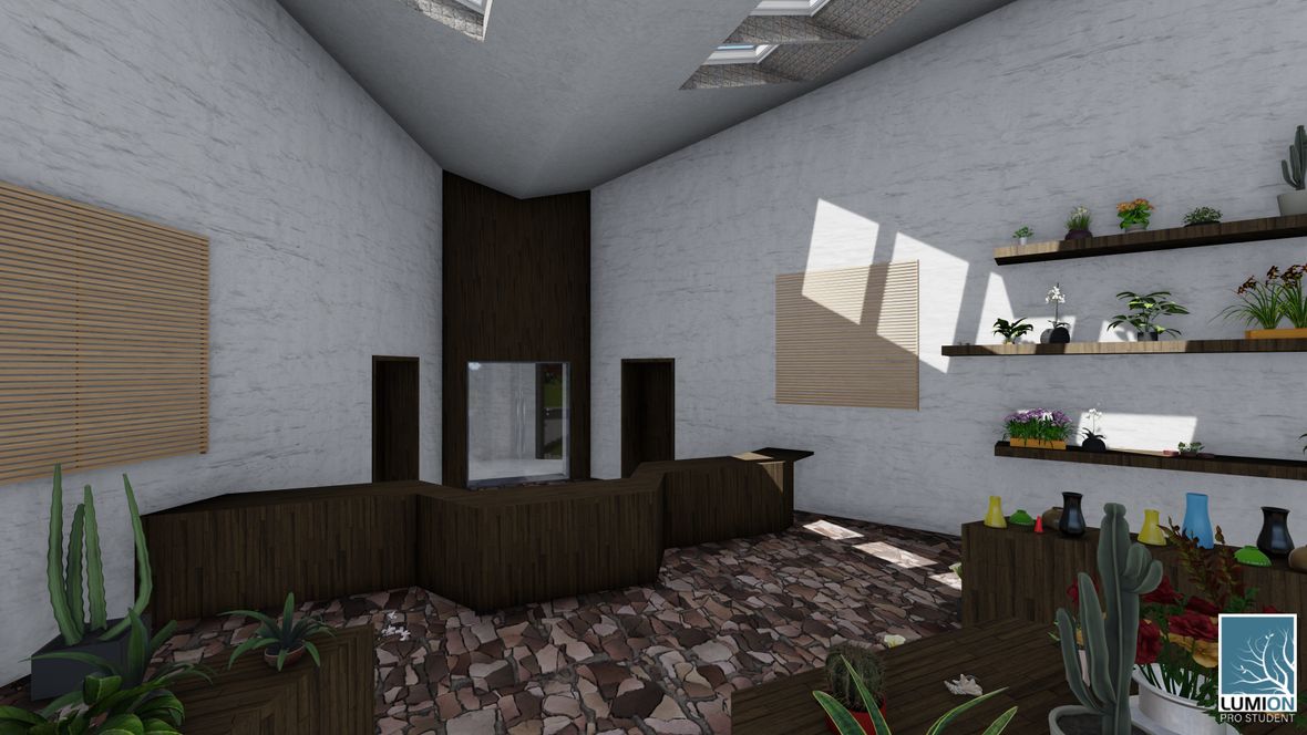Architektonické řešení: Mým cílem bylo navrhnout vzdušné květinářství, které by mělo připomínat rozevírající se lotosový květ a dispozice by měla překvapit atypickým tvarem místností, do kterých by mělo proudit velké množství světla. Technické řešení: Díky svému specifickému tvaru střech má objekt speciální vlastnost, kterou je svod dešťové vody do samotného středu objektu, kde je voda uchována v nádrži a připravena k následnému zužitkování v podobě vody pro květiny nejen pěstované ve skleníku.