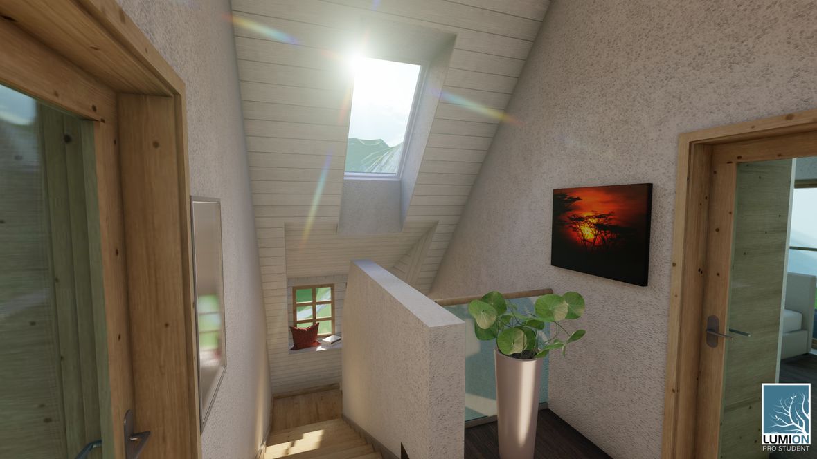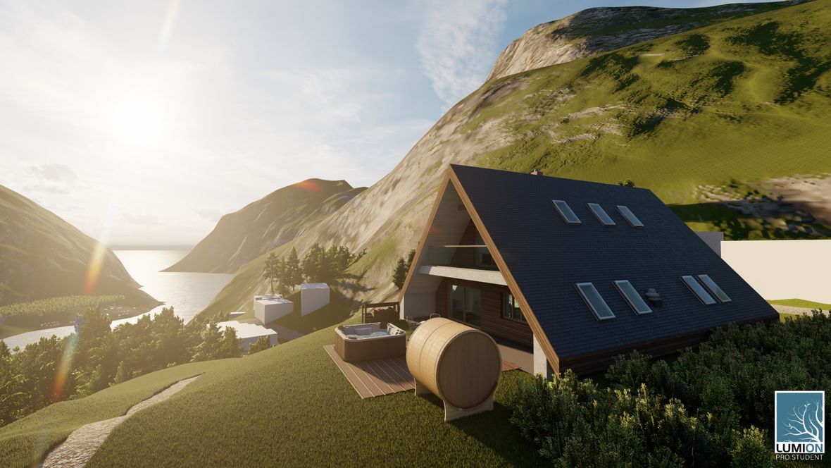 Myšlenkou a účelem tohoto domu, bylo co největší prosvětlení slunečním svitem a to kvůli střeše, která vede od východu k západu a díky, které je dům po celý den prosvětlen. Pohodlí a dobrá nálada díky slunci je nedílnou součástí každého Rodinného domu. Využity jsou střešní okna, které samy o sobě dovedou slunce až přímo domů. Stavba je atypického tvaru situována na úpatí norského Fjordu. Slouží primárně jako místo k odpočinku a k chvíli pohody v okruhu nejbližších. Stavba je určená pro bydlení 2-4 členné rodiny. Dům je postaven dle typické severské architektury na pravoúhlém půdoryse (pozn. Zemljanka, Longhouse). Sklon střechy byl zvolen tak, aby bylo možno použít maximální počet oken VELUX pro maximální prosvětlení denních místností. Objekt je celodenně prosvětlen. Vnitřní prostory můžeme rozdělit na společenskou zónu v 1NP a na odpočinkovou v 2NP. Stavba je primárně vybavena plynovým kotlem, ale pro dosažení komfortu je také vybavena krbem na tuhá paliva, který lze využít i jako hlavní zdroj tepla. Objekt je napojen na venkovní odpočinkovou zónu vybavenou terasou s finskou saunou a vířivkou. Z obytných pokojů na 2NP je možnost přístupu na balkón s majestátným výhledem na norskou přírodu. Pozn. -v půdorysu jsou záměrně zakresleny všechna střešní okna (lepší orientace v půdorysech) -FJORD-místo kde se dům nachází