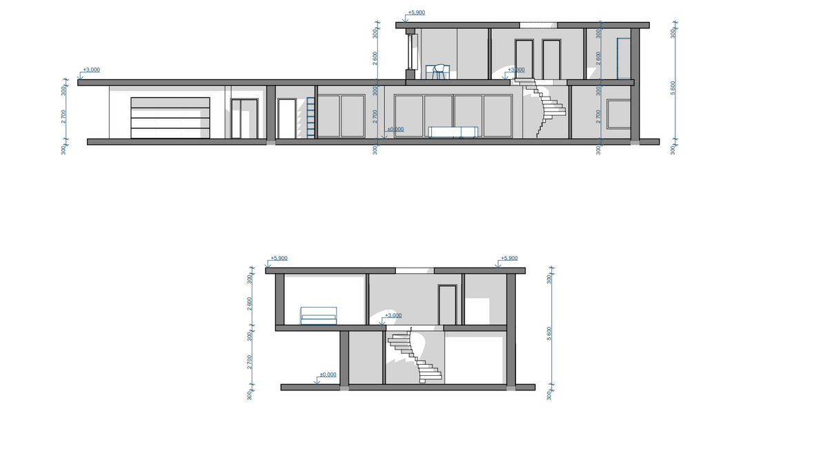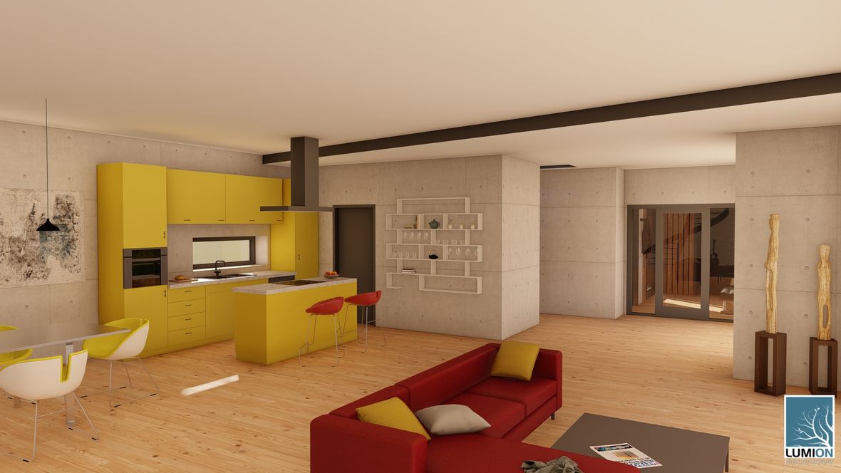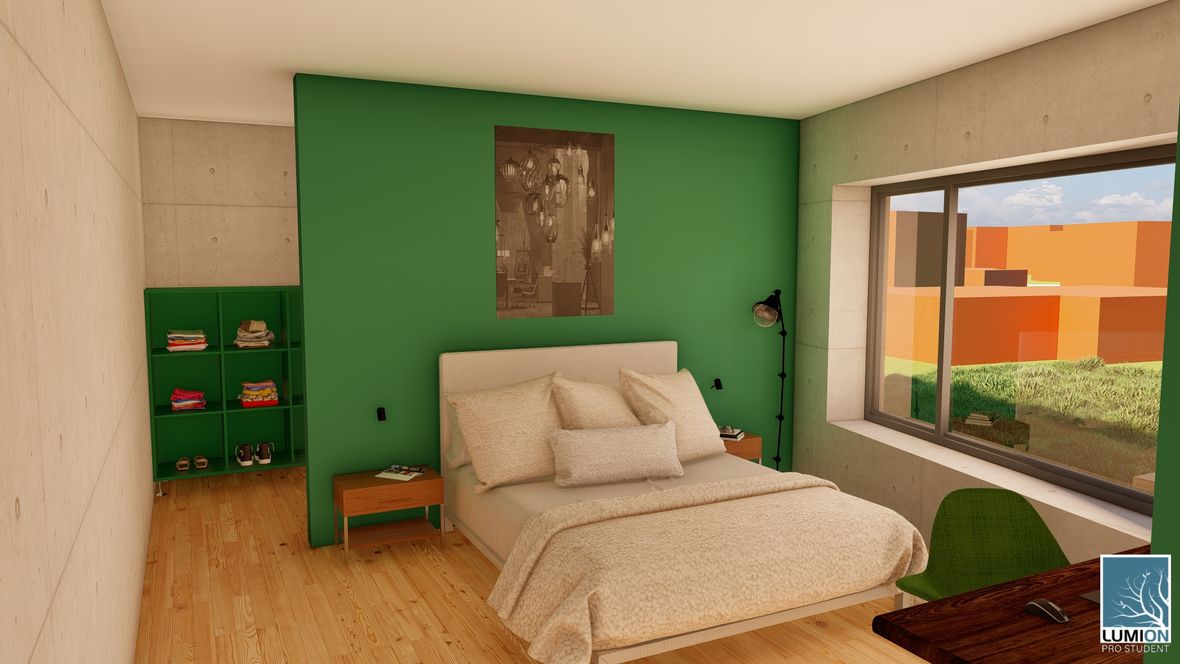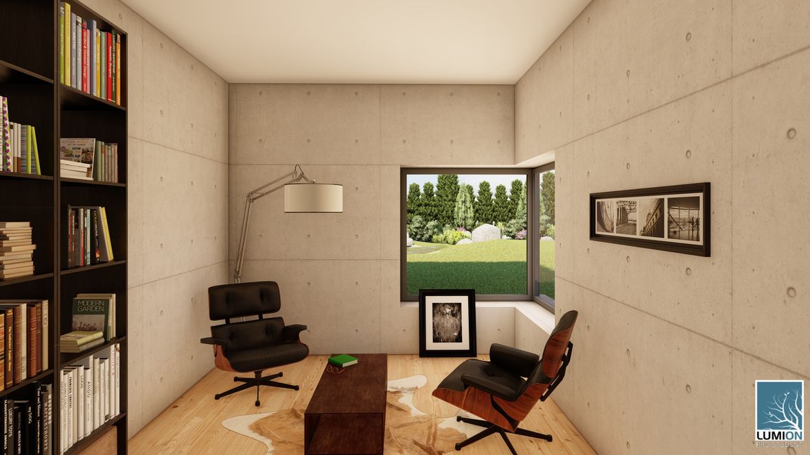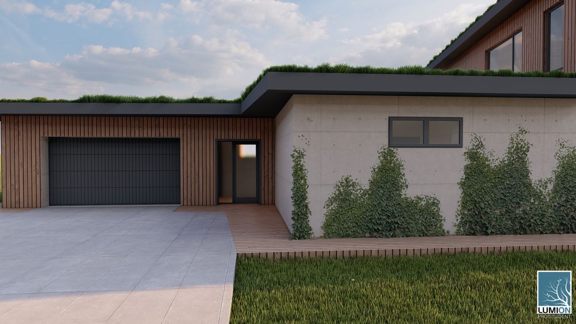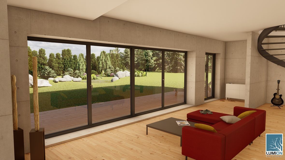 Rodinný dům se nachází na rohovém pozemku v klidné čtvrti na okraji města. Stavba je navržena pro manželský pár se dvěma dětmi, kdy se jeden z partnerů živí jako psychoterapeut a klienti chodí do jeho domácí ordinace, druhý z partnerů pracuje mimo domov. Dům je rozdělen celkem na tři části. První část se nachází v 1.NP, zahrnuje vstup do domu a frekventovanější místnosti (kuchyň, obývací pokoj, jídelna, toaleta, koupelna). Druhá část se nachází také v 1.NP, ale je navržen jako samostatně fungující jednotka s vlastním vstupem určená pro ordinaci jednoho z partnerů, od části obytné ji odděluje schodišťový prostor. Třetí část se nachází ve 2.NP, tato část by měla být klidová, jsou v ní navrženy dětské pokoje, ložnice, šatna a koupelna. Celý dům hodně pracuje se slunečním světlem, je navržen tak, aby obytná část pojímala velké procento slunečního svitu z jihu, a část klidová byla od jižního slunce spíše odstíněna a nedocházelo tak k velkému přehřívání klidových místností. Klidová část je naopak situována na východ kvůli příjemnému oslunění v ranních hodinách. Část pracovní je spíše neutrální a dostává se jí světla jak z jihu, tak ale také ze západu. Dominantním světelným prvkem v domě je využití světlíků. V domě jsou použity celkem tři, a to k prosvětlení malé chodby mezi koupelnou, WC a šatnou v 1.NP, dále v šatně ve 2.NP a poslední nad točitým schodištěm, které přináší světlo do obou nadzemních podlaží a tvoří dominantní světelný prvek interiéru, ale také hranici mezi pracovní a obytnou plochou domu.