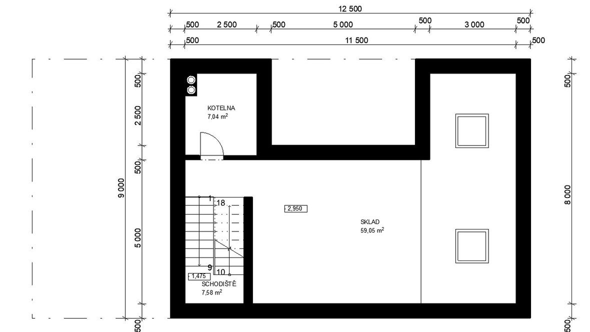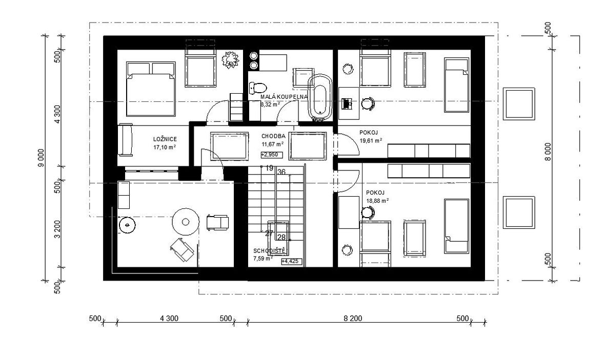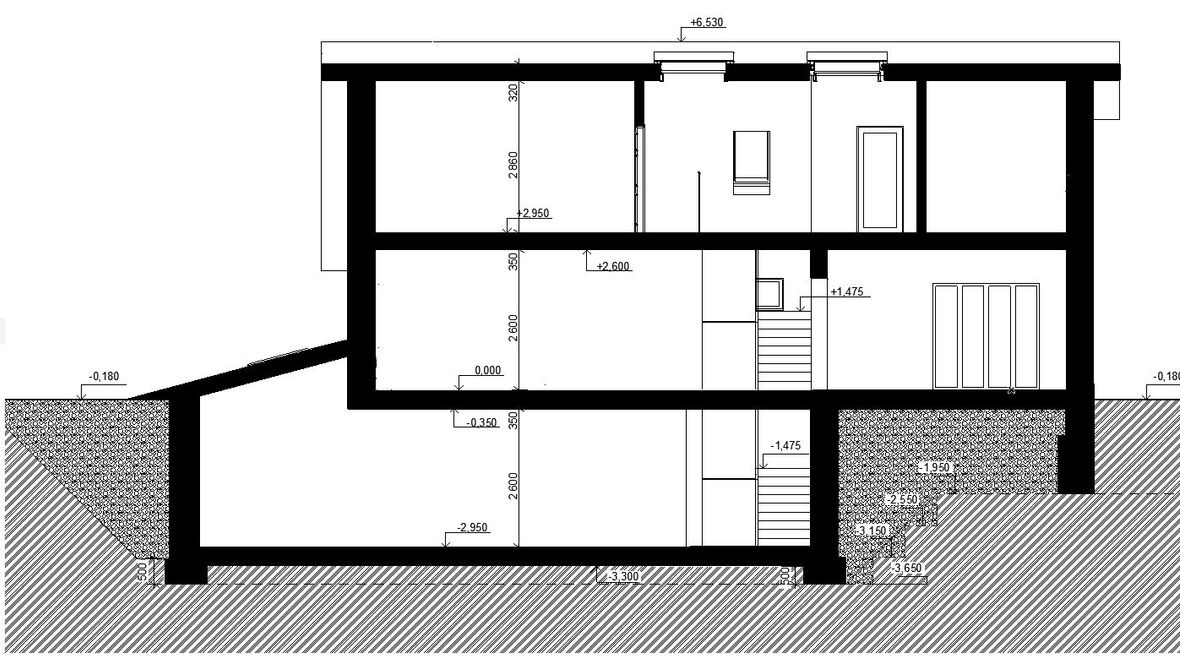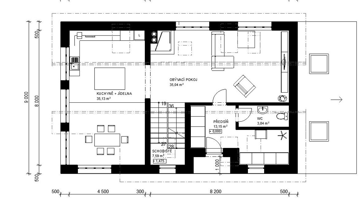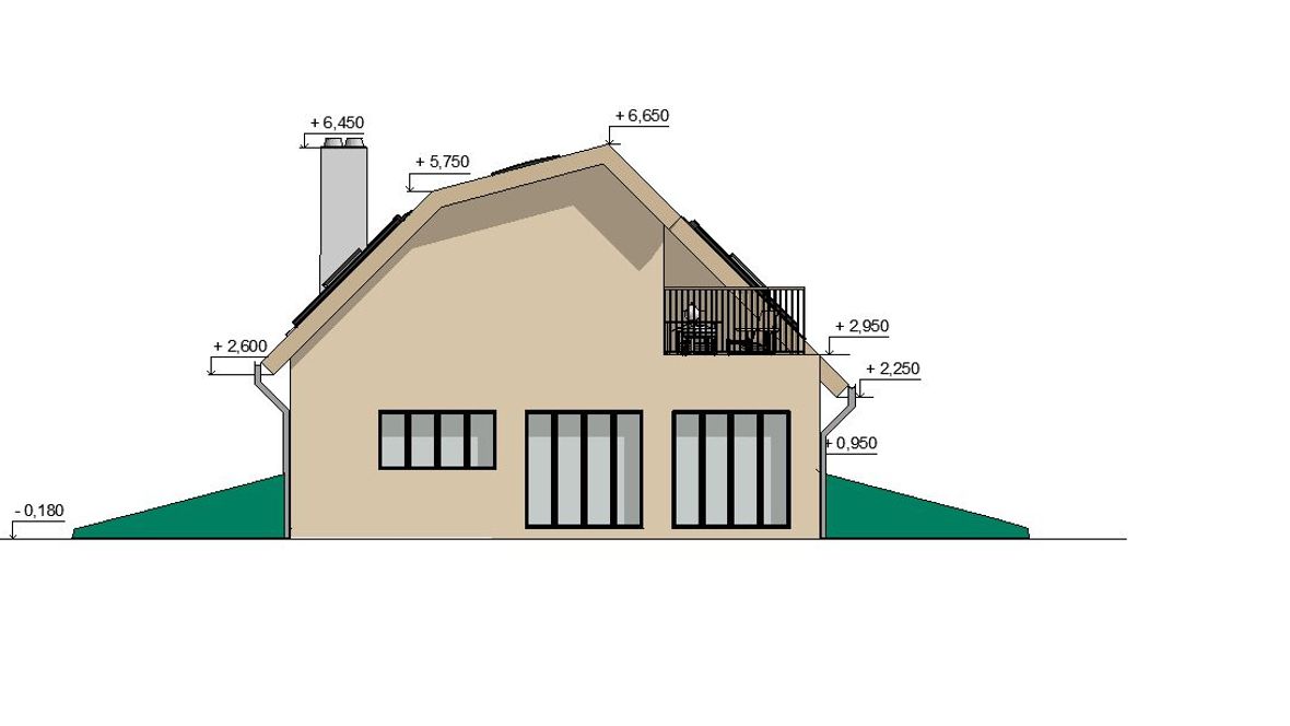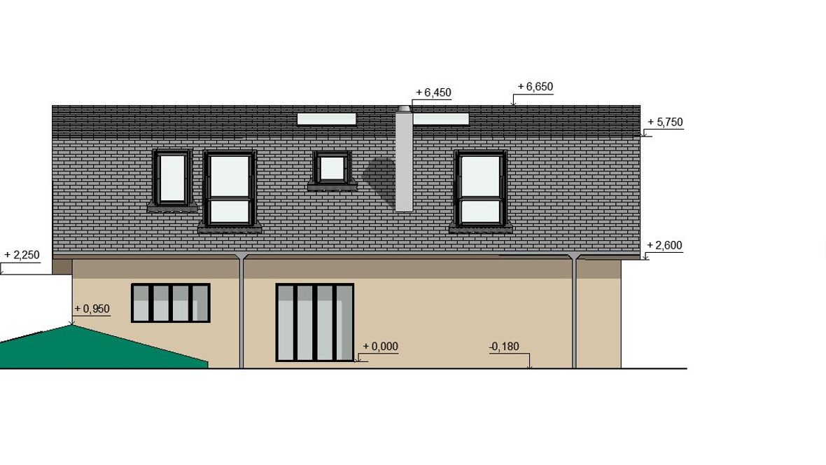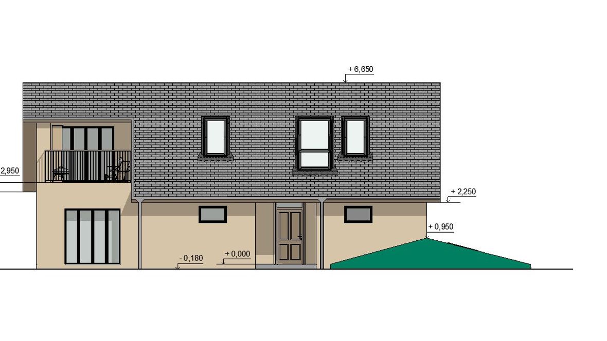 Návrh domu je minimalistický a praktický. Pro optimální světlost místností v podkroví je použito oken Velux. Dům je umístěn v rovném terénu a má jednoduchý obdélníkový tvar. Je částečně podsklepený, část podsklepení je umístěno mimo půdorys 1.NP. K prosvětlení 1.S je využito oken Velux.