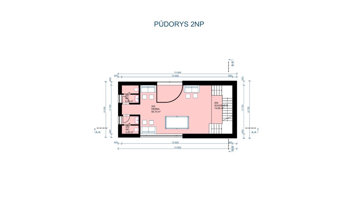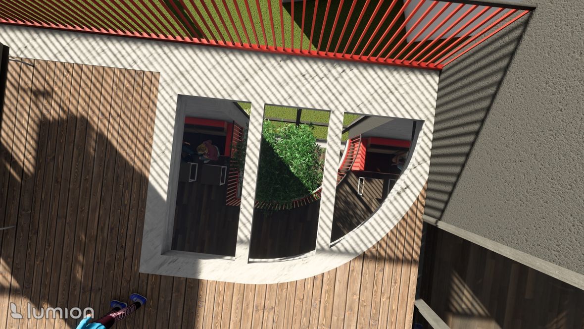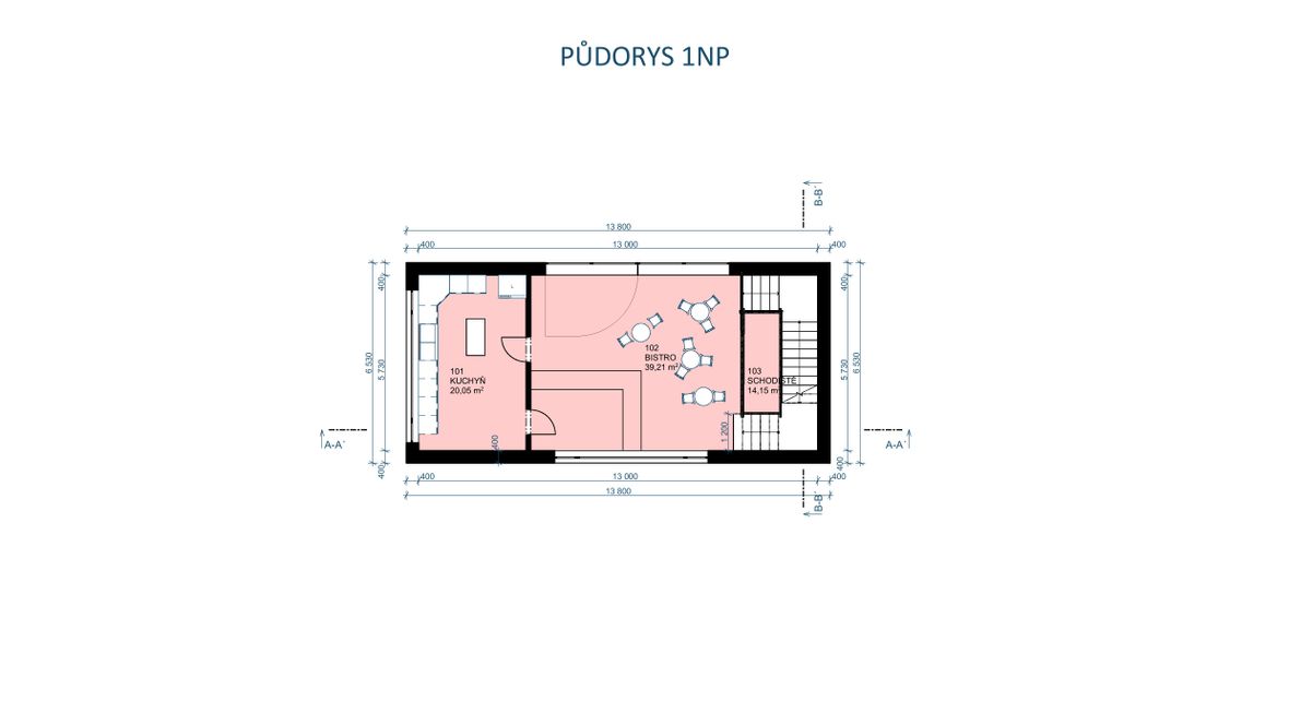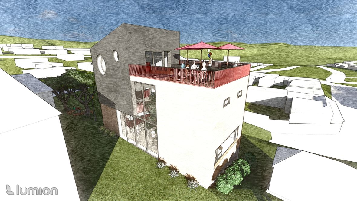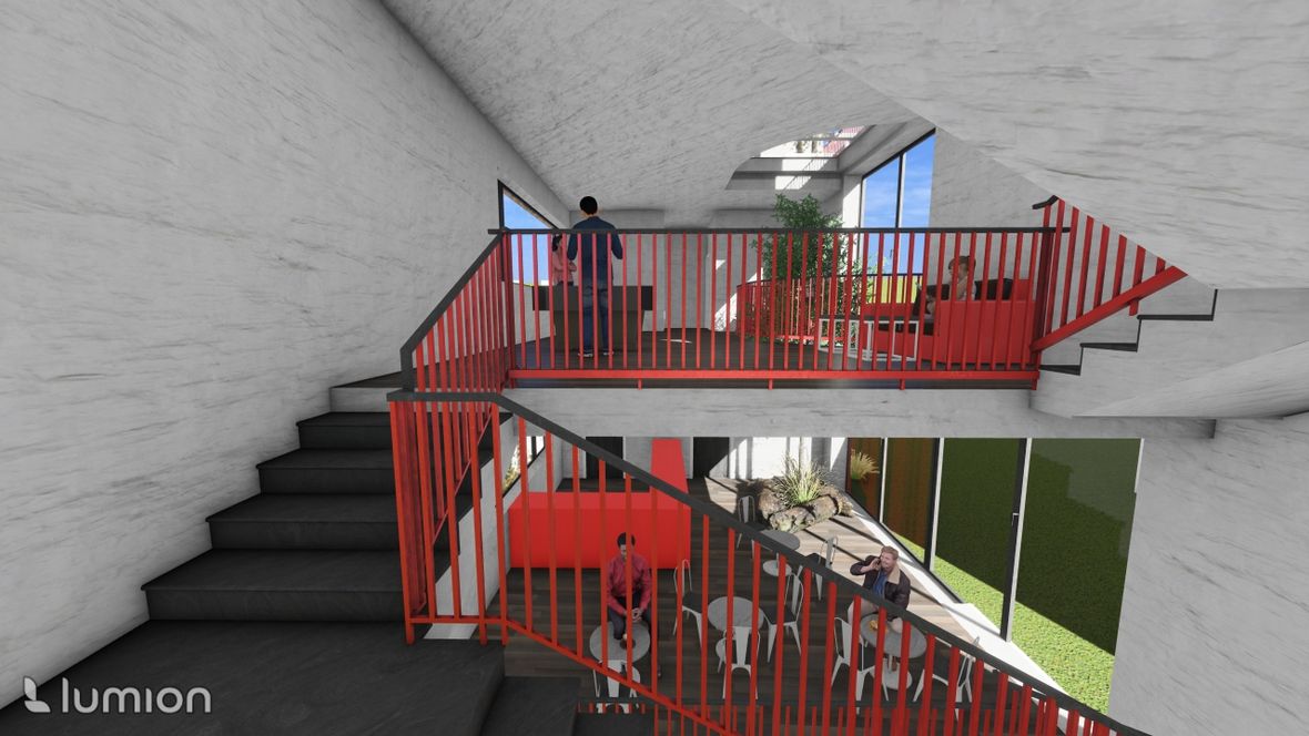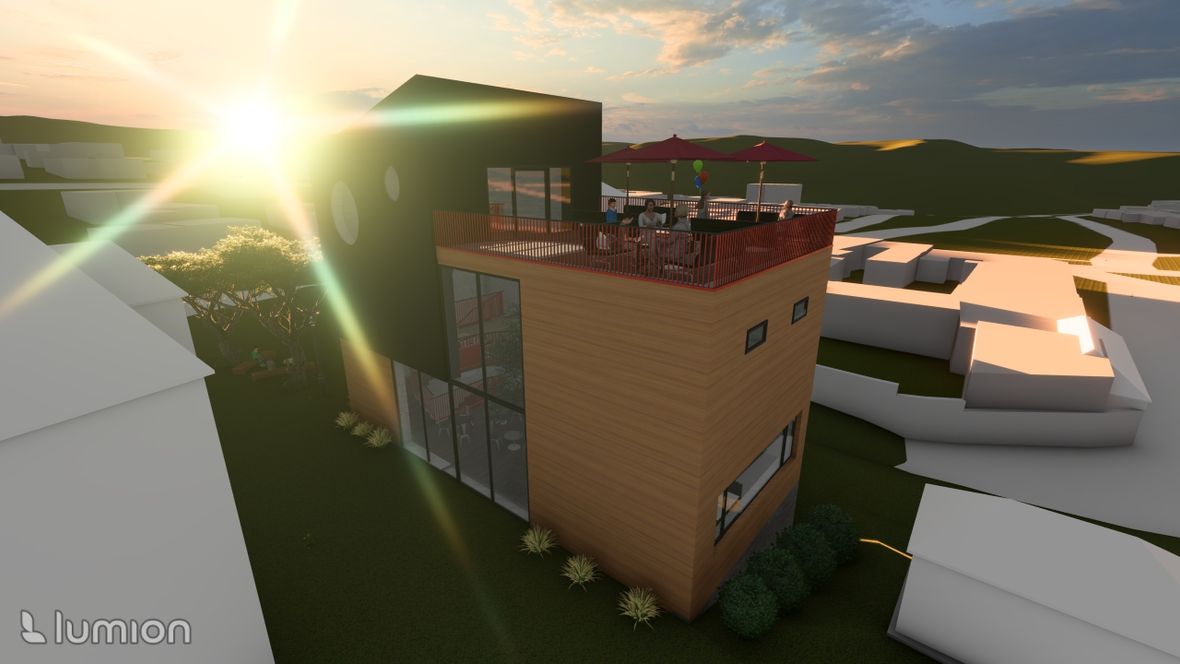 Jedná se o bistro s hernou. Nachází se v Náměšti nad Oslavou, kde nahrazuje už stávající stavbu. V okolí stavby se nachází obchodní dům, hospoda, posilovna a restaurace. Moje myšlenka byla vytvořit místo, kde se bude dát najíst, posedět s přáteli a zahrát si např.: kulečník, šipky, atd. Proto hlavní místností v prvním patře je jídelna, ve druhém patře herna a ve třetím patře terasa. Zároveň jsem chtěla tyto odlišné patra propojit, a proto se v objektu nachází strom, který prochází dvěma patry a z terasy jde vidět díky světlíku.