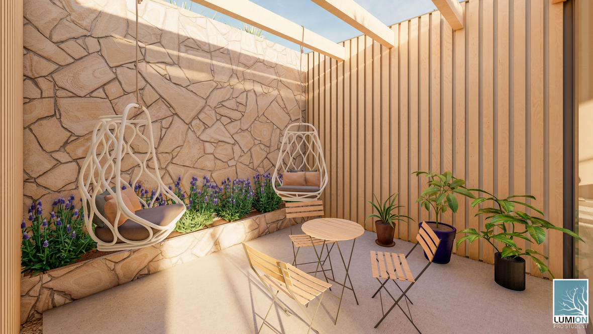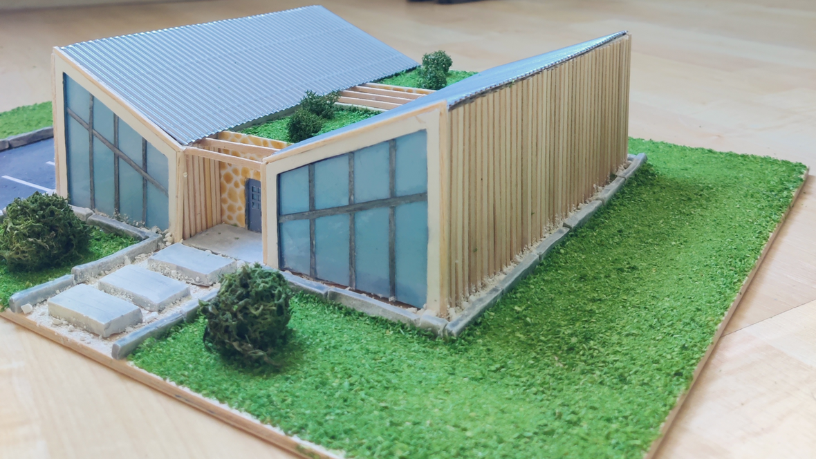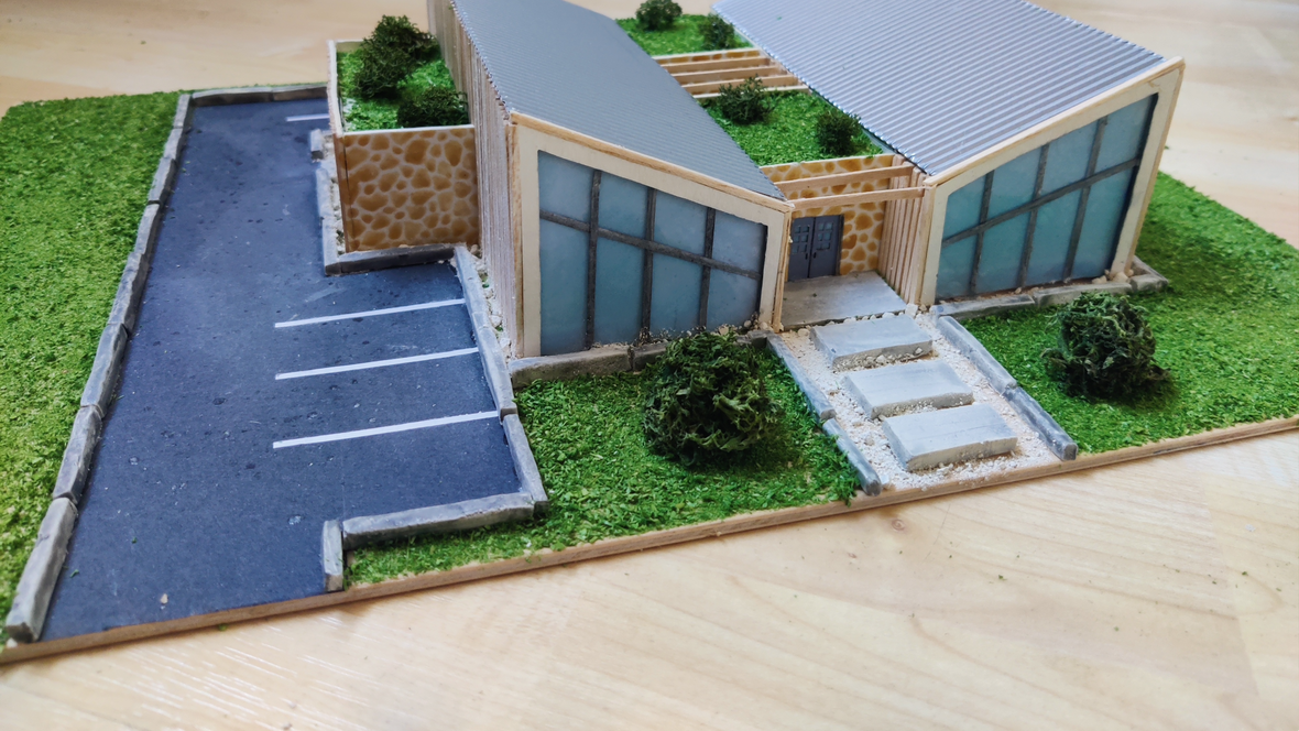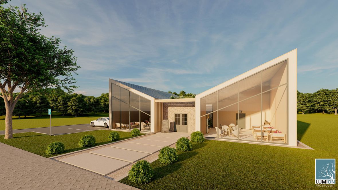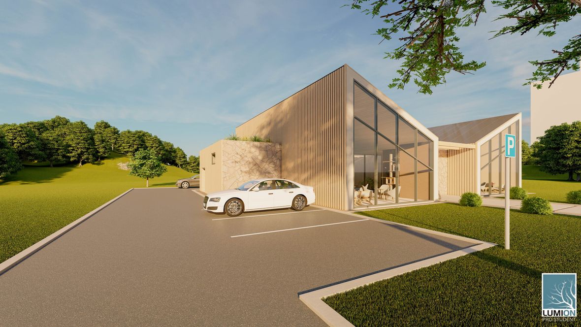 Hlavní myšlenkou mého projektu bylo vytvořit příjemné, prosvětlené a bezbariérové prostředí kavárny sloužící pro odpočinek ve společnosti koček. V centru budovy se nachází malé atrium pro posezení na čerstvém vzduchu a zároveň větší přísun přirozeného světla do prostor kavárny. Prosklené plochy jsou stíněny venkovními roletami. Dva světlovody VELUX (TCR 0K14 0010 350 mm pro ploché střechy) přivádí denní světlo do chodby pro zaměstnance, tvoří tak úspornou a praktickou formu osvětlení frekventované zóny objektu. Součástí projektu je fyzický model 1:100.