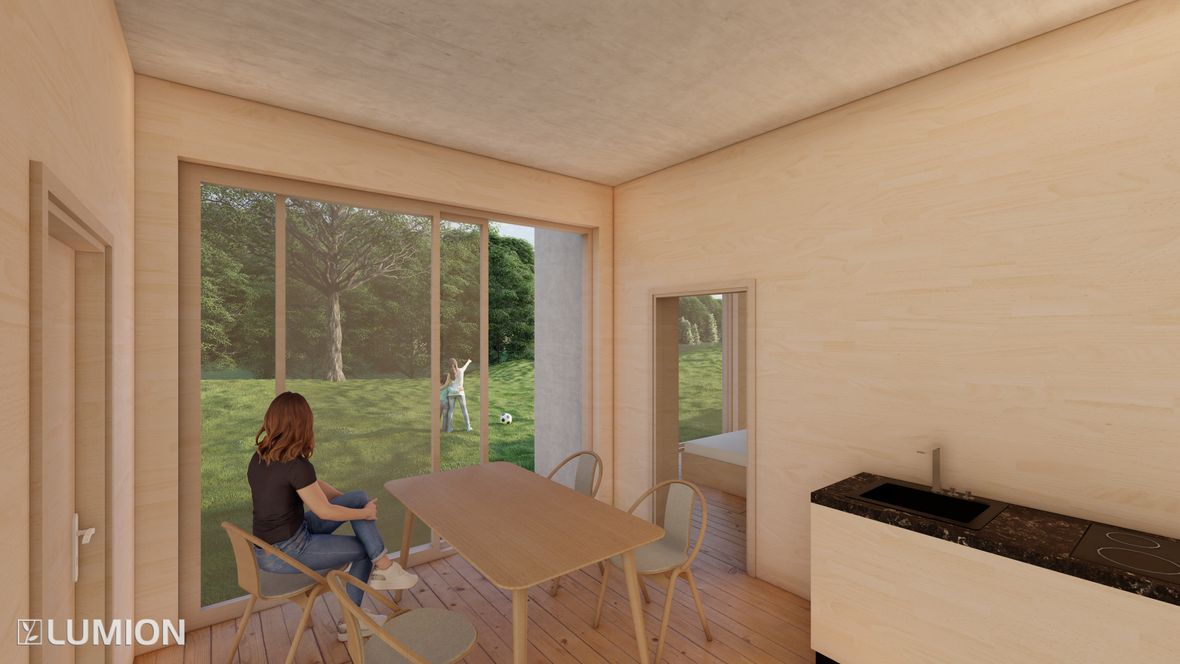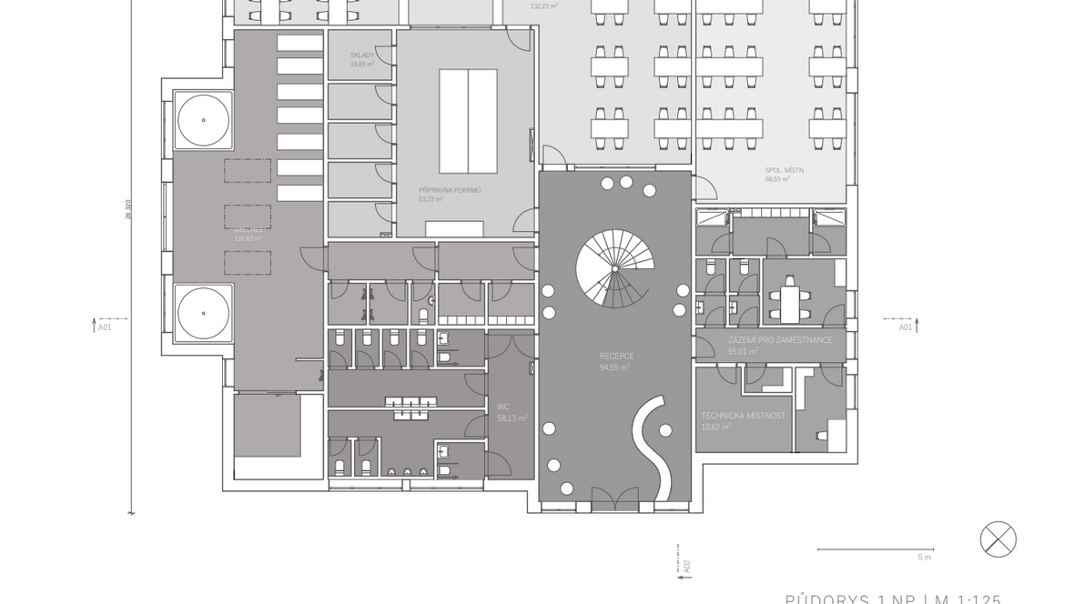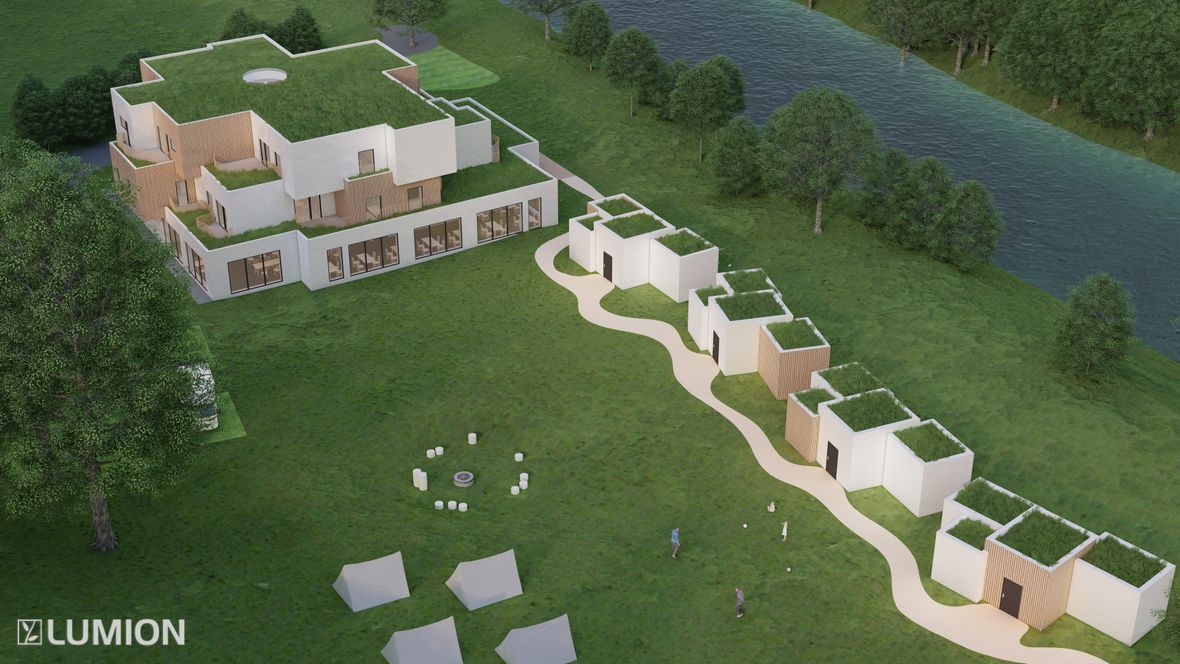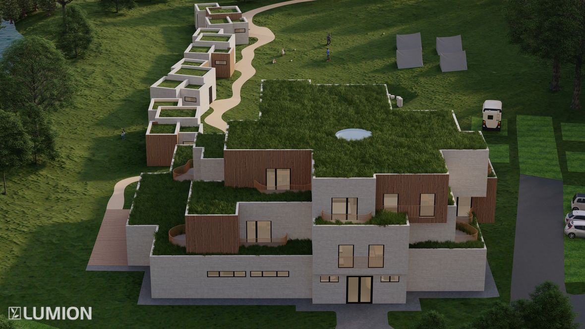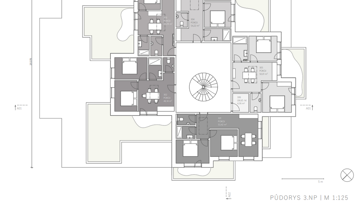 Koncept Budova rekreačního střediska Stvořidla vznikala postupným rozdělováním výchozí jednolité kvádrové hmoty. Z té byla nejprve vyčleněna a následně dotvarována tři podlaží, čímž budova dosáhla své organické podoby. Podlahová plocha jednotlivých podlaží se směrem od přízemí nahoru zmenšuje. Středobodem celé stavby propojujícím všechna podlaží je točité schodiště prosvětlené přirozeným světlem vstupujícím do prostoru střešním kruhovým světlíkem. Každé podlaží je konceptuálně navrženo tak, aby byl každý funkční prostor přístupný ze samotného jádra budovy tvořeného centrálním točitým schodištěm. I přesto, že má stavba navenek velmi členitý a strukturovaný vzhled, působí interiéry jednoduchým a praktickým dojmem. Prostor vzniklý strukturováním jednotlivých podlaží navíc umožnil vytvoření teras, jež jsou rozdělené organicky tvarovaným zábradlím na využitelnou rekreační část a zatravněnou plochu zpříjemňující okolní prostředí. První podlaží slouží jako společné zázemí pro hosty střediska. Nachází se zde restaurace, společenská místnost či wellness centrum. Zbylá dvě podlaží pak tvoří obytný prostor s jednotlivými pokoji. Použité světlíky: CFU, CVU, ISU 2093 - prosvětlují velkou část wellness a třetího podlaží kruhový světlík - prosvětluje točité schodiště