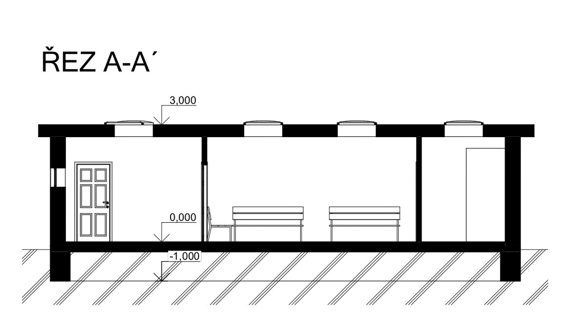 Stanice je řešená jako jednopodlažní budova jednoduchého obdélníkového tvaru. Pohledové hrany zdiva jsou řešeny pomocí imitace cihel PP. Při vstupu do objektu se po pravé straně nachází toalety a po levé pokladna napojená na zázemí pro zaměstnance které disponuje vlastním vstupem. Díky střešním oknům velux je celá čekárna příjemně prosvětlena denním světlem po celý den. Konstrukce z cihelných bloků šířky 380mm. Střecha je provedená z monolitického betonu.