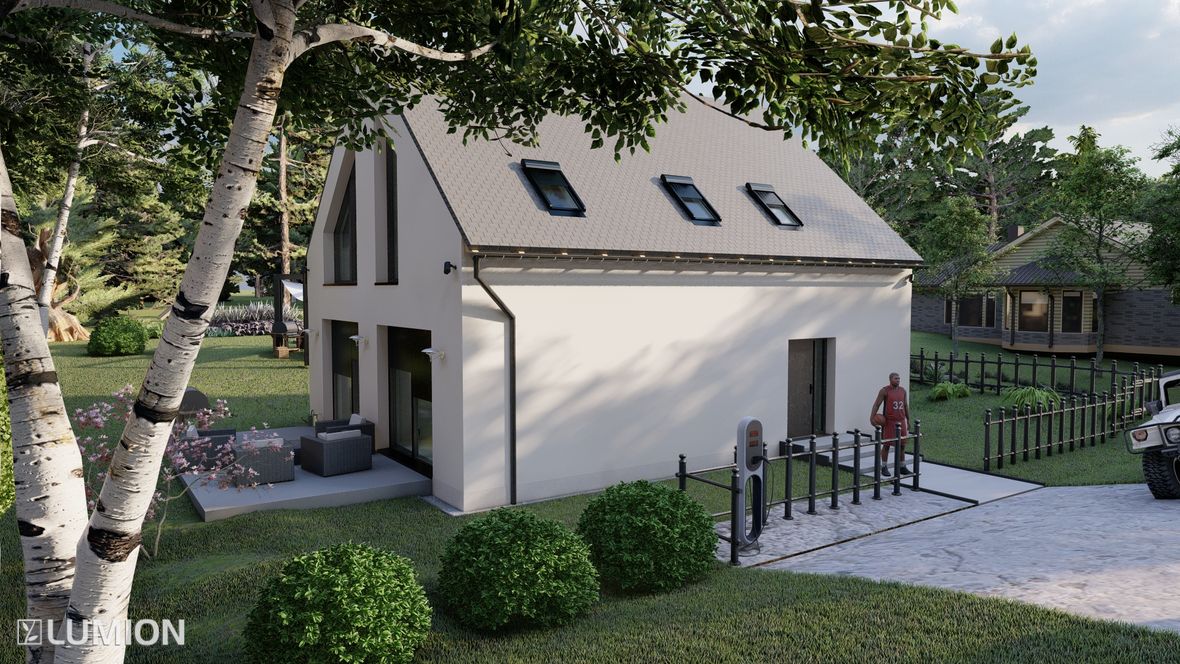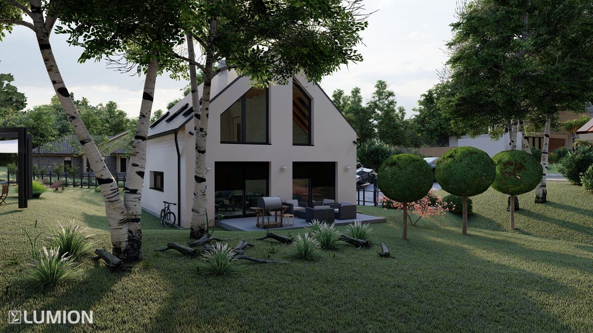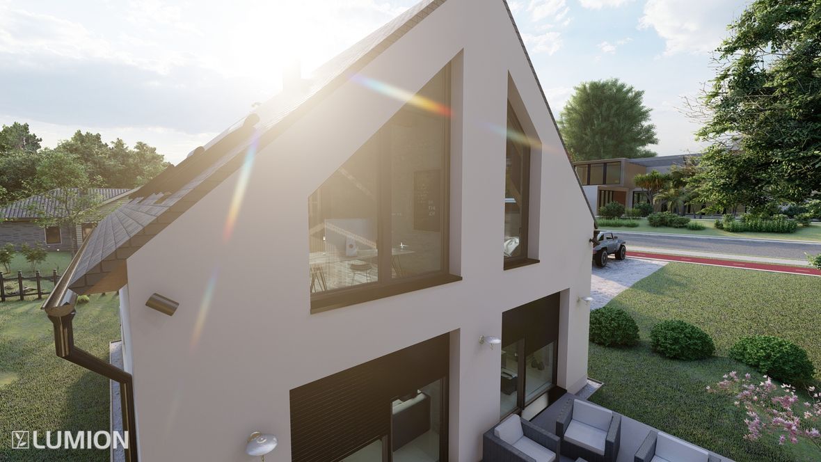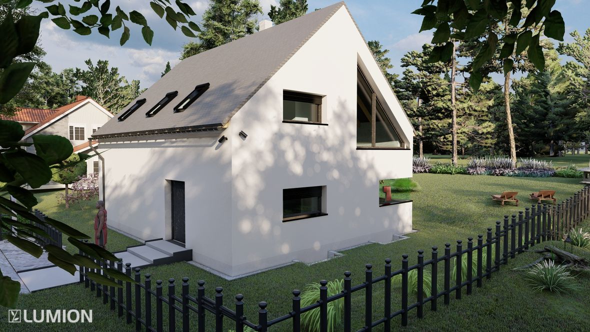 Sedlový rodinný dům v očích 21. století. Dům zachovává klasický tvar, který svými čistými liniemi působí moderně, přičemž na sebe nepoutá přílišnou pozornost. Na této stavbě se klade především důraz na dostatek přirozeného světla díky velkému počtu moderních oken. Dominantou domu se tak stávají okna, která lemují i štíty. Dům je energeticky nenáročný vzhledem k venkovní tepelné izolaci, okny s trojskly a tepel. čerpadlu. Interiér domu odráží velmi moderní minimalistický styl, který se nese celým hlavní obytným prostorem. Kombinace vnitřních omítek ve stejném tónu s podlahou působí s ostatními dřevěnými prvky útulně. Přízemí je propojené v jeden celek, ve kterém se nachází obývací prostor, kuchyně s jídelnou, pracovna, vstupní hala a toaleta. Schodiště do sklepa i do podkroví navrhl architekt z masivního dřeva. Dům je částečně podsklepený, a tak nabízí spousty úložného prostoru vč. místa pro hobby či posilovnu. V horním patře se nacházejí tři pokoje, přičemž hlavní ložnice, situovaná na východní stranu, nabízí díky svému velkému oknu, krásný pohled na vycházející slunce. Koupelna se nachází vedle hlavní ložnice a je prostorná. Na dům volně navazuje terasa s krásnou zahradou.
