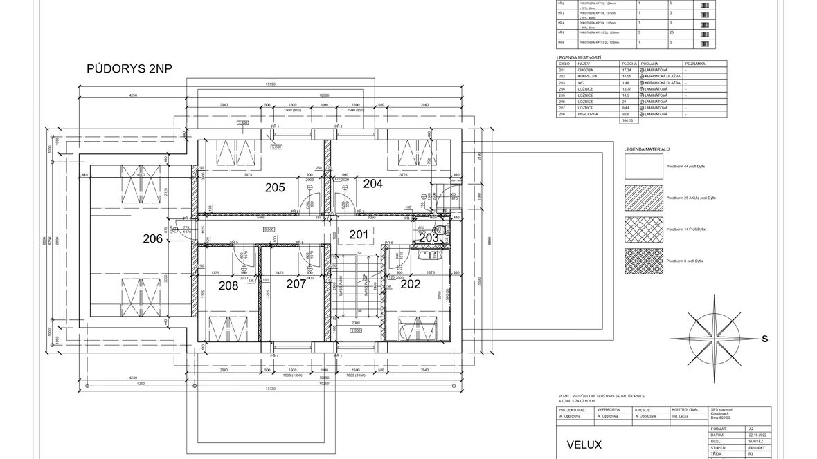 Jedná se o velký rodinný dům s šesti ložnicemi a velkým obývacím pokojem. V podkroví se nachází 12 střešních oken VELUX, 8 menších dálkově ovládaných GGL/GGU a 4 řady CABRIO v hlavní ložnici.