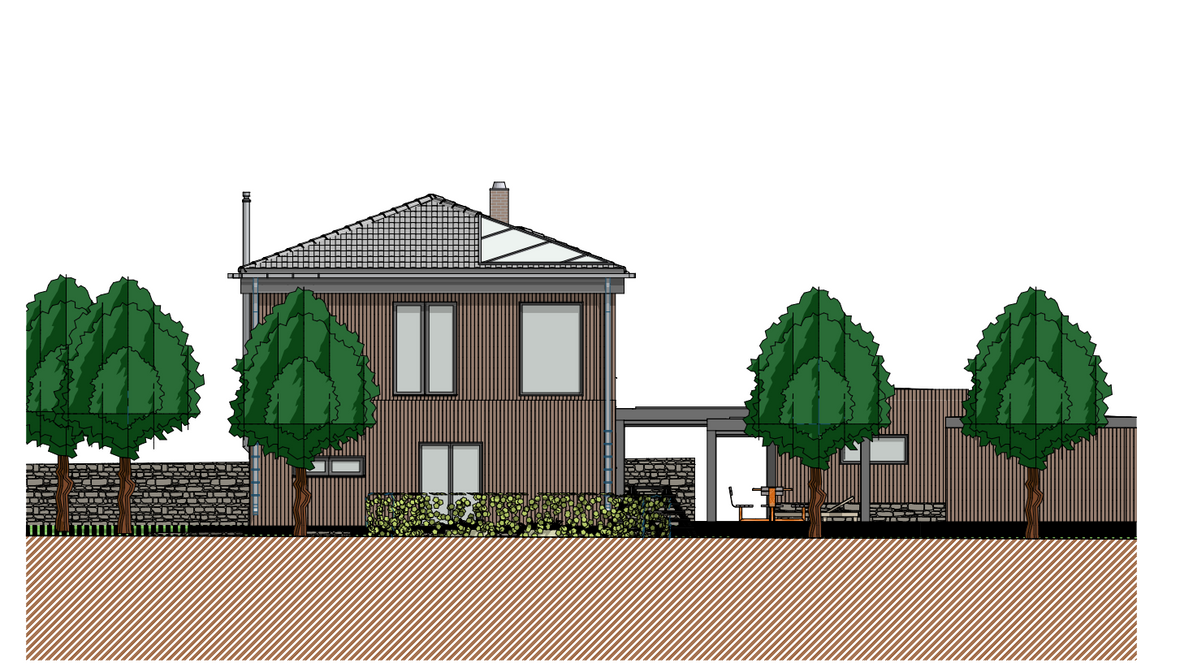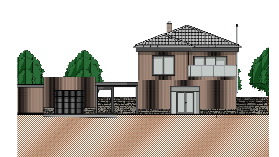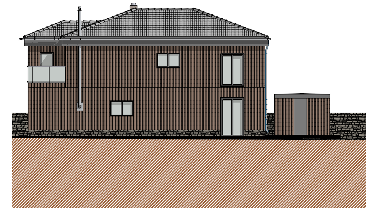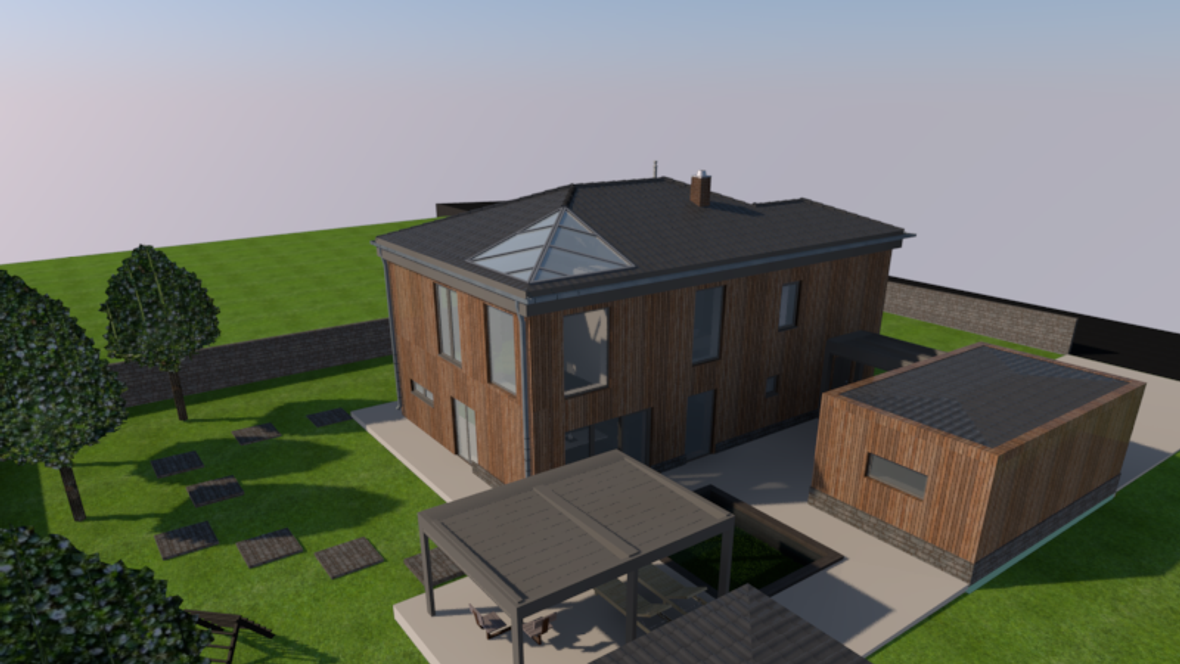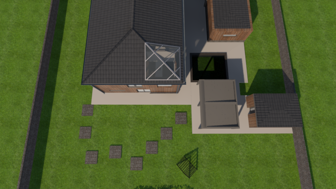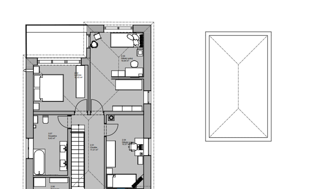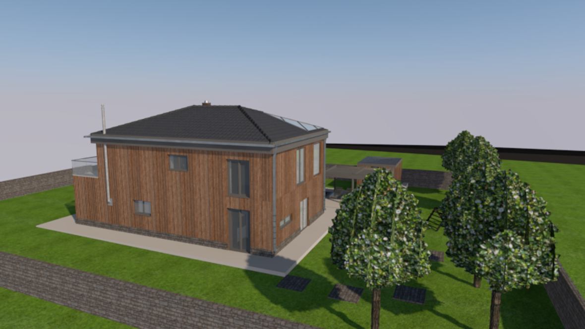 Můj rodinný dům je navržen pro 4-člennou rodinu. Jeho dominantou je jeho zajímavý vzhled. Dům bude pobyt dřevěnými palubkami, je hodně prosvětlený a na střeše se nachází zajímavý prvek a tím je světlovod od firmy Velux. Všechna okna co jsou v domě obsažena jsou výrobky od firmy Velux. Interiér je laděn do skandinávského stylu a vyskytuje se zde převážně černá, bílá a šedá barva. Co se týká vstupu do zádveří domu, tak interiér je navržen tak, aby dům působil otevřeně a prosvětleně.