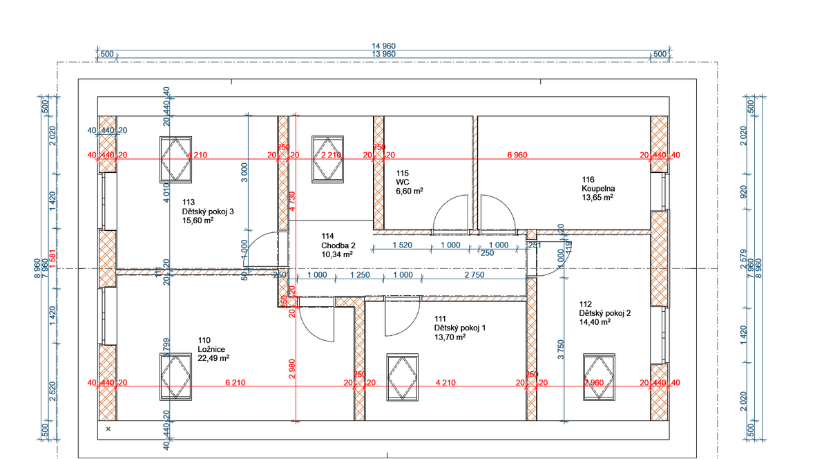 Mým záměrem bylo navrhnout rodinný dům pro 4 osoby, který leží na pozemku 659/70 v Havlíčkově Brodě. Vybral jsem si dvoupodlažní dům se sedlovou střechou, na kterou jsem umístil střešní okna, které mi pomůžou prosvítit druhé nadpraží. Z exteriéru je na domě bílá omítka a kolem oken kamenný obklad. V interiéru je ve většině místností také bílá omítka, která dobře odráží světlo.