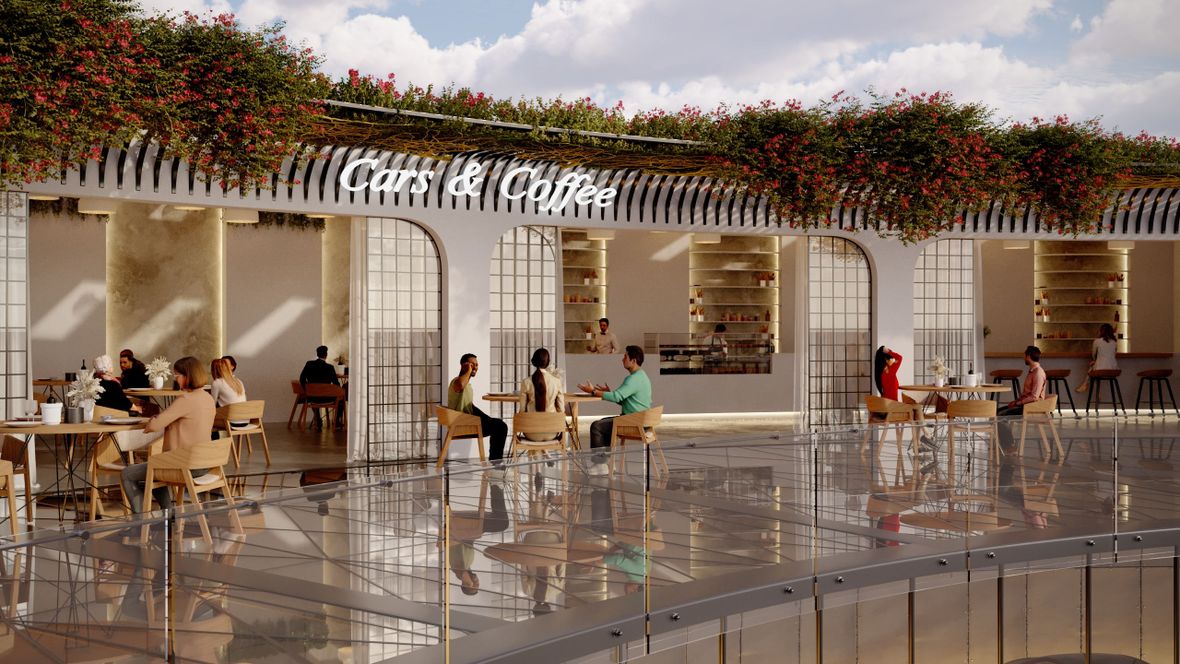 Cars & Coffee je moderní kavárna s výstavou rychlých a luxusních aut. Prostory mohou být použity třeba ke konání prodejní nebo kulturní akce. V přízemi se nachází výstava aut, která má čelní stranu zhotovenou z francouzských otevíratelných oken od podlahy až ke stropu, pro pohodlné parkování do výstavy. V prvním patře se nachází hlavní prostor pro kavárnu s výhledem na centrum města. Terasa pro kavárnu má podlahu z pochozího skla tak, aby byl dobrý výhled na výstavu aut. Design byl zamýšlen do světlých barev s prostupem denního světla. V projektu se nachází 46 střešních oken Velux GLL.