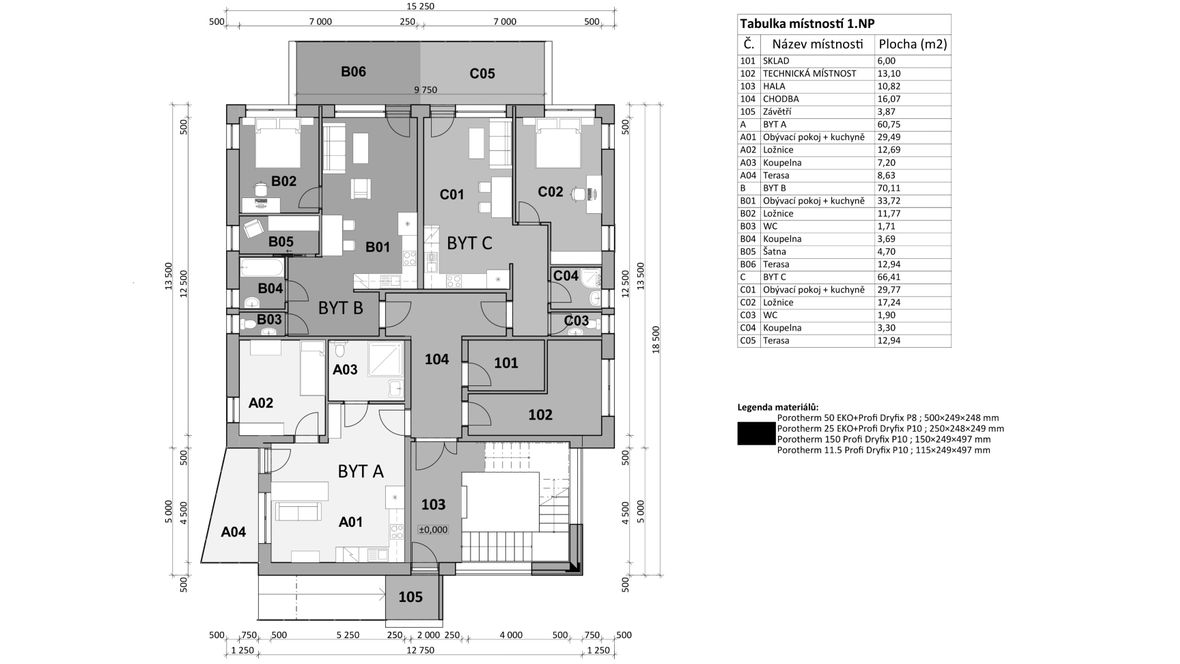VIA (lat. cesta/postup) Hlavní myšlenkou projektu je vytvoření komunitního bydlení pro všechny věkové kategorie, aby se na své životní cestě mohli doprovázet. Domov VIA disponuje 8 byty, které mohou nabídnout startovací bydlení pro mladé rodiny i místo pro klidné stáří. Jeden z bytů je bezbariérový a dva byty jsou prostřednictvím terasy propojené s navazující zahradou. Součástí domu jsou místnosti pro společné aktivity obyvatel domu, jako např. promítací nebo společenská místnost. Dům má 3 nadzemní podlaží, je navržen jako stěnový konstrukční systém, zastřešený plochou střechou, s maximálním využitím prvků Porotherm. Velký důraz byl kladen na dostatek denního světla, který zajišťují střešní světlíky VELUX s plochým sklem a velká okna spolu s prosklenou fasádou. Dům je plně bezbariérový. Výrazným prvkem fasády je zelená vegetační stěna a dřevěný obklad, které dodávají stavbě přírodní nádech. Objekt je navržen jako samostatně stojící, ale lze jej využít i v různých sestavách (podle prostorových podmínek), kdy jednotlivé domy propojí společné zahradní prvky či parková úprava. Pro více informací naskenujte QR kód v pravém horním rohu.