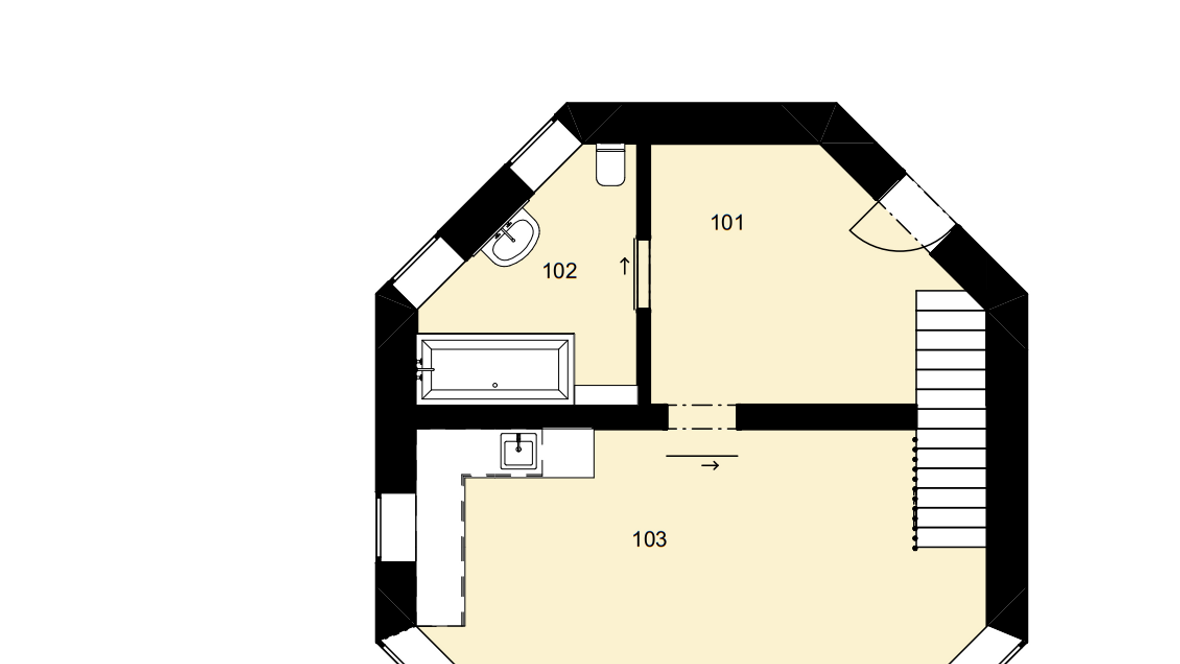 Lodge of peace neboli chata klidu zahrnuje základní potřeby co člověk potřebuje. Skládá se z společného prostoru a spacího prostoru nad ním. Nadále z koupelny spojené s WC a předsíní zahrnujícím úložným prostorem.