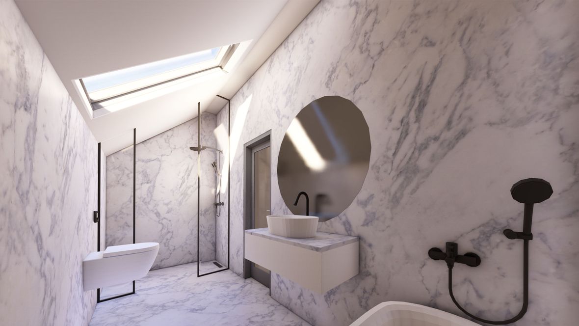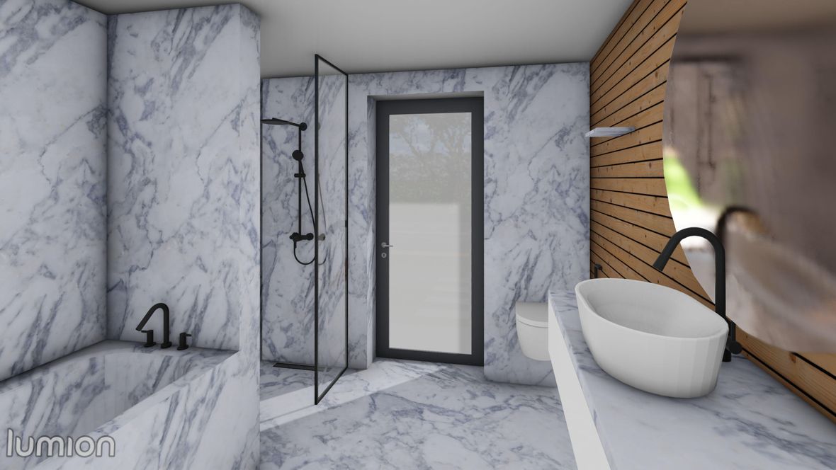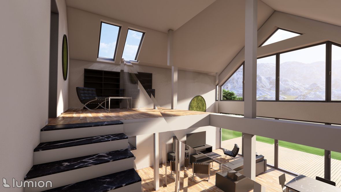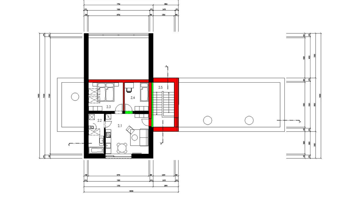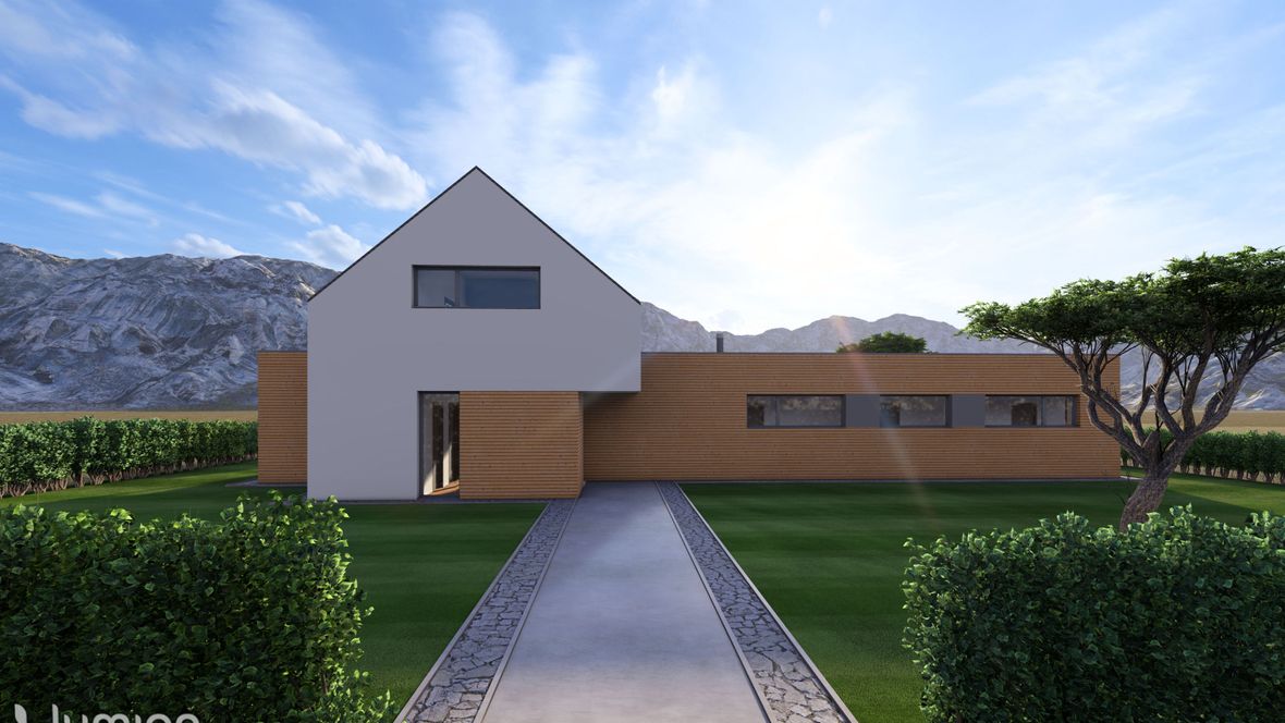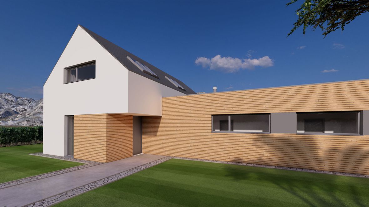 Novostavba rodinného domu a jeho rekonstrukce Novostavba rodinného domu se nachází v Brně městské části Soběšice. Objemově dům reaguje na stávající poměry a volnou zástavbu v území. V přízemí jsou pokoje a obytné části, v patře tzv. master bedroom. Rekonstrukce má sloužit jiné funkci a to kavárně s restaurací. Hlavní sál s barem se nachází v bývalé obývací části rodinného domu. Na podélnou chodbu jsou přimknuty sociální zázemí s provozními částmi. Patro umožňuje umístění samostatné jednotky, která může sloužit k ubytování apartmánového charakteru. Fasáda domu je řešena kombinací bílé omítky a dřeva.