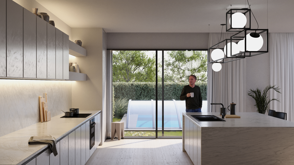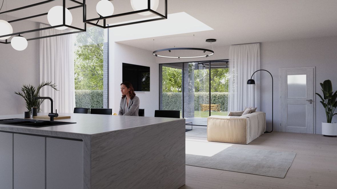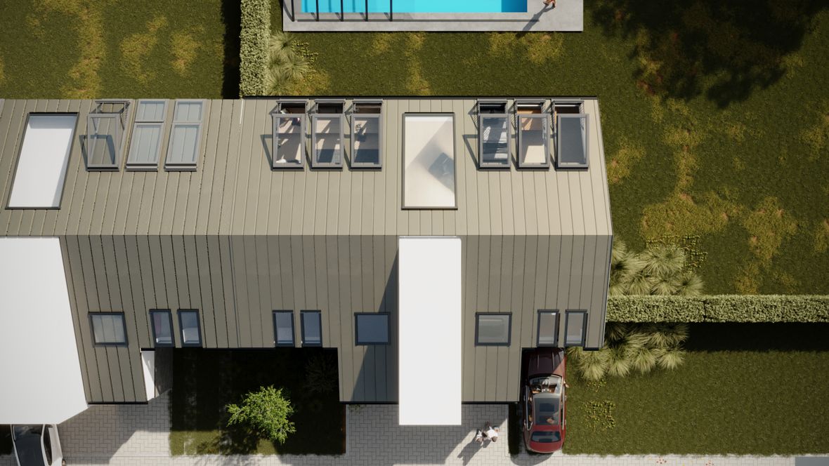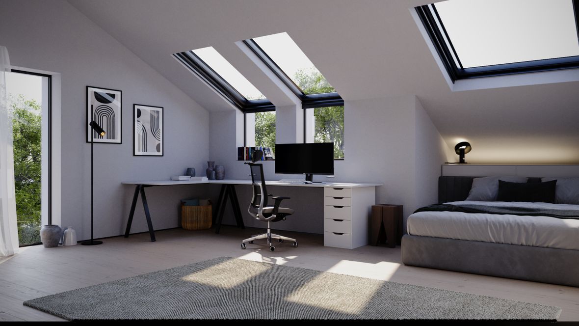 Domovní prostředí je navrženo tak, aby poskytovalo ten nejlepší zážitek z každodenního života. Klíčovým prvkem domu jsou skvěle umístěná střešní okna Velux a balkonové okna Velux, která přivádějí do prostorů bohaté množství slunečního světla. Tyto okna nejenže dodávají interiéru vzdušnost a svěžest, ale také přirozeně osvětlují každý kout domova, což vytváří atmosféru otevřenosti a pohodlí. Světlé barvy stěn a nábytku se skvěle doplňují s přírodním světlem, které do domu proudí. Tento harmonický barevný kontrast vytváří prostředí, které září klidem a pozitivní energií. Každý den si můžete užívat krásného vstávání s prvními paprsky slunce pronikajícími do prostorů a každý večer zde můžete relaxovat a odpočívat ve světle zachyceném z nebes. V domě se budete cítit jako doma již od první chvíle.