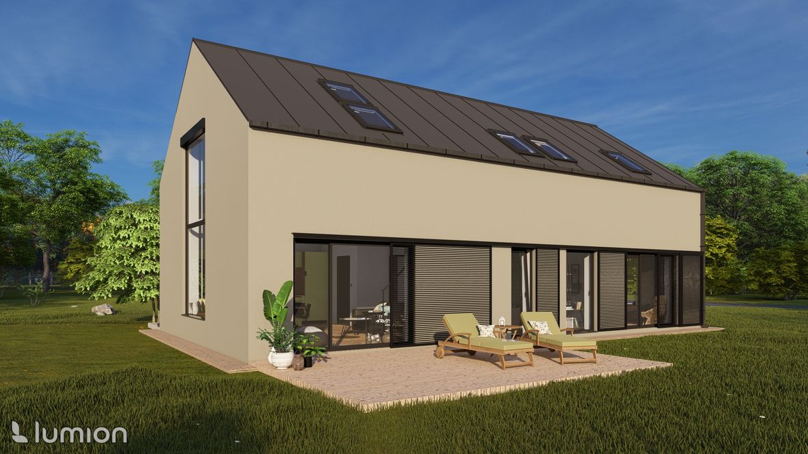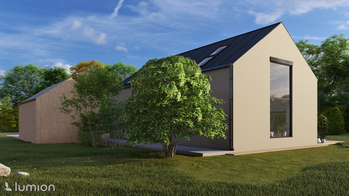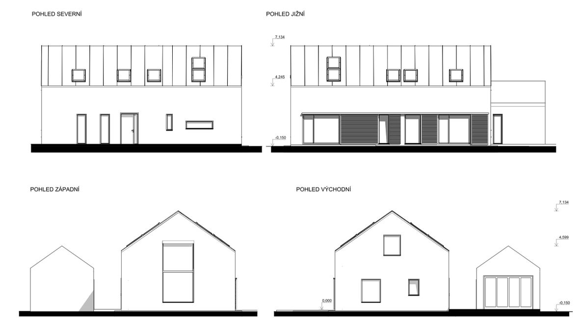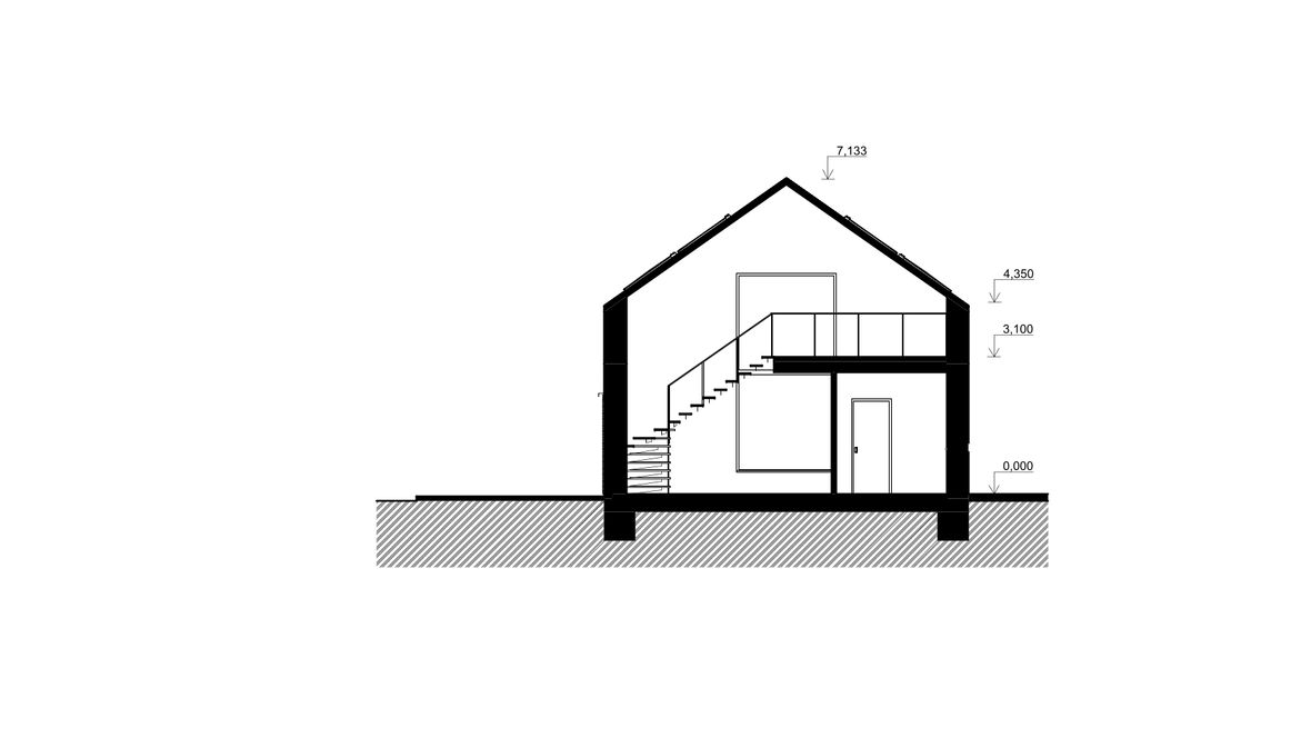 Hlavní myšlenka spočívá ve vytvoření jednoduchého a funkčního domu, který bude svým vzhledem nenápadný a zapadne kdekoliv. Jedná se o dvoupatrový rodinný dům pro čtyřčlennou rodinu. Hlavní částí domu je prostorný obývací pokoj s kuchyňským koutem, který je otevřený přes obě podlaží. Horní patro je vyhrazeno pro dětské pokoje, koupelnu a prostor pro hraní. Ložnice rodičů a soukromá koupelna je umístěna ve spodním patře společně s dalšími místnostmi. Parkování je zajištěno mimo objekt v samostatně stojící garáži. Pro přirozený přísun denního světla do interiéru podkroví byly použity střešní okna Velux GLL.
