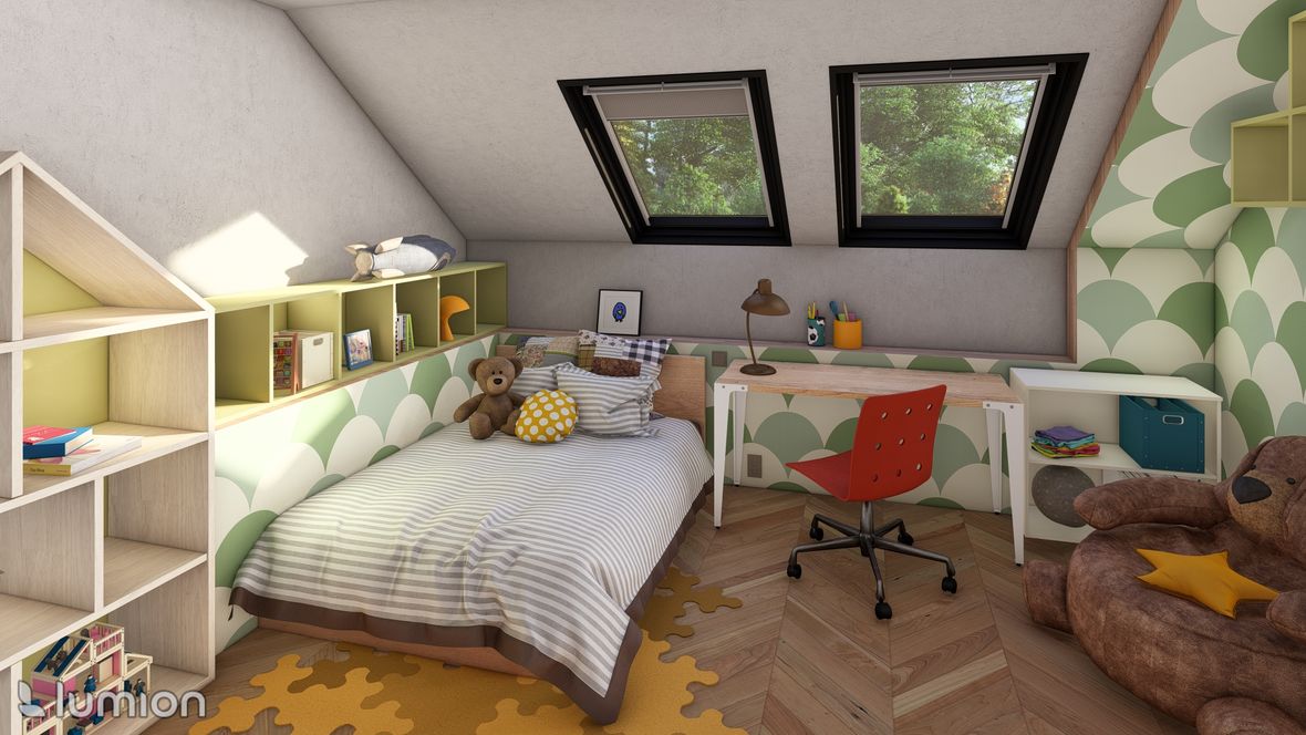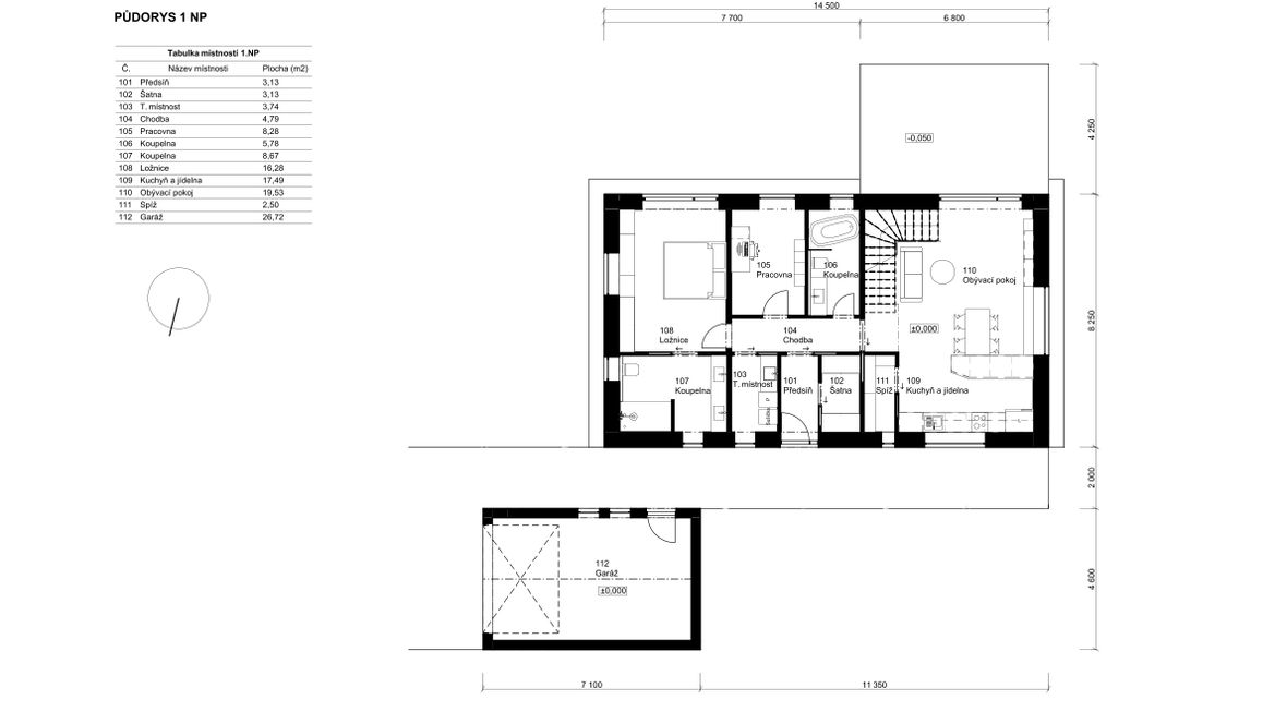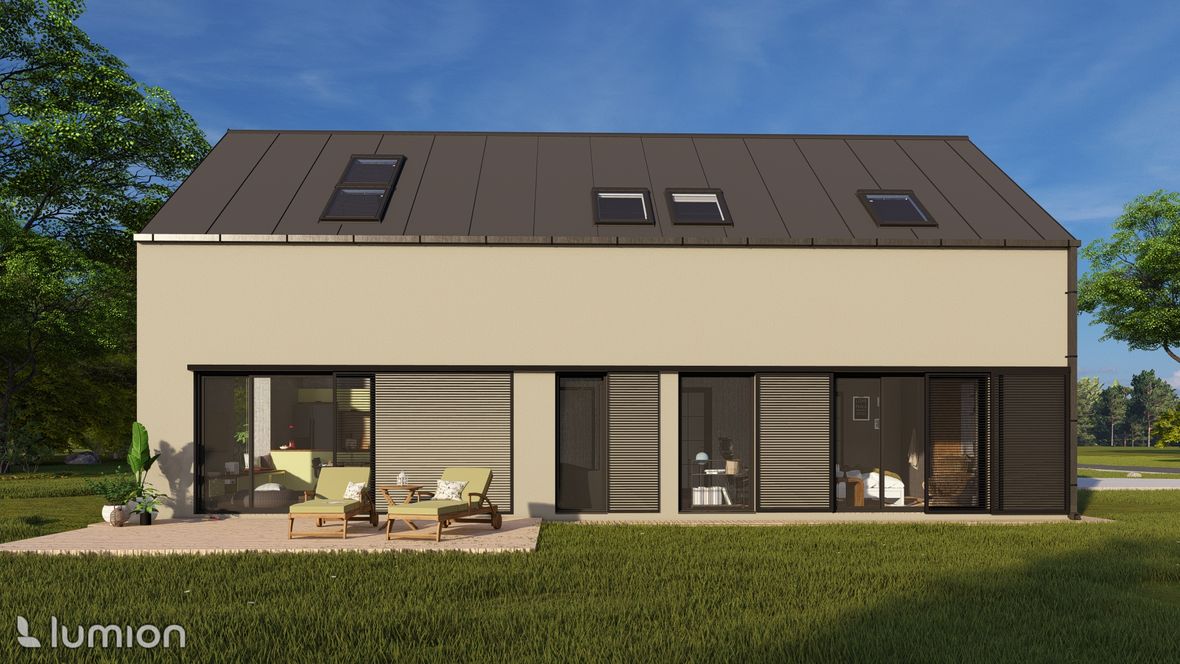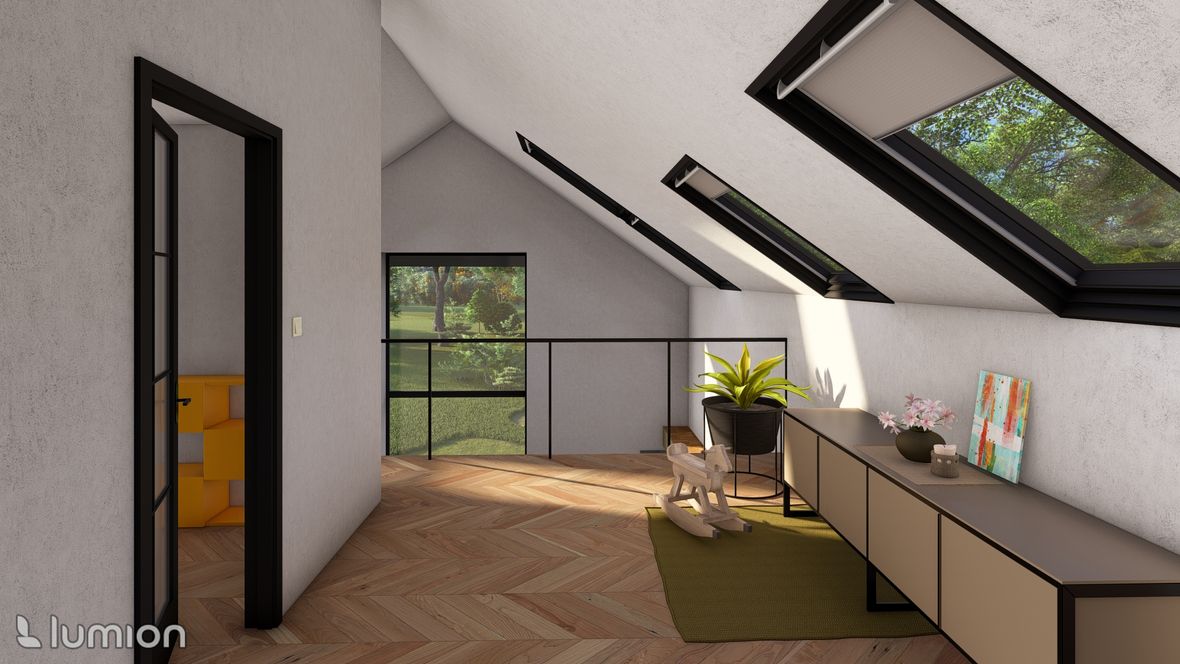 Hlavní myšlenka spočívá ve vytvoření jednoduchého a funkčního domu, který bude svým vzhledem nenápadný a zapadne kdekoliv. Jedná se o dvoupatrový rodinný dům pro čtyřčlennou rodinu. Hlavní částí domu je prostorný obývací pokoj s kuchyňským koutem, který je otevřený přes obě podlaží. Horní patro je vyhrazeno pro dětské pokoje, koupelnu a prostor pro hraní. Ložnice rodičů a soukromá koupelna je umístěna ve spodním patře společně s dalšími místnostmi. Parkování je zajištěno mimo objekt v samostatně stojící garáži. Pro přirozený přísun denního světla do interiéru podkroví byly použity střešní okna Velux GLL.
