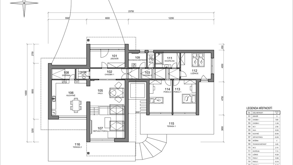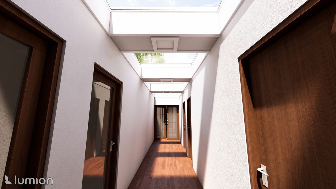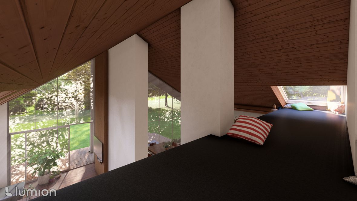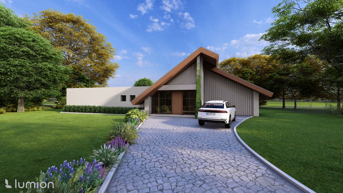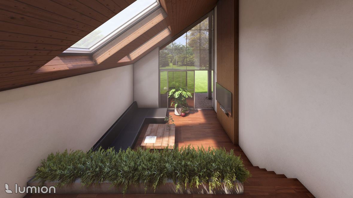 Projekt rodinného domu spojuje originální architekturu s útulným prostředím, nabízejícím pohodlí a relaxaci pro celou rodinu. Jeho design zahrnuje velká okna a devět světlíků Velux, které propouštějí do interiéru spoustu světla a propojují domov s okolní krajinou. Dům disponuje prostornými obývacími prostory, elegantní ložnicí, dvěma pokoji a kuchyní vytvářejícími ideální místo pro rodinný život. Dvě rozsáhlé terasy a vířivka přidávají venkovnímu prostoru další rozměr pro odpočinek a společenské aktivity. Velux CFU 0025Q 5x, Velux GPU 4x