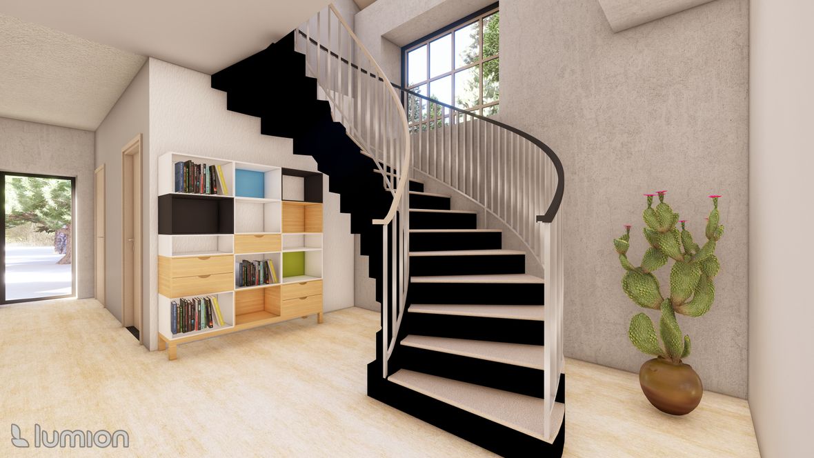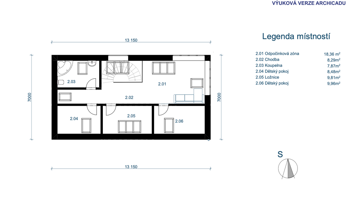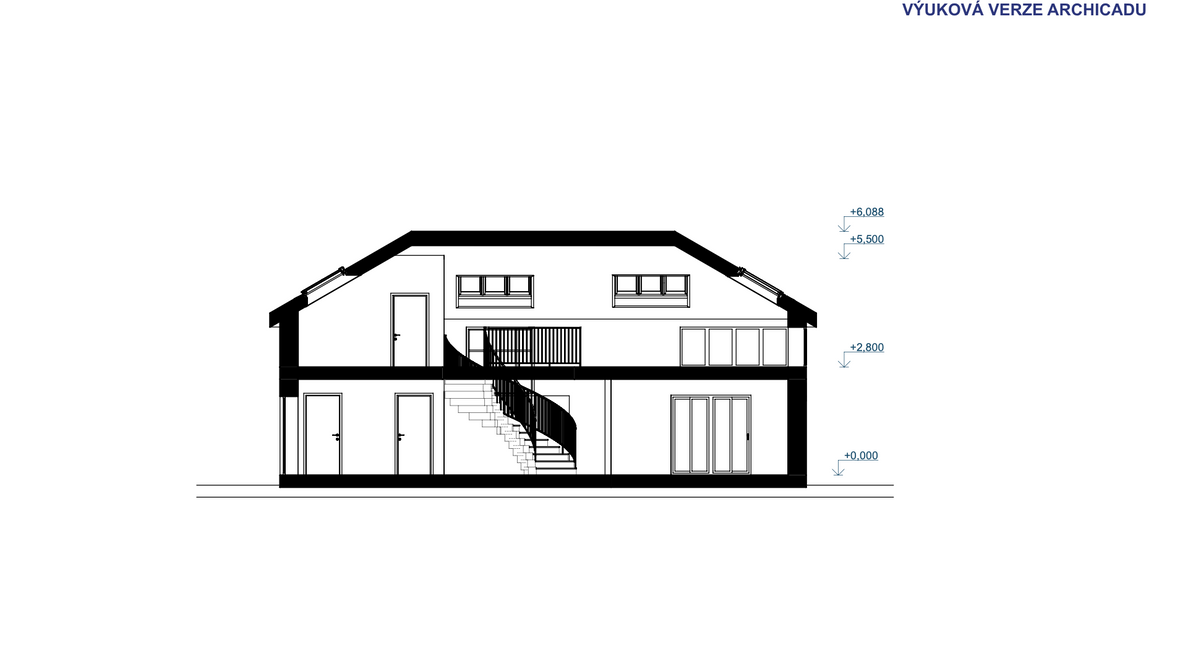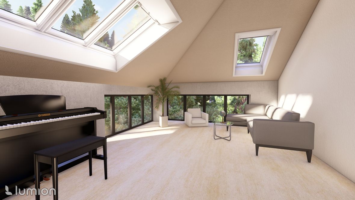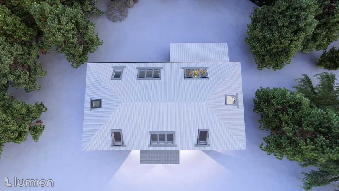 Mým cílem bylo vytvořit praktický a zároveň relaxační dvoupodlažní rodinný dům s velkým osvětlením. Umístění jsem zvolila do Skandinávie. Při vstupu do domu můžeme po pravé straně spatřit odkládací místnost na oblečení. Chodba je zde osvětlena fixním oknem. V 1NP se nachází kuchyně s obývacím pokojem s možností vstupu na venkovní terasu. Je tak ideálním místem na grilování a relaxaci ve vířivce. Stoupáním do 2NP po zahnutém schodišti uvidíme odpočinkovou zónu s výhledem na okolní krajinu. Tahle místnost slouží k setkání s přáteli nebo jen na lehký odpočinek. Můžeme zde najít pokoje a koupelnu. Výpis použitých střešních oken: GGLS 3v1 Standard Elektrické a solární GLL/GLU 61 Standard GLL/GLU 61