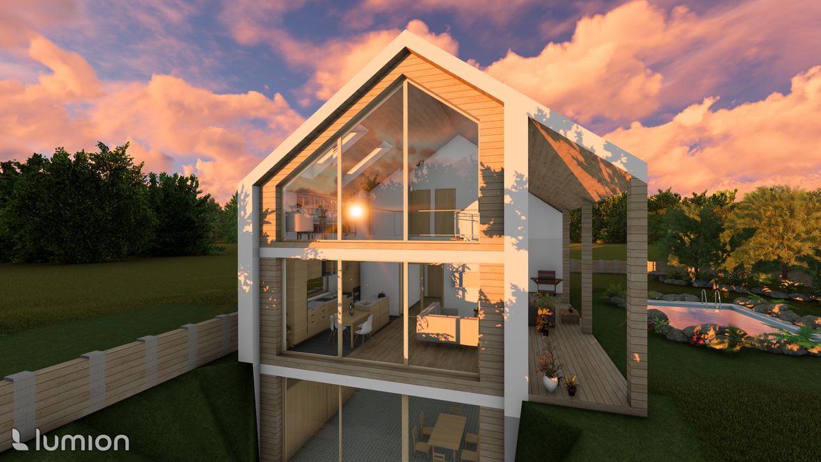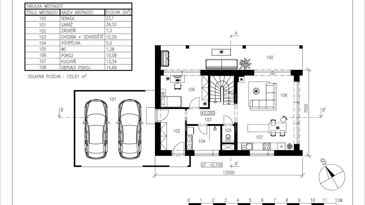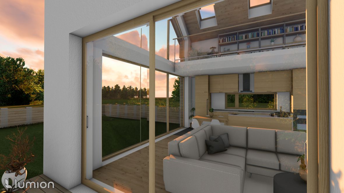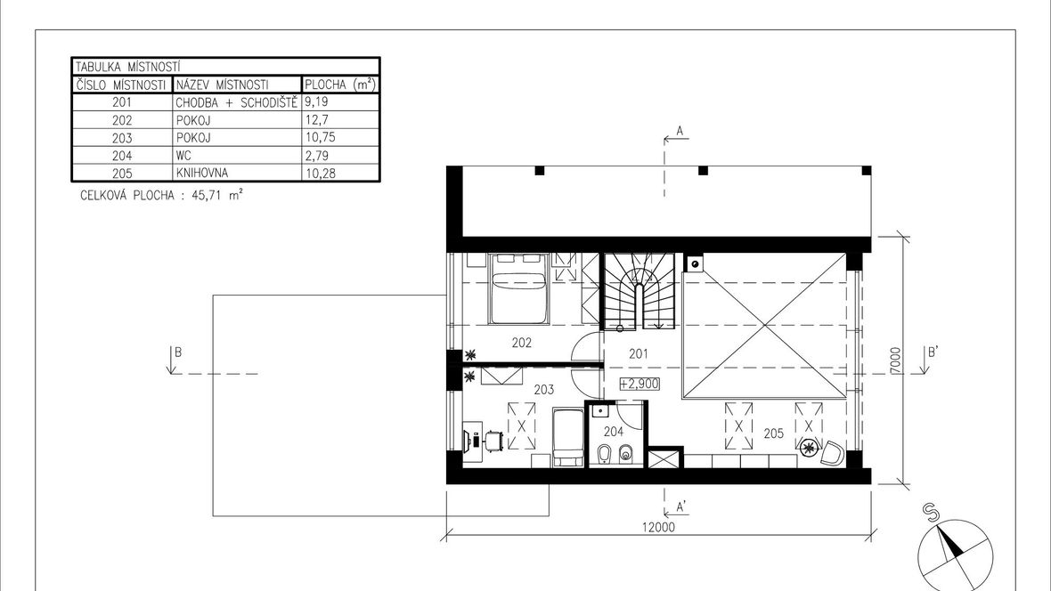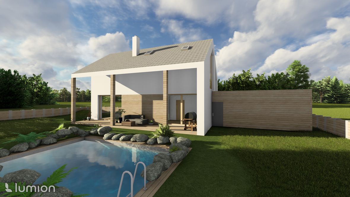KONCEPT Konceptem, či hlavní myšlenkou při navrhování tohoto rodinného domu bylo navrhnutí útulného a prosluněného místa, kde se jednotliví členi domácnosti budou cítit dobře. ARCHITEKTONICKÉ A DISPOZIČNÍ ŘEŠENÍ Dům se skládá ze dvou hmot a to z hlavní (obytný prostor) a vedlejší (garáž). V prvním nadzemním podlaží najdeme zádveří, do kterého z venku vedou dva vchody, ze zádveří se dostaneme dále do chodby, odkud vedou dveře do koupelny, samostatného WC, pokoje a obývacího pokoje spojeným s kuchyňským koutem, z chodby také vede schodiště do podkroví a suterénu. V podkroví najdeme ložnici, druhý pokoj, WC a knihovnu, zajímavostí podkroví je propojená část s přízemím. V suterénu najdeme sklad a keramickou dílnu.