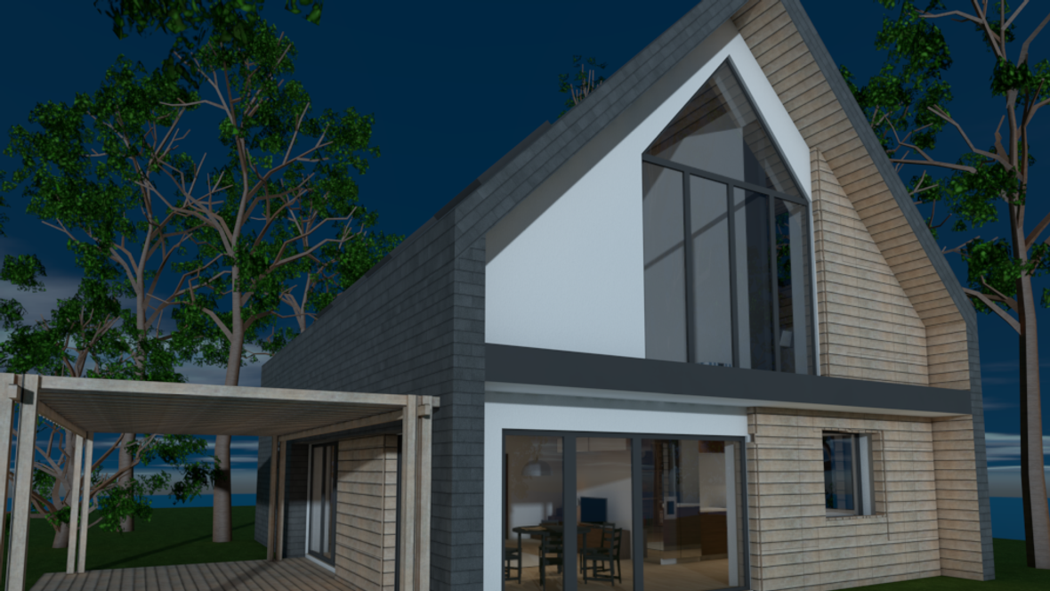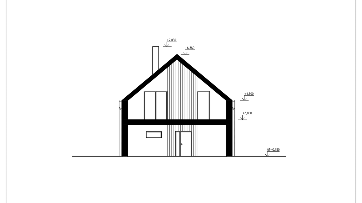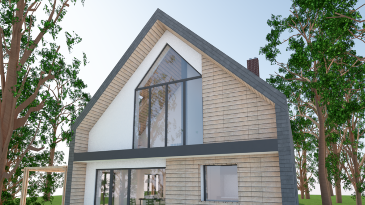 Cílem projektu bylo vytvořit rodinný domek v oblasti Valče pro až čtyřčlennou rodinu tak, aby měl nejen co největší zahradu, ale byl také dostatečně osvětlen. Proto je součástí podkroví několik obecných a střešních oken Velux GIL pro dostatek denního světla ze všech stran. Zahrada je kryta sadem z východní strany, společně se zahradou lemované francouzskými okny.