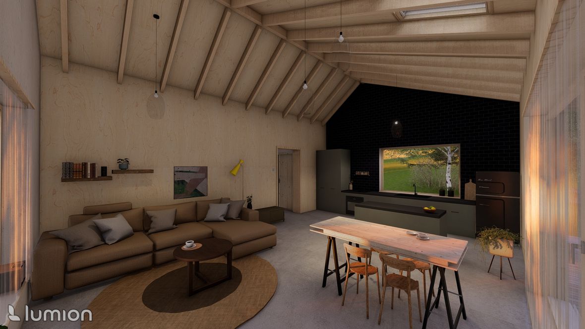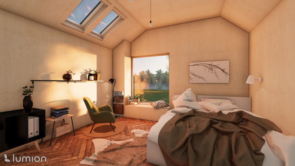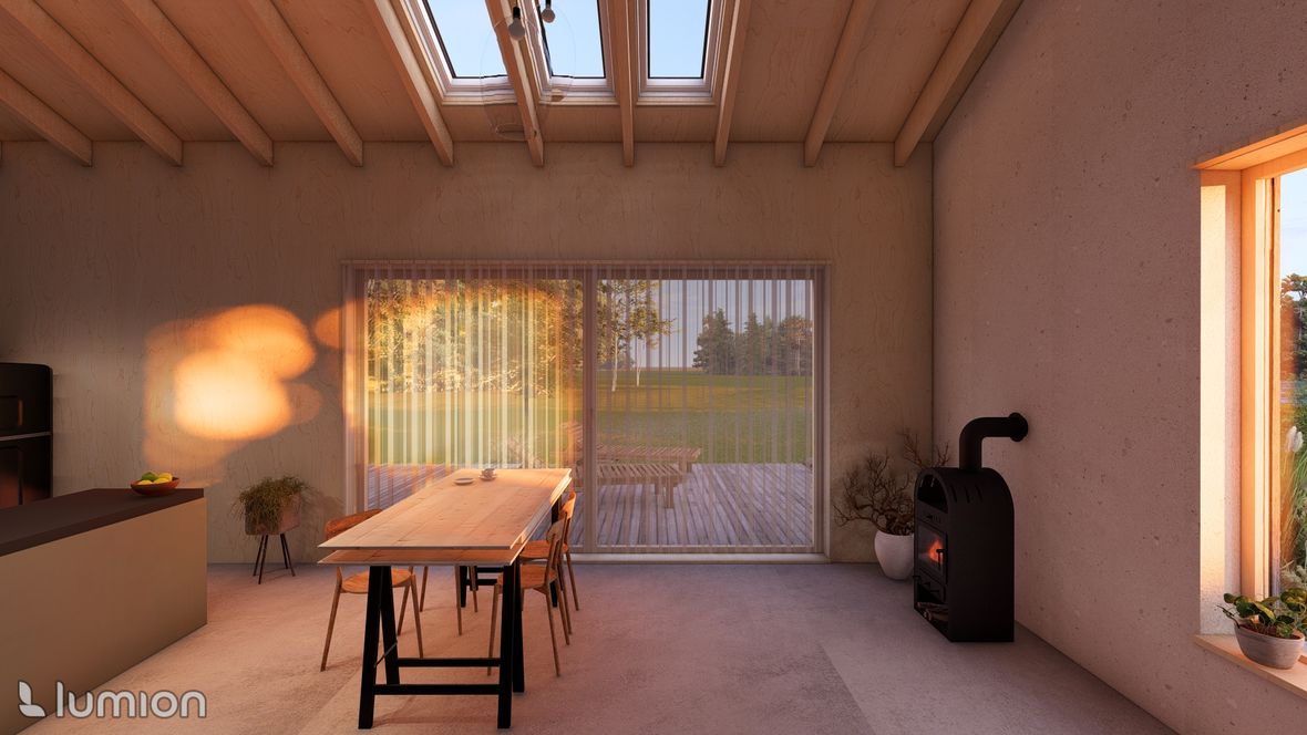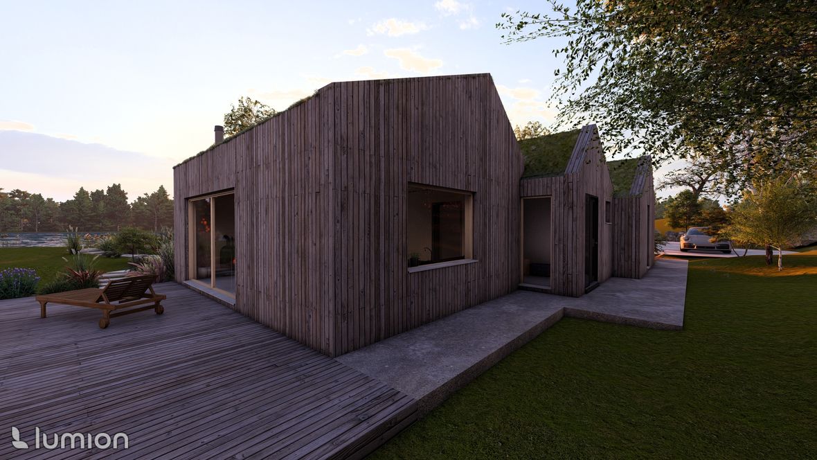 Rodinný dům Puu je navržen tak, aby co nejlépe splynul s okolní přírodou, ale člověk si dokázal užít jak jeho okolí, tak i krásu jednoduchého domečku. Nachází se na klidném místě obklopeném zelení a v blízkosti malého rybníku. Dům pokrývá dřevěná větraná fasáda v níž jsou schované i svody dešťové vody. Pro stálý kontakt s přírodou i uvnitř domu slouží posuvné francouzské okno v obývacím pokoji. Zbylé části domu včetně jídelny s kuchyní prosvětlují velká okna spolu se střešními okny Velux GGL. Teplý útulný nádech v místnostech dodává dřevěné obložení zdí. Prostory jsou vzdušné a prostorné plné denního světla.