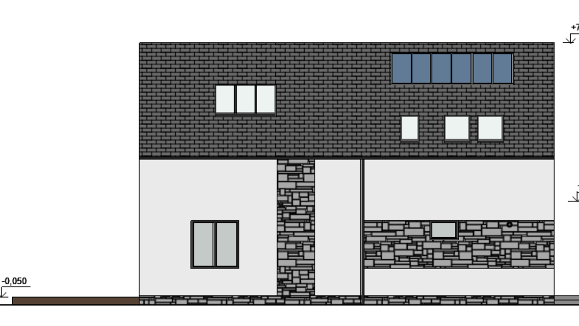 Cílem bylo vytvořit jednoduchý dům se zajímavým architektonickým řešením a přehlednou dispozicí. Dvoupodlažní rodinný dům se sedlovou střechou. Na obytný prostor navazuje terasa, která propojí objekt s venkovní zahradou. Zajímavostí je volný prostor u schodiště a malou galerií, kde si člověk odpočine. Střešní okna Velux GGL zajišťují dostatečné prosvětlení obytných prostorů a okna Velux GGLS 3v1 v hlavních místnostech nejen prosvětlí, ale také provětrají celý dům. Objekt je postaven ze systému Ytong.