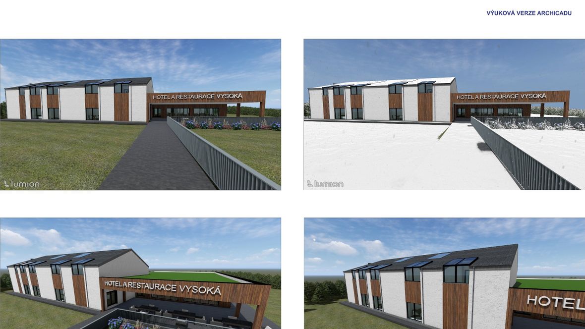 Projekt se zaměřuje na budovu hotelu s restaurací v areálu. Kapacita objektu se pohybuje okolo 40 lidí. Koncept fasády vypovídá, že se objekt nachází v přírodě.