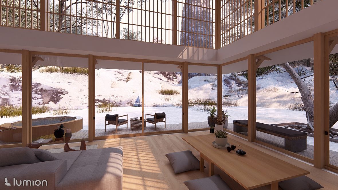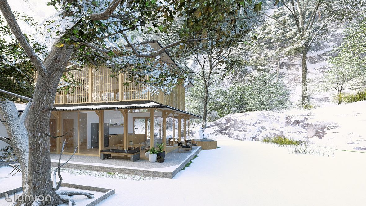 Chata Yuki je dřevostavba v duchu tradiční japonské architektury. Samotný název vychází z japonštiny, přesněji Yuki znamená v překladu sníh, tím jsem chtěla vyjádřit účel stavby, který spočívá v horské lokalitě s krásnými výhledy a dvoukilometrově vzdáleným lyžařským střediskem Niseko, proto byla chata spíše zamýšlená jako lyžařská, ale je využivatelná po celý rok.